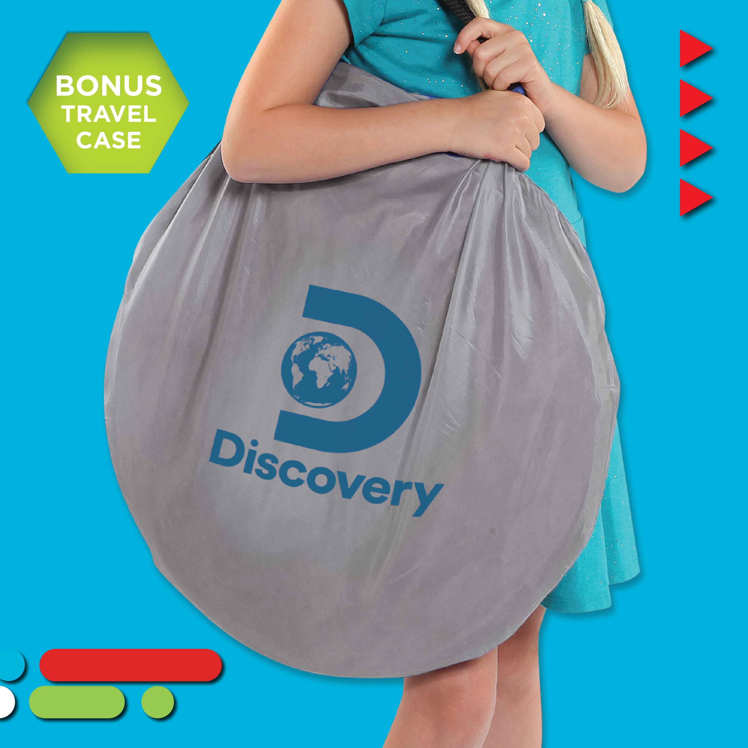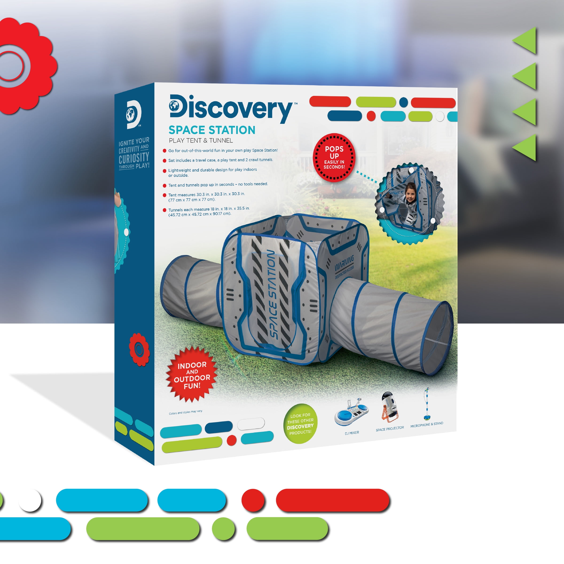 Got a young boy or girl with an active imagination? Let their wildest dreams come to life with Discovery™ 3 Piece Adventure Play Tent with Removable 6ft Tunnel Tubes and unleash the entertainment for your children in their very own fun hideaway! Children will love to hang out in the central tent and crawl inside the 3-foot-long tunnels with their friends while parents will enjoy the 3-piece set’s easy assembly! It comes with a central tent with open top while the removable tunnel tubes have a collapsible coil design that folds flat for easy storage.