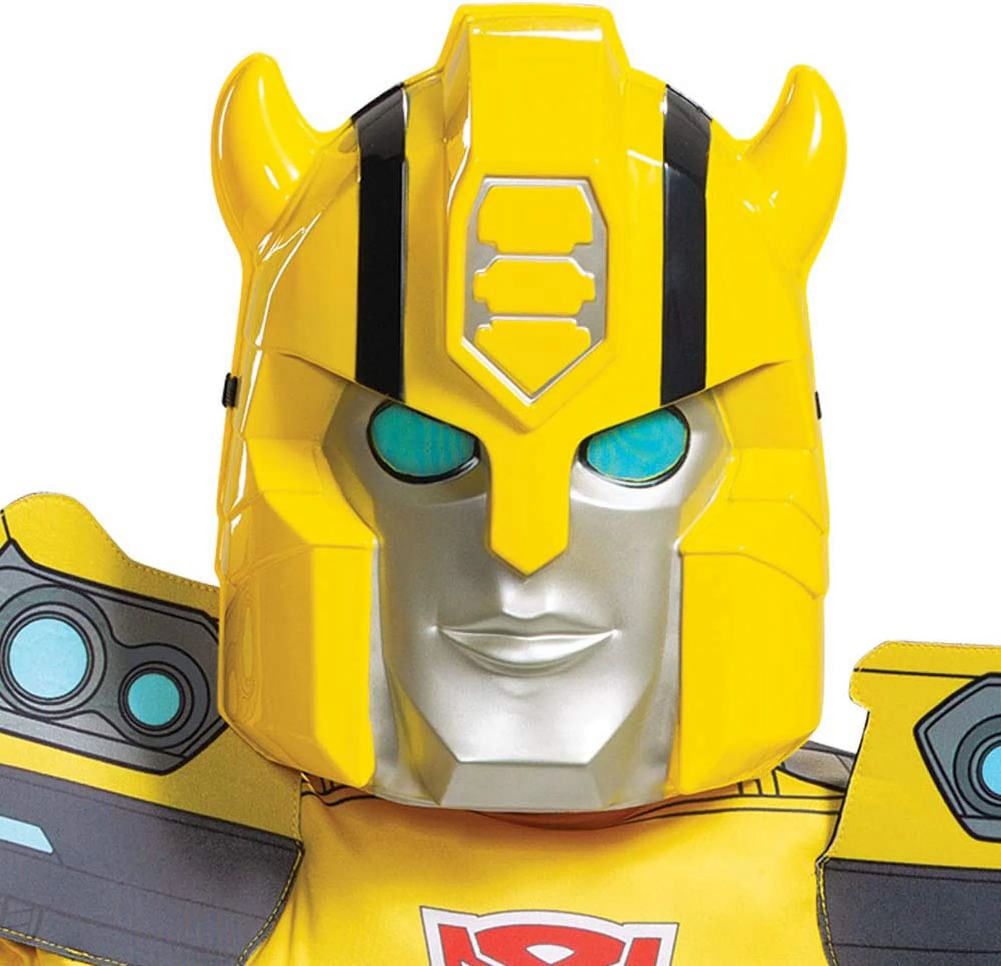 MUSCLE BUMBLEBEE TRANSFORMER COSTUME – Be the most loyal of the Autobots and impress your friends this Halloween with this Transformers muscle padded suit OFFICIAL BUMBLEBEE COSTUME FOR BOYS – Has padded arms and chest to give this child muscle outfit an authentic Bumblebee look LEAD THE AUTOBOTS TO VICTORY – Power up and help Optimus Prime and the rest to defeat Megatron and the Decepticons once and for all! CARTOON INSPIRED ARTWORK – Whether as a Halloween costume or dress-up among friends, this suit and mask is sure to turn heads QUALITY COSTUMES FOR HAPPY KIDS – To keep this kids Transformers Bumblebee costume well maintained, it is recommended that it be spot cleaned. Includes muscle torso and arms, attached shoulder pieces and character mask.