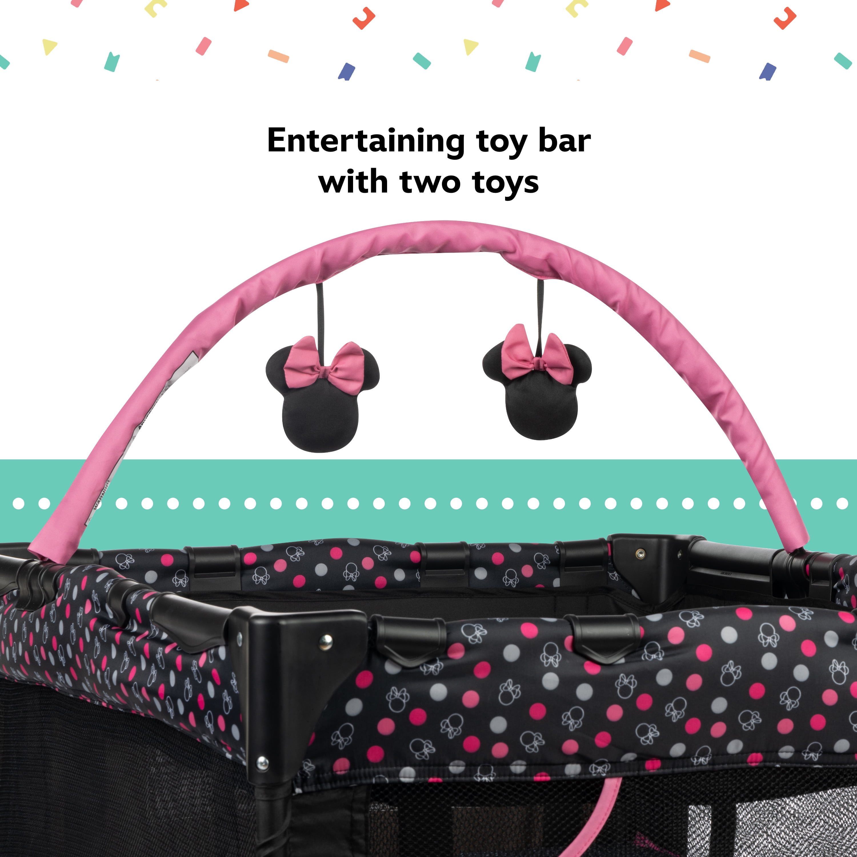 Disney Baby 3D Ultra Baby Play Yard with Bassinet and Toy Bar, Modern Minnie