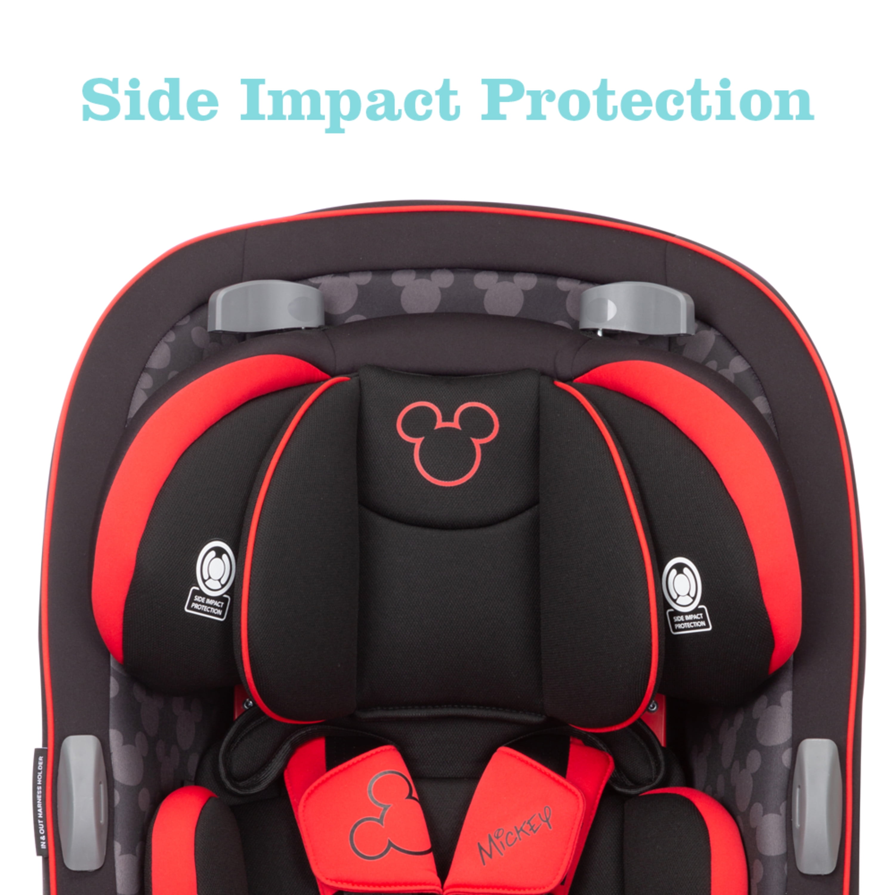Get the car seat that’s built to grow! From your first ride together coming home from the hospital to soccer day car pools, the Disney Baby 3-in-1 Grow and Go Convertible Car Seat will give your child a secure and more comfortable ride. Featuring extended use at each stage, this convertible car seat is designed to last through all your firsts with your child. Fits children through 3 stages: rear-facing (5–40 lbs., 19″–40″), forward-facing (30–65 lbs., 34.4″–49″), and belt-positioning booster (40–100 lbs., 43.4″–52″). (Actual fit may vary. Not all children will comfortably fit in the seat for the full weight and height ranges listed.) For newborns to growing toddlers, the Disney Baby Grow and Go™ Convertible Car Seat can be used in the rear-facing position from 5-40 lbs. It includes 2 comfortable grow-with-baby pillows to give your new travel companion a snug fit, and they easily remove as your baby outgrows them. In forward-facing mode, the Disney Baby Grow and Go™ Car Seat keeps your child protected in a harness up to 65 lbs. In both rear-facing and forward-facing mode, harness holders keep the harness in an open position. This makes it easier for you to get your child in and out of the car seat. No more fishing for the harness and clips from behind your child – they’re right there when you need them. The QuickFit™ Harness offers additional convenience in both of these stages by letting you adjust the height of both the headrest and harness in 1 easy step, making it simple to give your growing child the best fit. When your child is ready to use the vehicle seat belts, remove the harness to use the Grow and Go 3-in-1 Convertible Car Seat in belt-positioning booster mode: up to 100 lbs. The headrest still adjusts easily, letting you get the best fit for your child. As your tiny baby grows into a big kid, messes are bound to happen, but the Grow and Go car seat pad makes cleanup easy. Machine-washable and dryer-safe, it is also designed to come off the seat easily, with no need to remove the harness. The Safety 1st Disney Baby Grow and Go™ Convertible Car Seat is designed to provide more comfort to parents, too. Disney Baby offers today’s parents like you everything you need to bond with baby at every stage. The Disney Baby line includes essentials for Apparel, Nursery, On the Go, Bath time, Feeding, Discovery and Celebration. We work with the best brands in the infant industry to bring you products to make your time with baby magical.