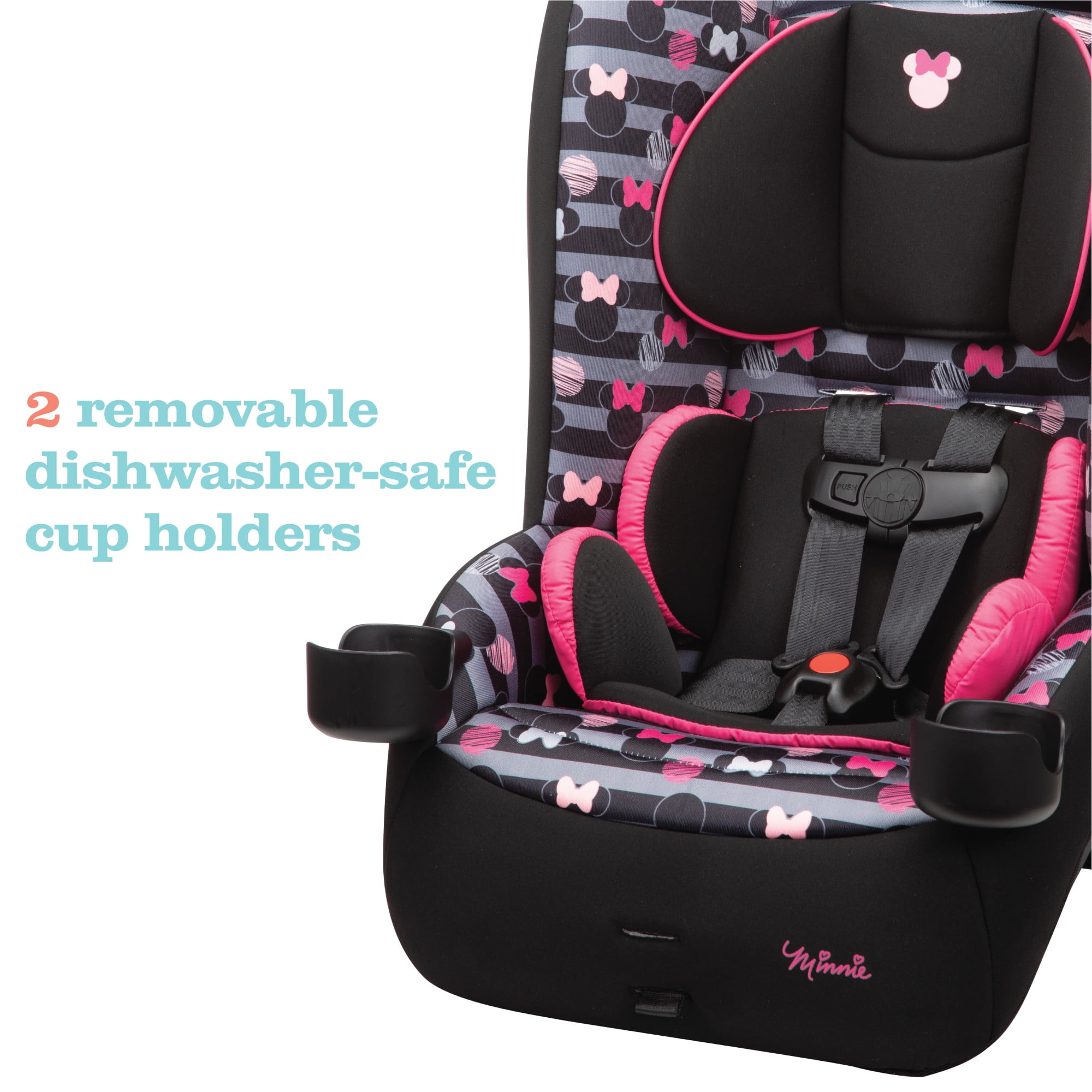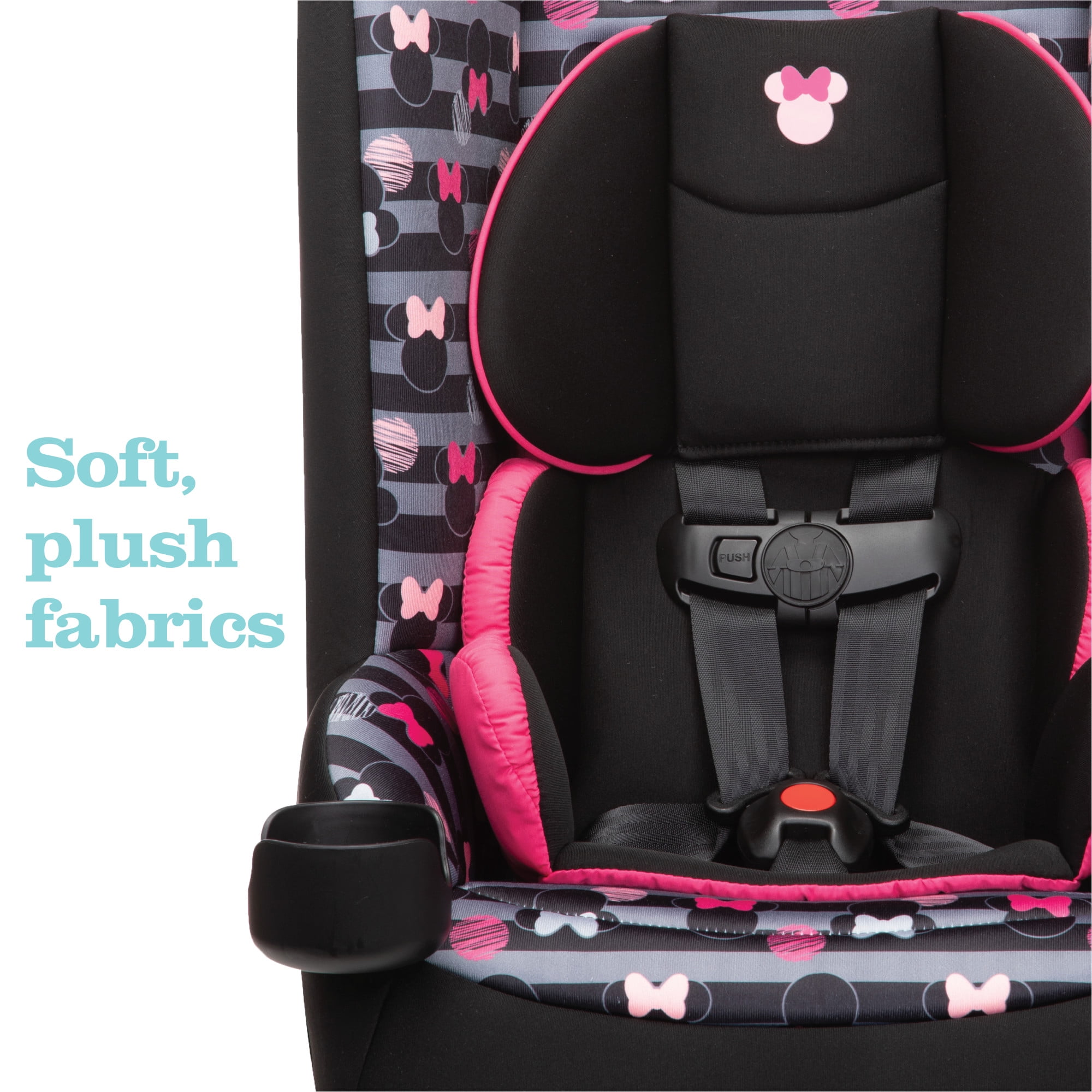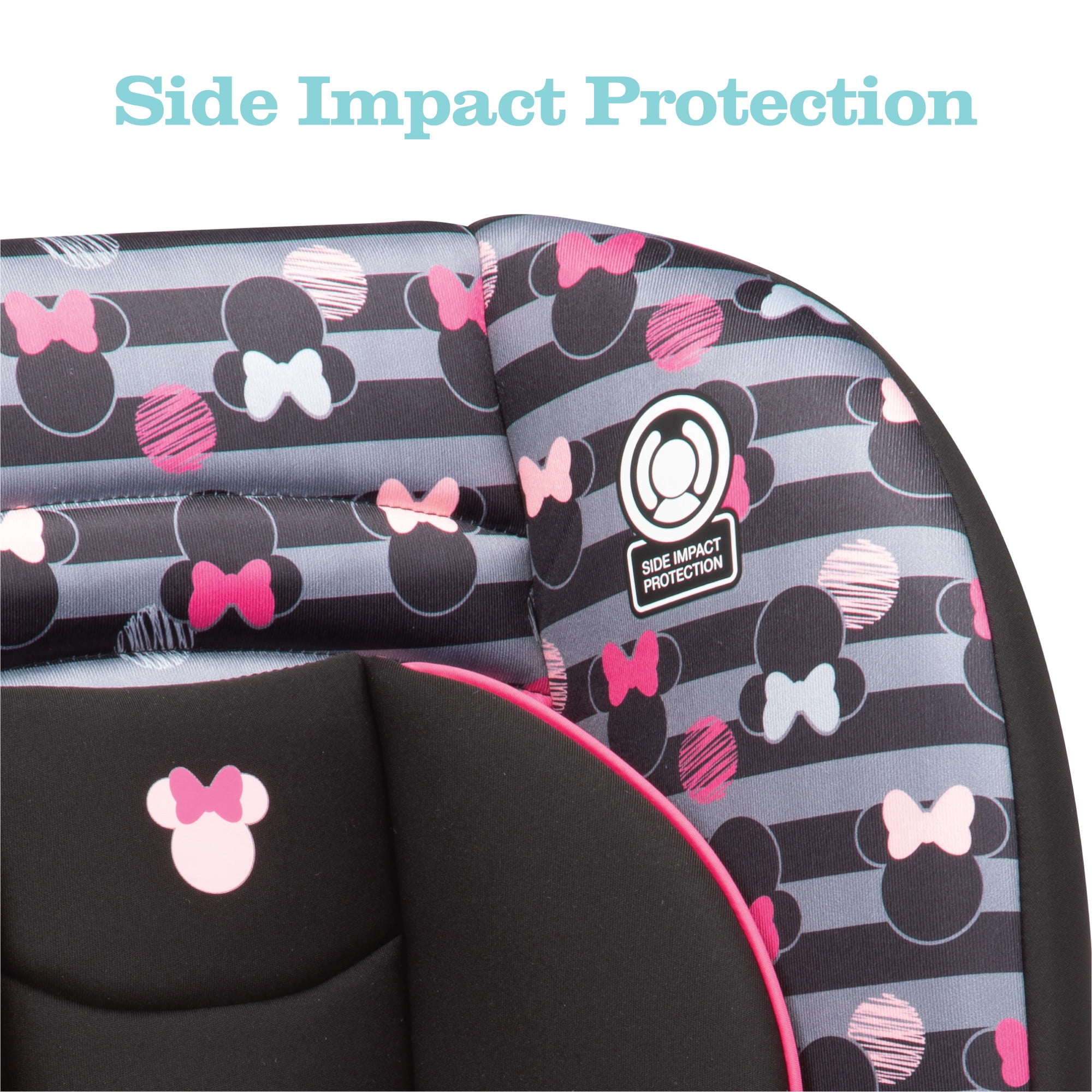 Who has time to constantly clean up messes? Certainly not you. The fabric is both machine washable and dryer safe, making this seat super easy to clean when messes happen. Stressed about traveling with kids? The Disney Baby Jive Convertible car seat is certified for use on an aircraft with the internal harness. Its compact design also makes it easier to manage through airport security checks.