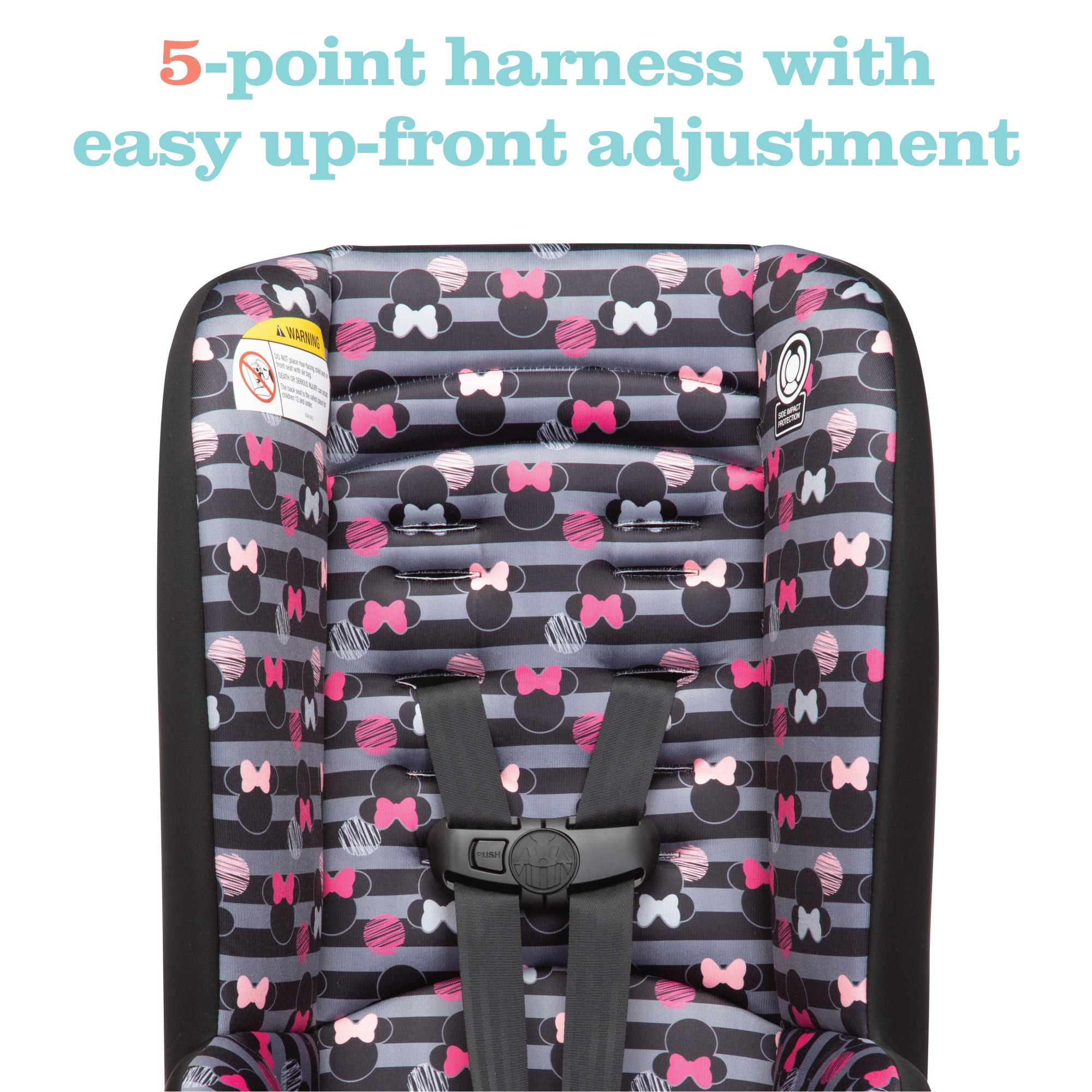 The Disney Baby Jive Convertible car seat also puts your safety concerns at ease with the built-in Side Impact Protection and 5-point harness. The harness features 5 heights and 3 buckle locations to perfectly fit your growing child.