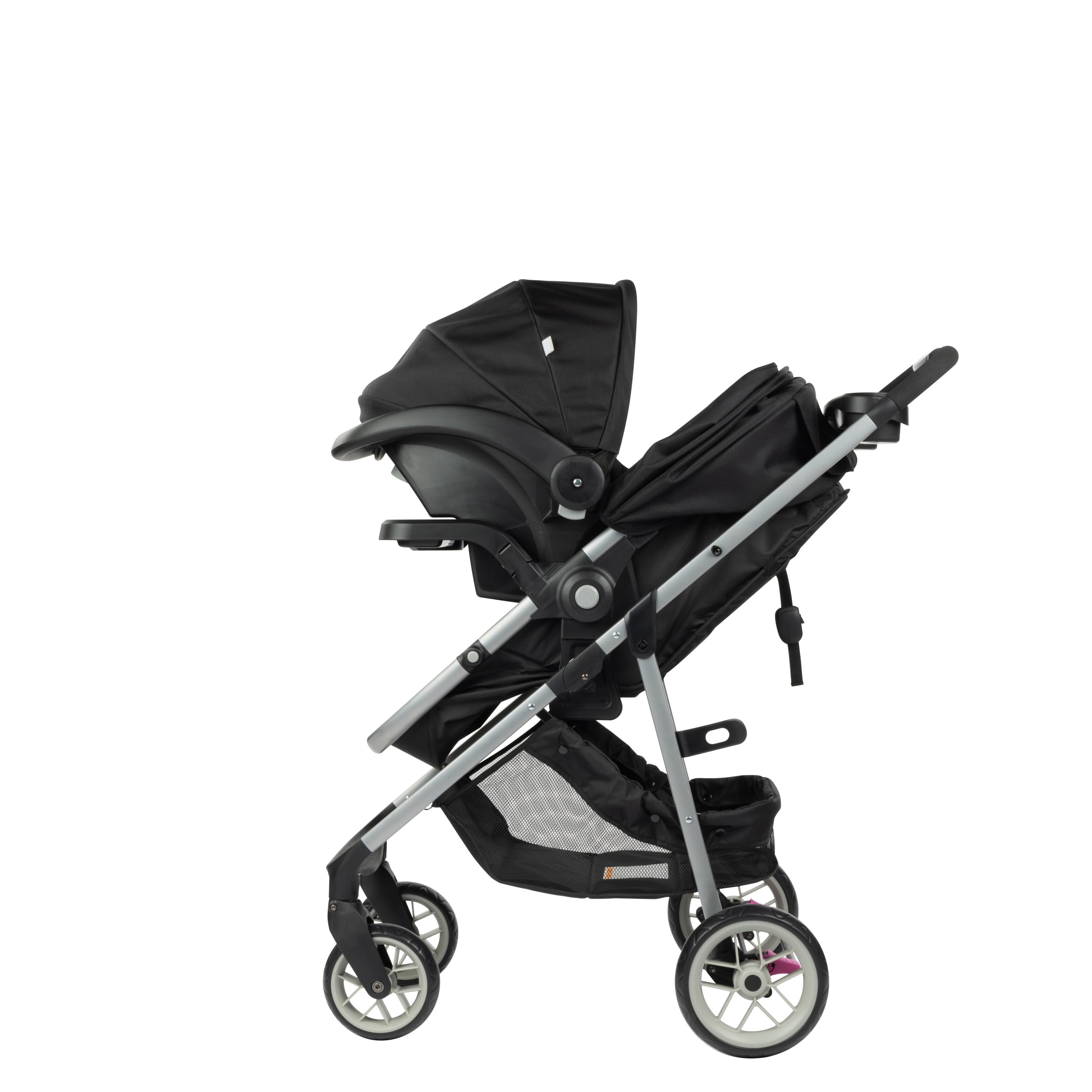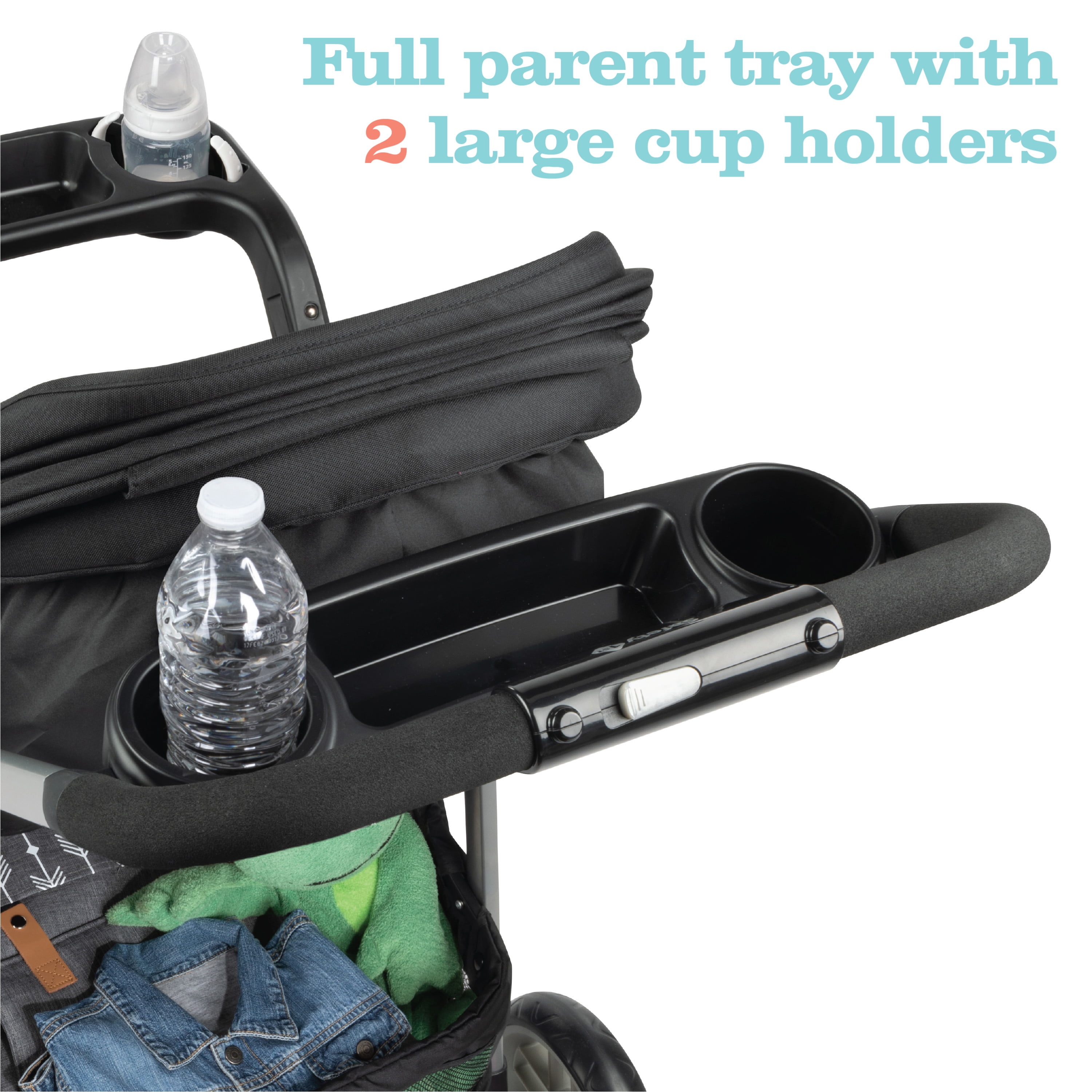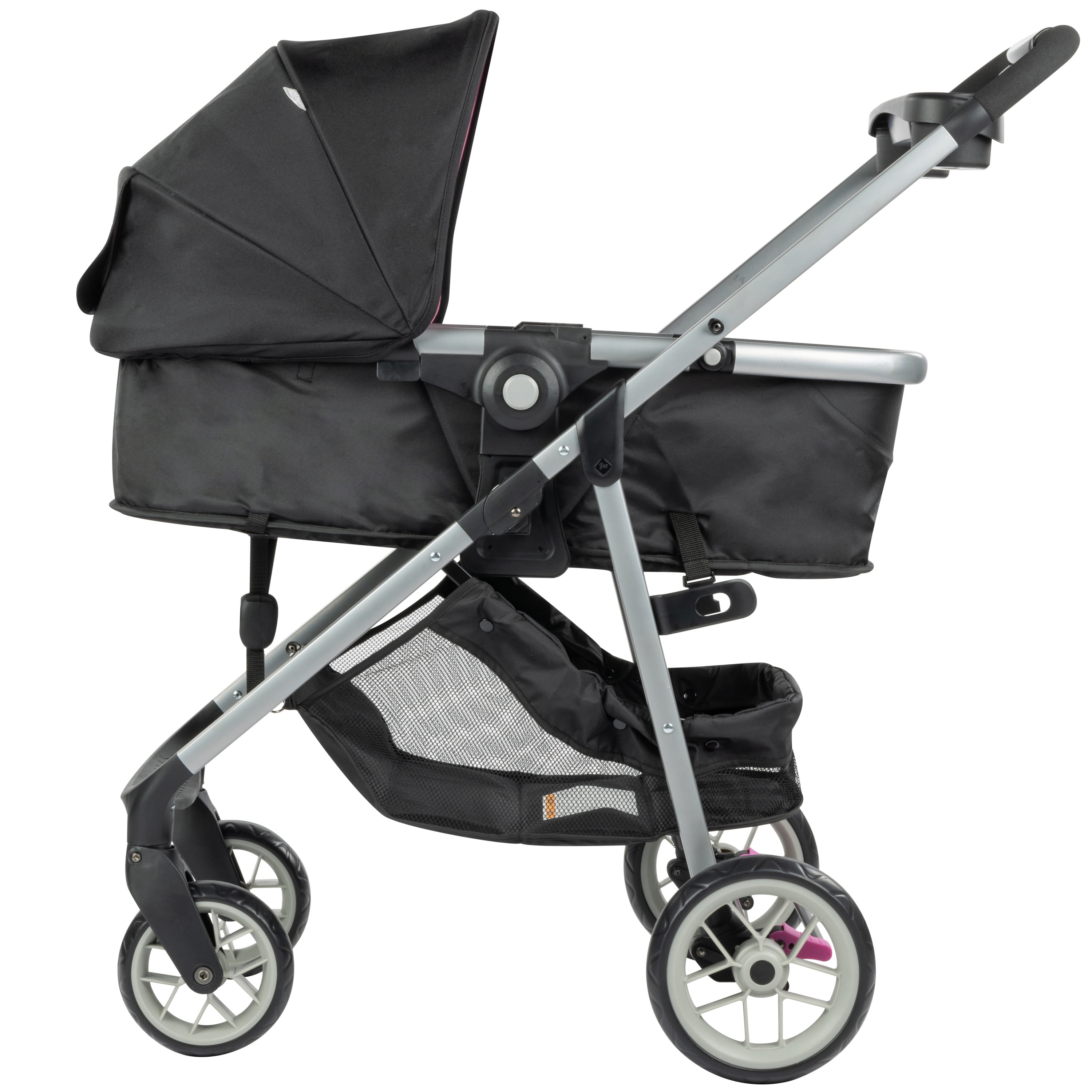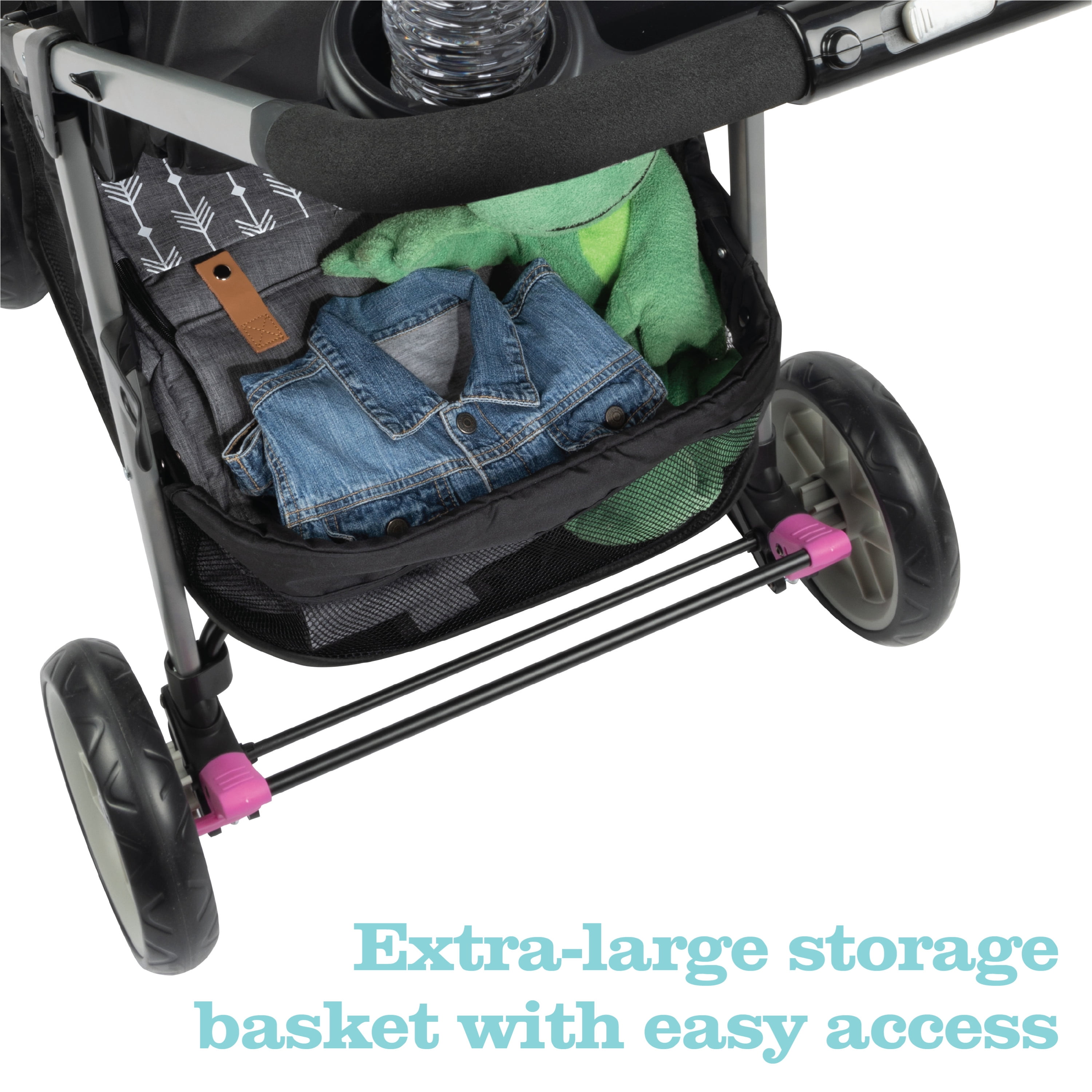Designed for Disney fans––baby to big kid 8 easy strolling options: baby carriage, infant car seat carrier, travel system, and toddler stroller. Each mode can be forward- or rear-facing. No adapters needed: stroller seat and car seat click directly onto stroller frame Extra-large, 3-panel stroller canopy with a peek-a-boo window Extra-large storage basket with easy access Car seat weight capacity from 4–30 lbs. Car Seat is lightweight and easy-to-carry car seat at under 8 lbs. Smooth maneuvering with all-wheel suspension and large, sturdy tires Stroller folds easily with 1 hand, and stands on its own Full parent tray includes 2 large cup holders Full-sized child tray with cup holder that fits most sizes of sippy cup Step-up bar, and swing-away tray allow independent toddlers to climb into stroller by themselves Soft, comfy Disney-inspired brushed fabrics and padding on the seat Stroller seat is designed to recline for comfort in both directions Meets Disney Park size requirements Actual fit may vary. Not all children will comfortably fit in the seat for the full weight and height ranges listed.