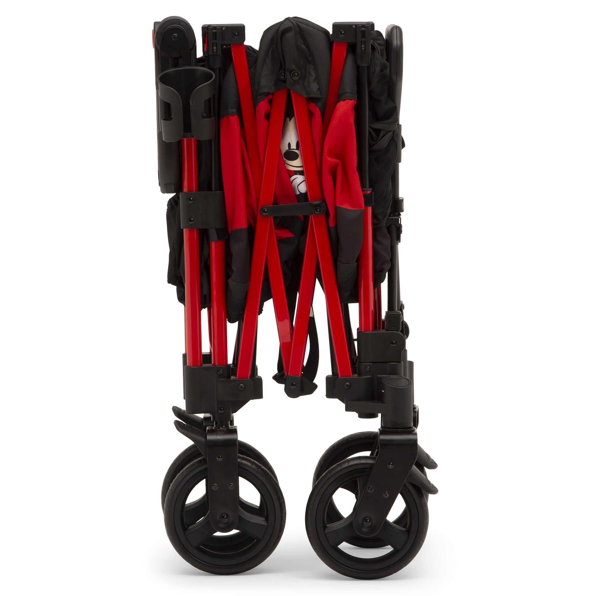 No matter where you’re going, it will be The Happiest Place on Earth with this Disney Mickey Mouse Stroller Wagon by Delta Children. Specifically designed to grow and flow with your family, this convenient stroller wagon is packed with more features than a standard double stroller, making it perfect for indoor or outdoor activities. A comfy option for siblings or friends, this stroller wagon features two cushioned seats with 3-point safety harnesses for security while the removable center console with two cup holders and storage pocket allows kids to share snacks, toys and drinks. An additional cup holder for parents and side pockets ensure you can bring everything you need along for the adventure. The removable, UV blocking canopy offers protection from the sun or rain. Easy to drive, it features swivel front wheels that allow you to effortlessly turn and pivot, as well as push and pull handles with adjustable heights. The wagon’s compact fold makes it easy to store or transport. And when your children outgrow the need for a wagon, use it to haul your own gear at the farmers market, while gardening or the grocery store. Holds up to 110 lbs. (55 lbs. per seat). Weighs 36.3 lbs. Recommended for ages 9 months up to 55 lbs. About Mickey Mouse: Mickey, the world’s most famous mouse, has been delighting and inspiring Disney fans for generations! Always looking for an adventure and up for trying new things, his optimistic nature and friendly disposition are his greatest qualities.