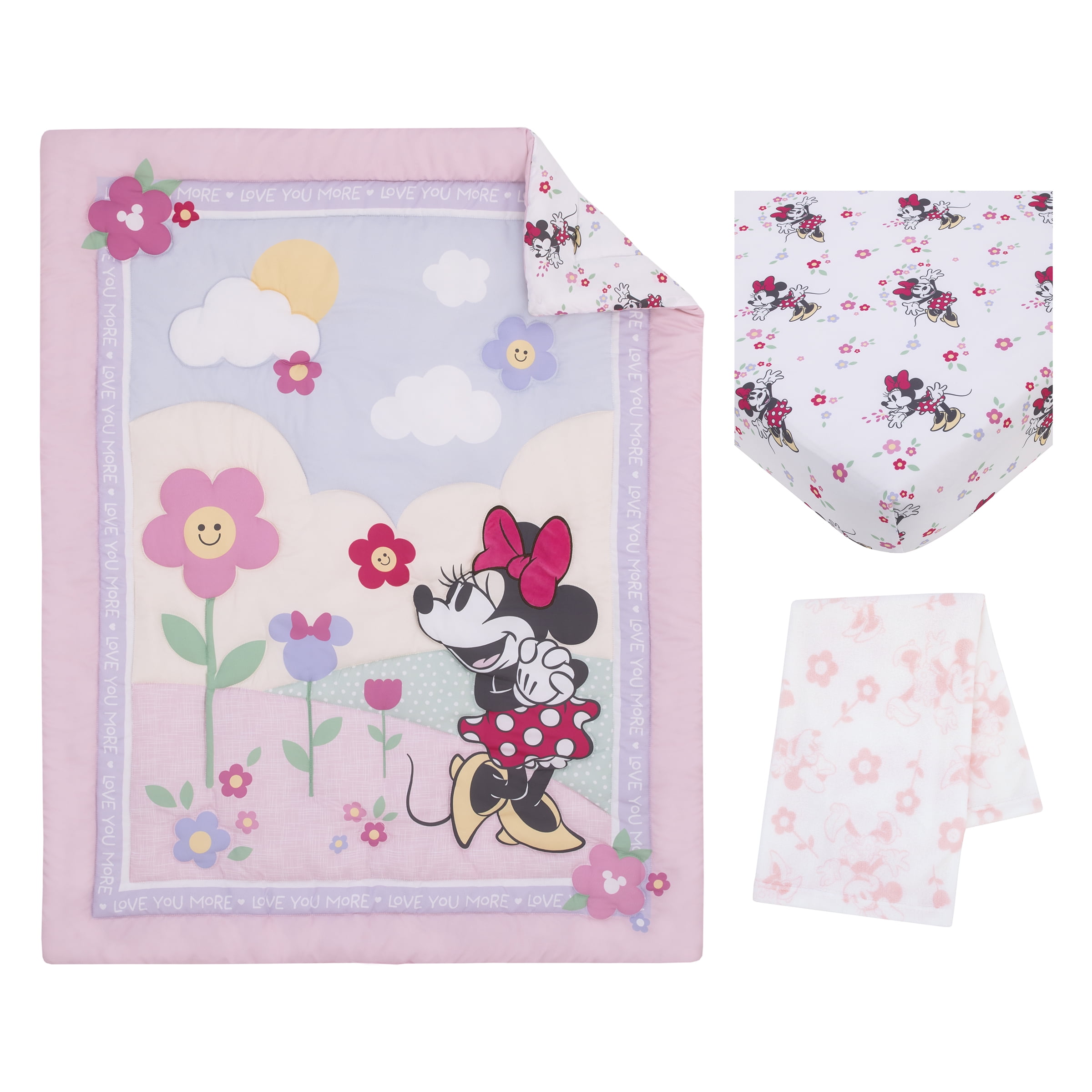 Disney Minnie Mouse 3-Piece Crib Bedding Set, Pink, Comforter, Fitted Sheet, Blanket, Infant Girl