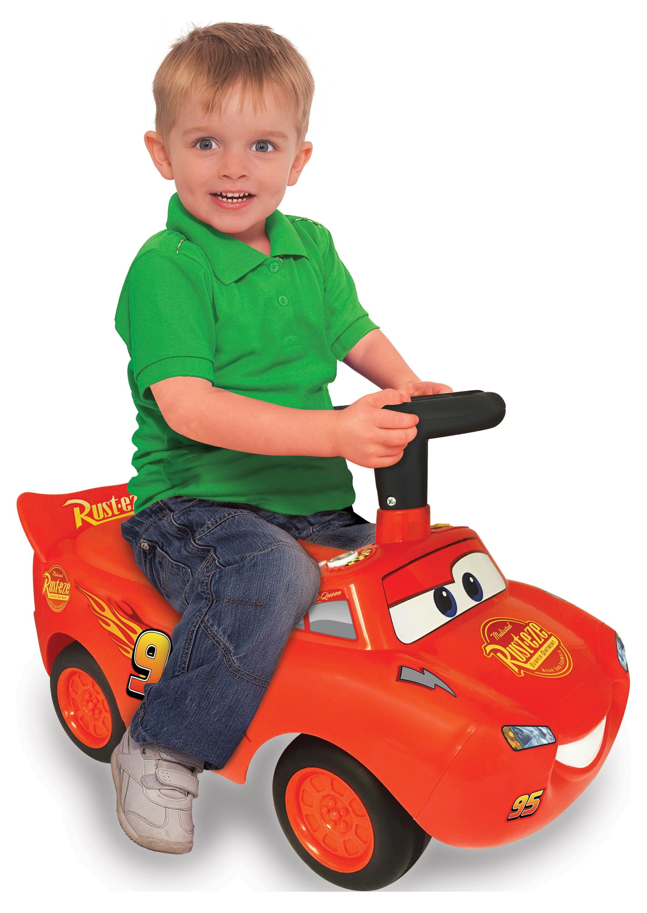 Kiddieland Disney PIXAR Cars 3 Lightning McQueen Light & Sound Racer Activity Ride-On Take McQueen out for a spin as he revs up and plays exciting music! Press ignition key for realistic engine sound. Hear rewarding fun sounds and flashing lights. Steer wheel and press to hear accelerator & brakes for hours of driving fun. Safe and durable construction for hours of riding fun. Skill level: Beginner.