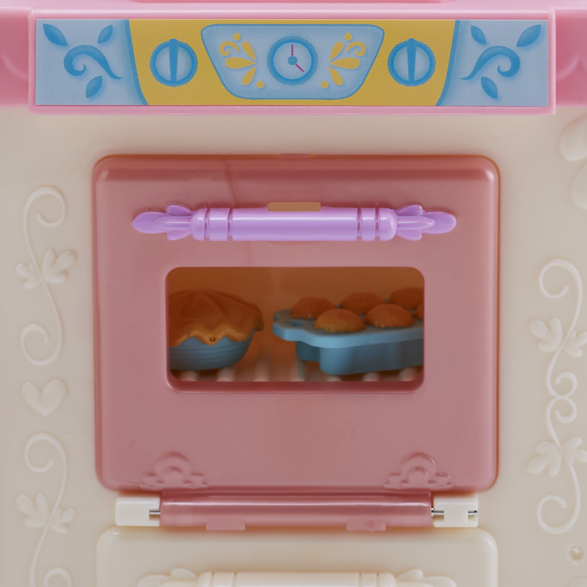 Kids can imagine that Disney Princess Belle is cooking up a delicious pretend feast for all of her friends with Belle’s Royal Kitchen playset. This delightful set includes a Belle doll with a removable skirt that features a fun, baking-inspired pattern, plus a pair of shoes, and a tiara. The toy kitchen features a refrigerator and oven and includes pegs to hold the included pot and utensils accessories, plus a chandelier that hangs from a hook. There’s also a cake accessory and cake stand, a pie and a plate with a slice of pie accessories, a tin full of pretend muffins, a mixing bowl, cup, soap dispenser and an apple accessory. And because it’s more fun to cook with friends, the set also includes figures of Mrs. Potts and her son Chip, from the movie Disney’s Beauty and the Beast. This playset is a great addition to a Disney Princess doll collection and makes a great gift for girls 3 years and up.