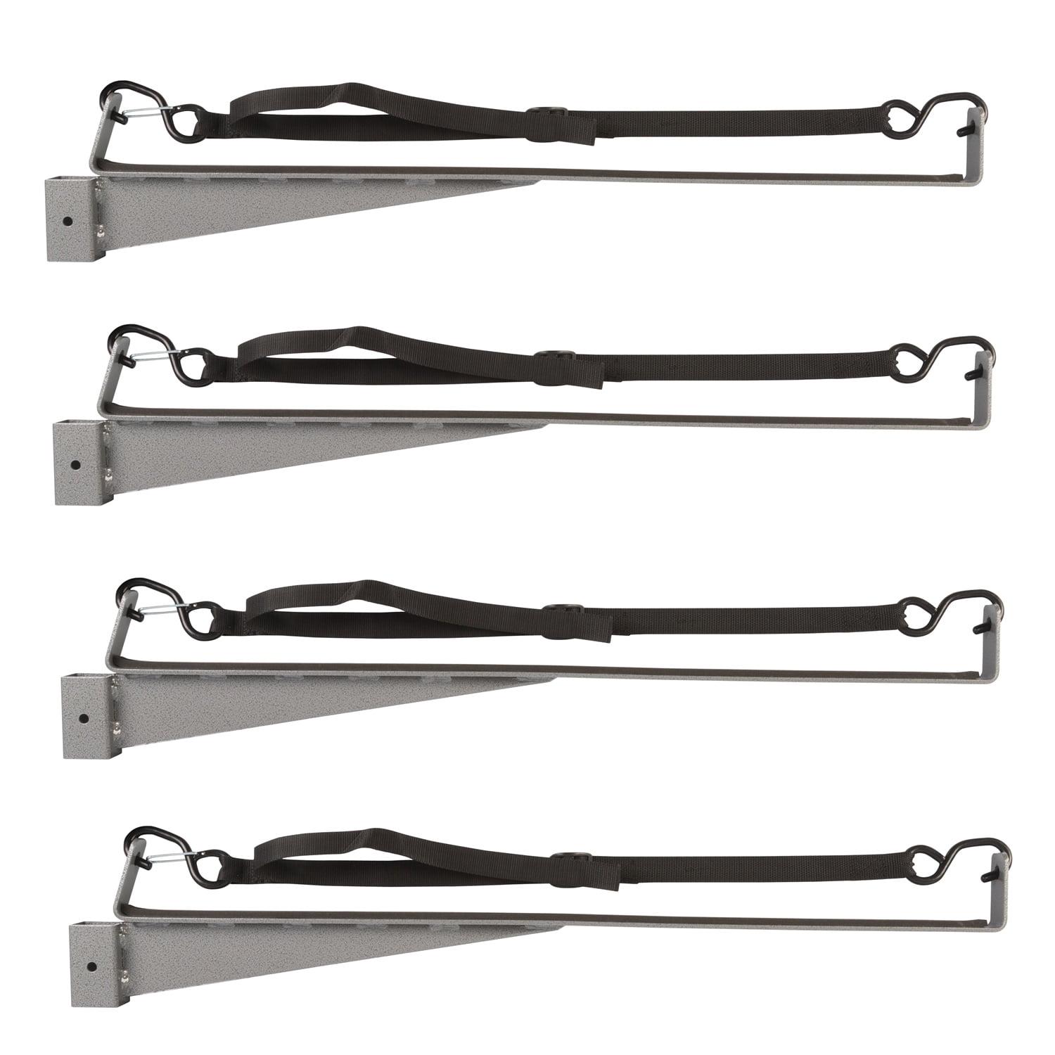 32″ wide support arms fits 2 kayaks, canoes, pdl, surf boards, etc. Adjustable locking straps, with locking hook at one end. Supports many times the weight of an average kayak.