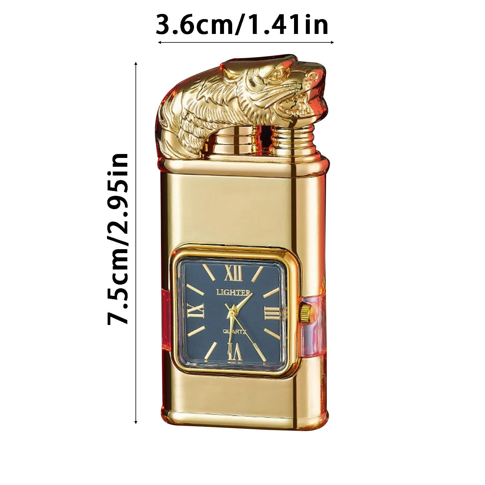 Double Fire Embossed Watch Windproof Torch Metal Inflatable Gift Material: metal Color: as the picture shows, (Due to the difference between different monitors, the picture may have slight color difference. please make sure you do not mind before ordering, Thank you!) Package weight: 110g Package size: 9.5×7.5×2.5cm,(Please allow 1-3mm error due to manual measurement. please make sure you do not mind before ordering.) ♛【Refillable 】: You Just Fill The With , Shake The Up And Down, Wait For A Minute, Let The Get Hot, And The Is Ready. (Note: Due To Air Mail Regulations, The Is Shipped Without , You Need To Fill Up The Before Use) ♛【 Shopping Experience】: For All Customers Who Purchase Our Windproof Vintage Watch Bezel Flame Torch, We Will Provide Friendly And Promise To Do Our To Solve Your Problems. If You Have Any Questions About The Product, Please Feel To Us Via Information Or . We Will Respond To You Within 24 Hours. ♛【New & Unique Gift】: Striking, Cool Design, Sturdy And Durable. The Is A Wonderful Gift For Dad, Mom, Husband, Wife, Lover, Boyfriend, Family And Friends On Birthday, Valentine’s Day, Christmas. Everyone Will Be Happy To It. The Gift You Desperately Need.