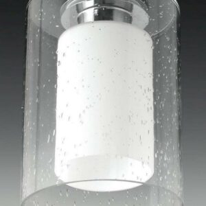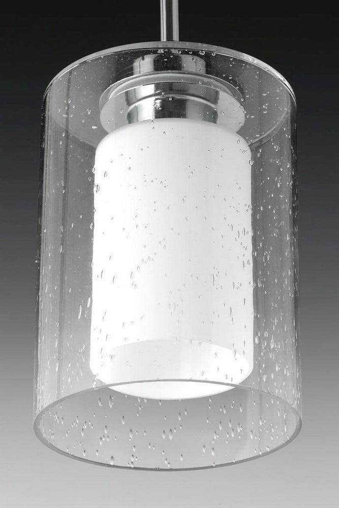 Create a focal point with the Double Glass pendant’s vintage-inspired silhouette. Oversized clear seeded outer glass with an inner etched white glass shade complements linear forms in a Polished Chrome finish.