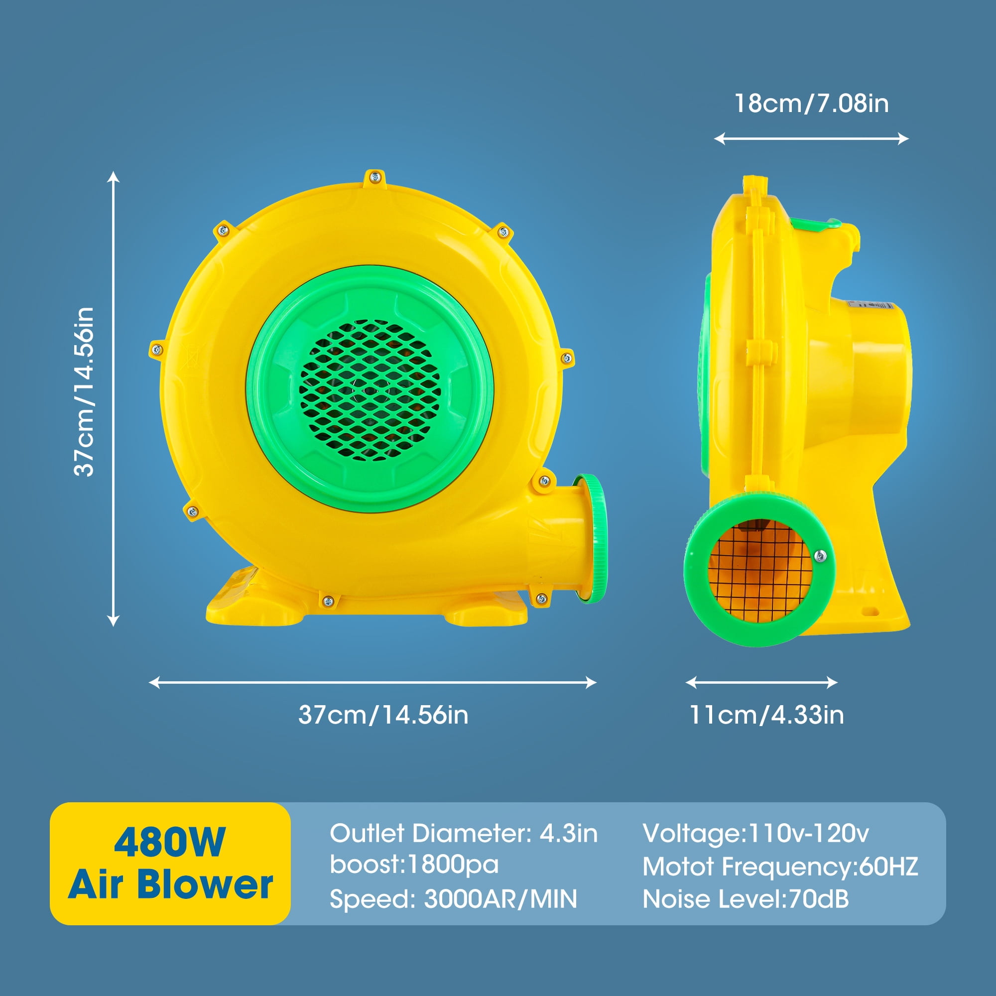 Doulami Air Blower Pump Fan 480 Watt Portable Blower for Inflatable Bounce House Bouncy Castle 👉Doulami 480W fan is designed for small and medium -sized bouncing houses. 👉Our air blower pump fan is made of high -quality fireproof plastic materials,durable and fall resistant. The multi -leaf dual -blade wind wheel is conducive to ensuring the smooth air duct and increase the air supply rate. 👍It is the ideal choice for various small and medium -sized castles, bounced, spray paint sheds, inflatable sofas or mattresses, and inflatable movie screens.