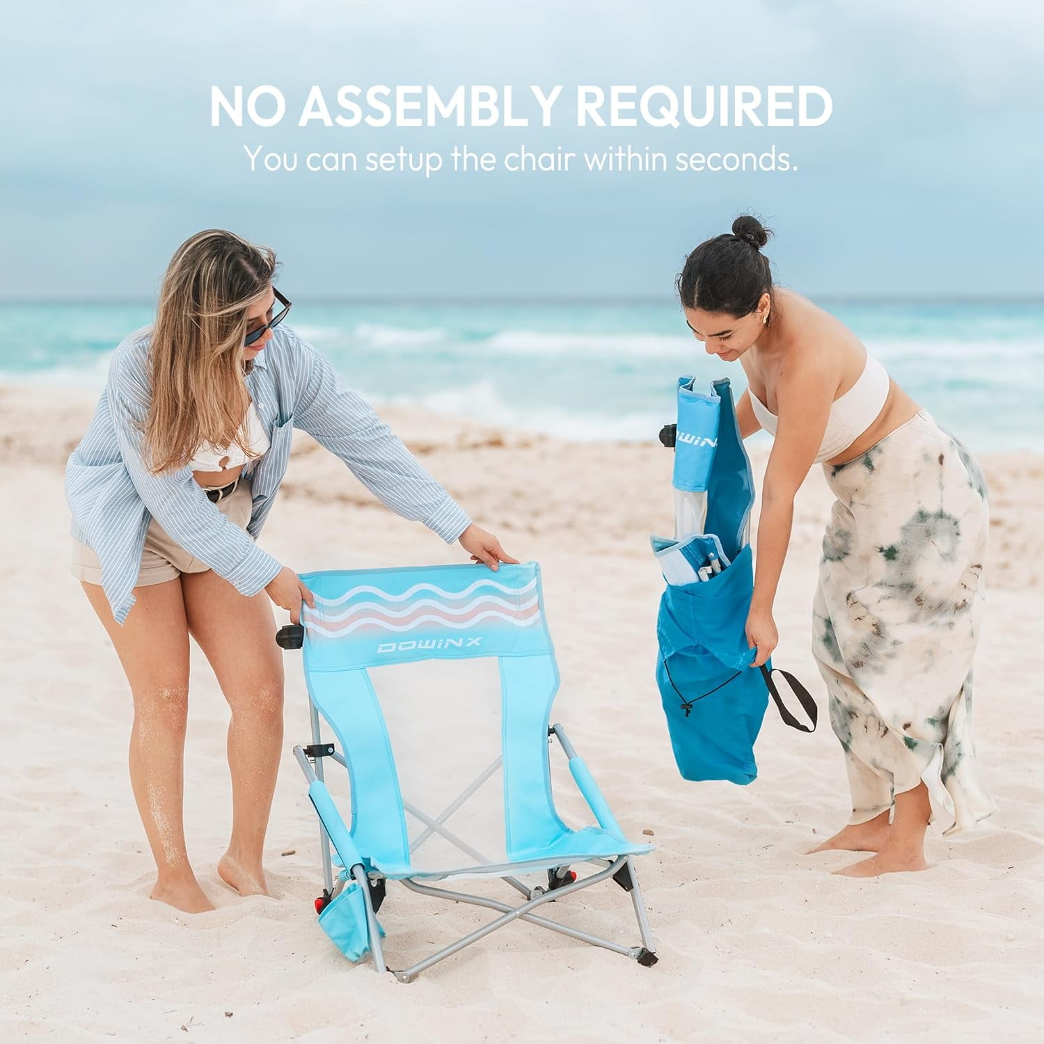 Dowinx Green Beach Chair for Camping | Adjustable Umbrella, Holdcup, UPF 50+ | High Back, Lightweight, Lawn Chair | Portable, Low | Adults