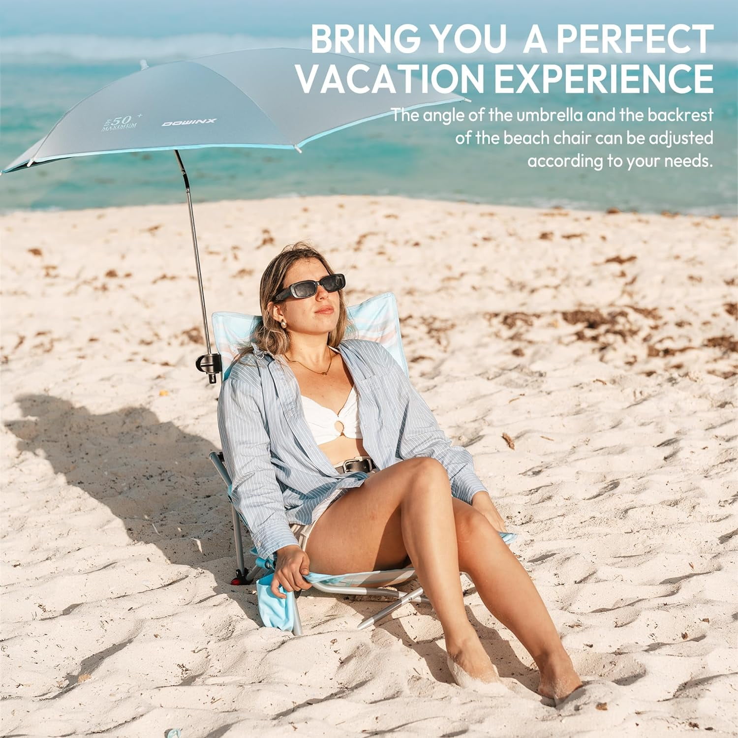 Product Description Enjoy Your Beach Day Silver titanium coated sunscreen umbrella can isolate UV rays more effectively and insulate more heat than regular umbrellas. This beach chair is designed with a three-position adjustable backrest, which allows you to adjust the angle of the backrest in a small range to meet the needs of more people. The height and direction of the beach chair sun umbrella can be adjusted by your needs. It can also be used without installing the sunscreen umbrella. Adjustable Umbrella The sunscreen umbrella adjustment direction is achieved by using a stiffened hose, which can be easily adjusted to the direction but is so sturdy that it won’t be easily blown over.The height of the umbrella can also be adjusted to a fixed height according to your needs. Ideal for Various Occasions Suitable for beach, garden, patio and other outdoor places. Foldable Beach Chair Cup holder Adjustable Backrest Ultra-strong clamp Side Cupholder Adjustable Backrest Silver titanium Umbrella Dowinx Outdoor Chair Beach Chair with Umbrella Add to Cart Oversized Rocking Chair Add to Cart Double Camping Chair Add to Cart Tanning Chair Face Hole See Details Customer Reviews 3.9 out of 5 stars 21 4.3 out of 5 stars 318 4.4 out of 5 stars 92 4.3 out of 5 stars 60 Price $39.99$39.99 $99.99$99.99 $69.99$69.99 — Set Up Size 20*19.6*28 inch 33.9*34.6*37.8 inch 19.7*36.1*40.9 inch 27.5*77.5*14 inch Folded Size 7.48*7.48*30.7 inch 5.9*11.8*43.3 inch 8.7*15.7*35.4 inch 27.5*27.8*7.5 inch Weight Capacity 220 lbs 300 lbs 400 lbs 475 lbs Best Uses Beach, Camping Camping, Garden Camping, Garden Sunbathing, Beach, Camping Added Features Cup Holder Cup Holder, Headrest, Pockets Cup Holder, Pockets Cup Holder, Headrest, Pockets