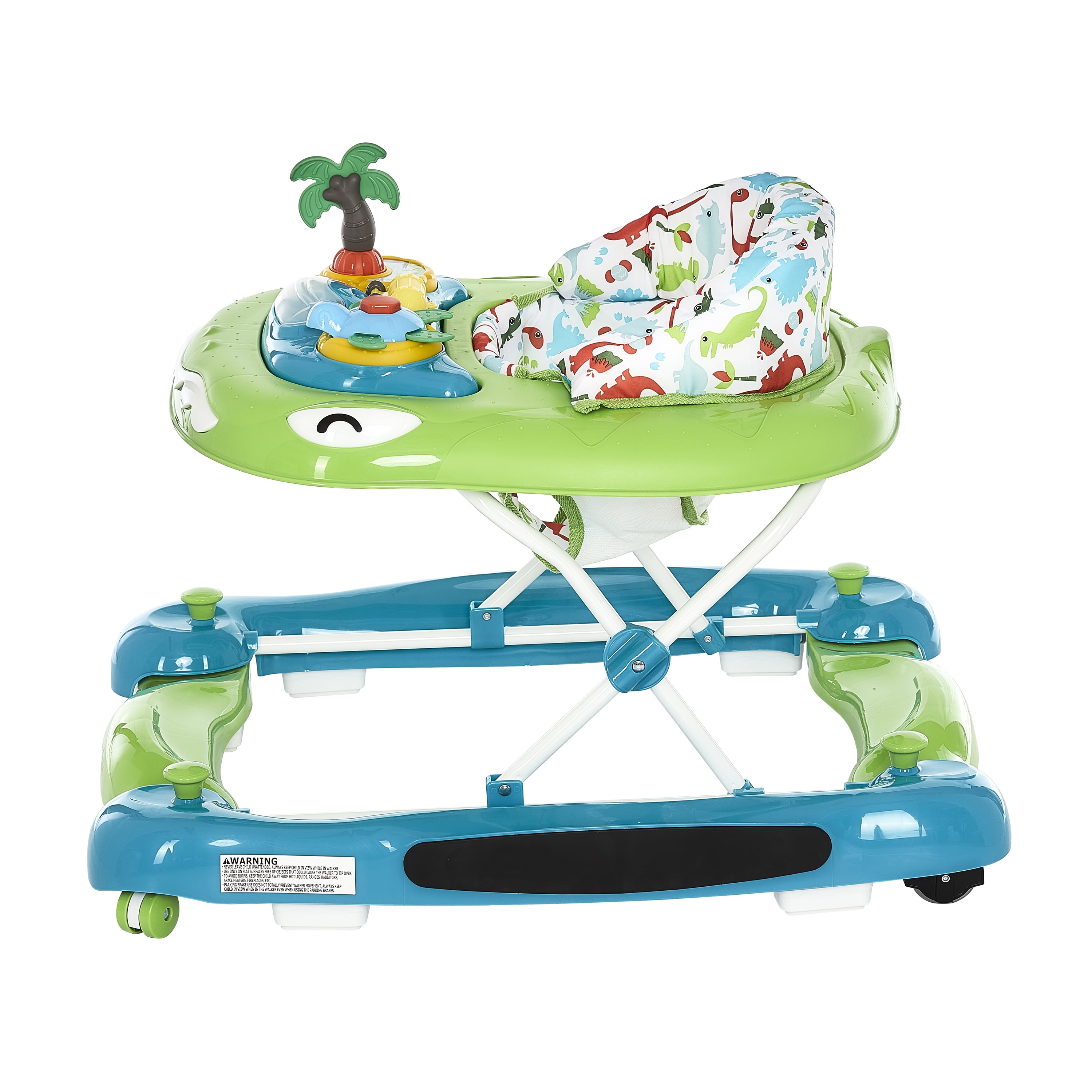 Let your baby take their magical first steps in the Baby Steps Walker Enjoy the magic of your child taking their first steps as they foray into walking in the seated walker – with its toys, it is an entertaining and practical toy. The 3-position height setting allows the walker to grow with the baby. The removable tray is fitted with beach-themed toys that help develop motor skills. Use a removable fabric footrest in a stationary position It comes with multi-directional wheels for easy and smooth maneuvering on floors and carpets. It conforms to ASTM F977 Safety Standards. Accommodates babies from 6 to 24 months of age The Baby Steps Walker is available in vibrant colors and prints. The seat pad is removable and machine-washable and you can wipe plastic parts with a damp cloth using mild soap The Baby Steps folds compactly making it convenient to store and also to carry it along when you travel or to grandma’s house. Product specs are 26L x 25W x 16H inches and it weighs 10 lbs.