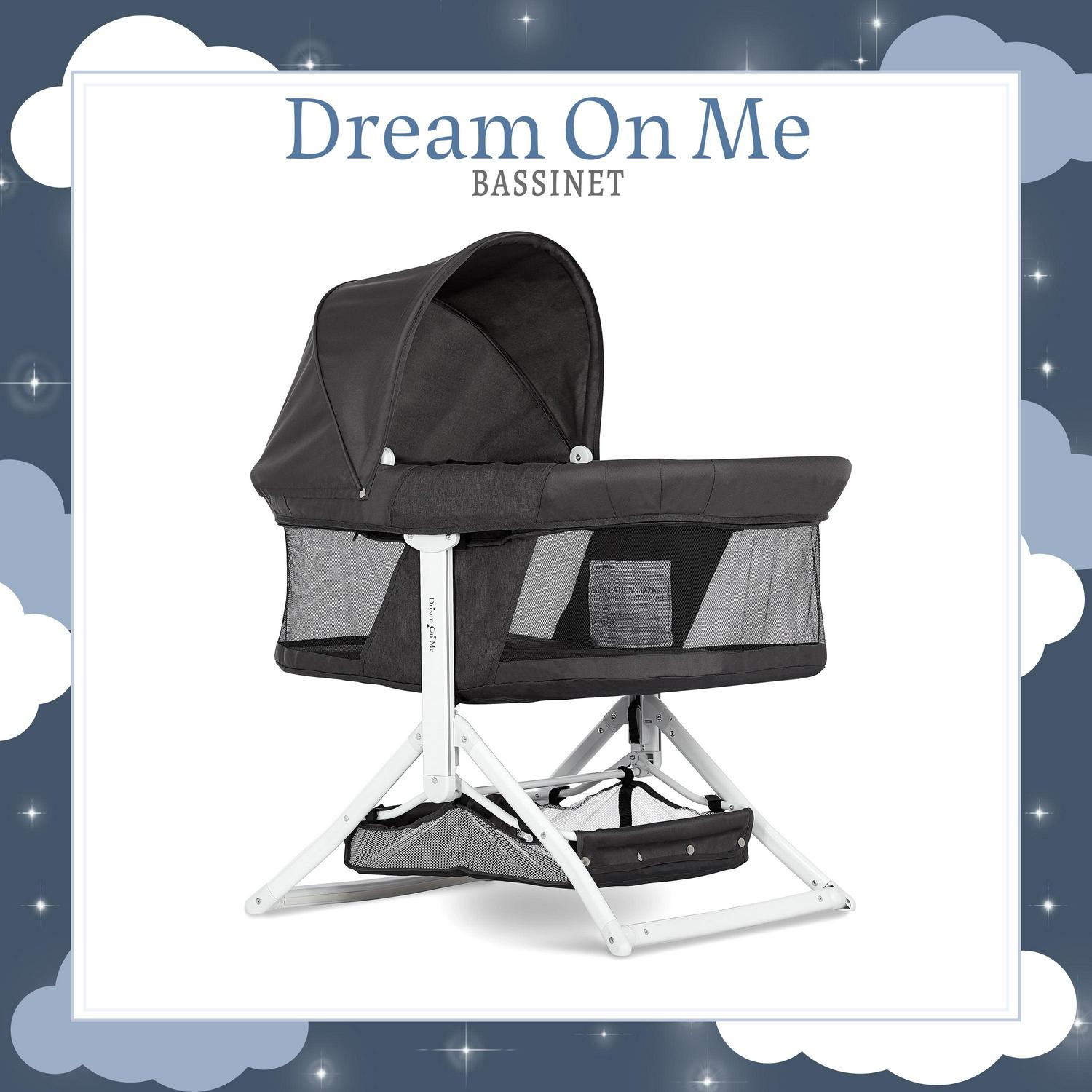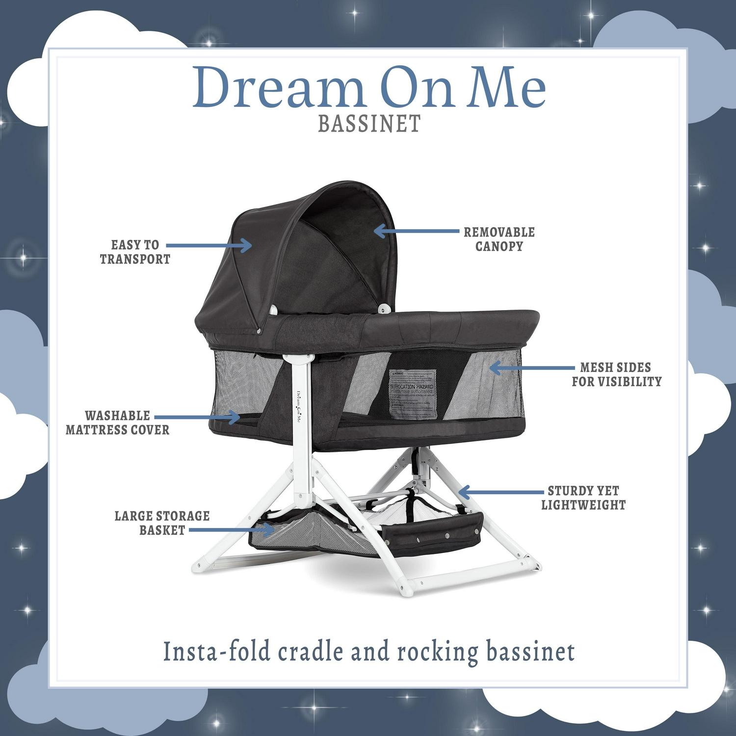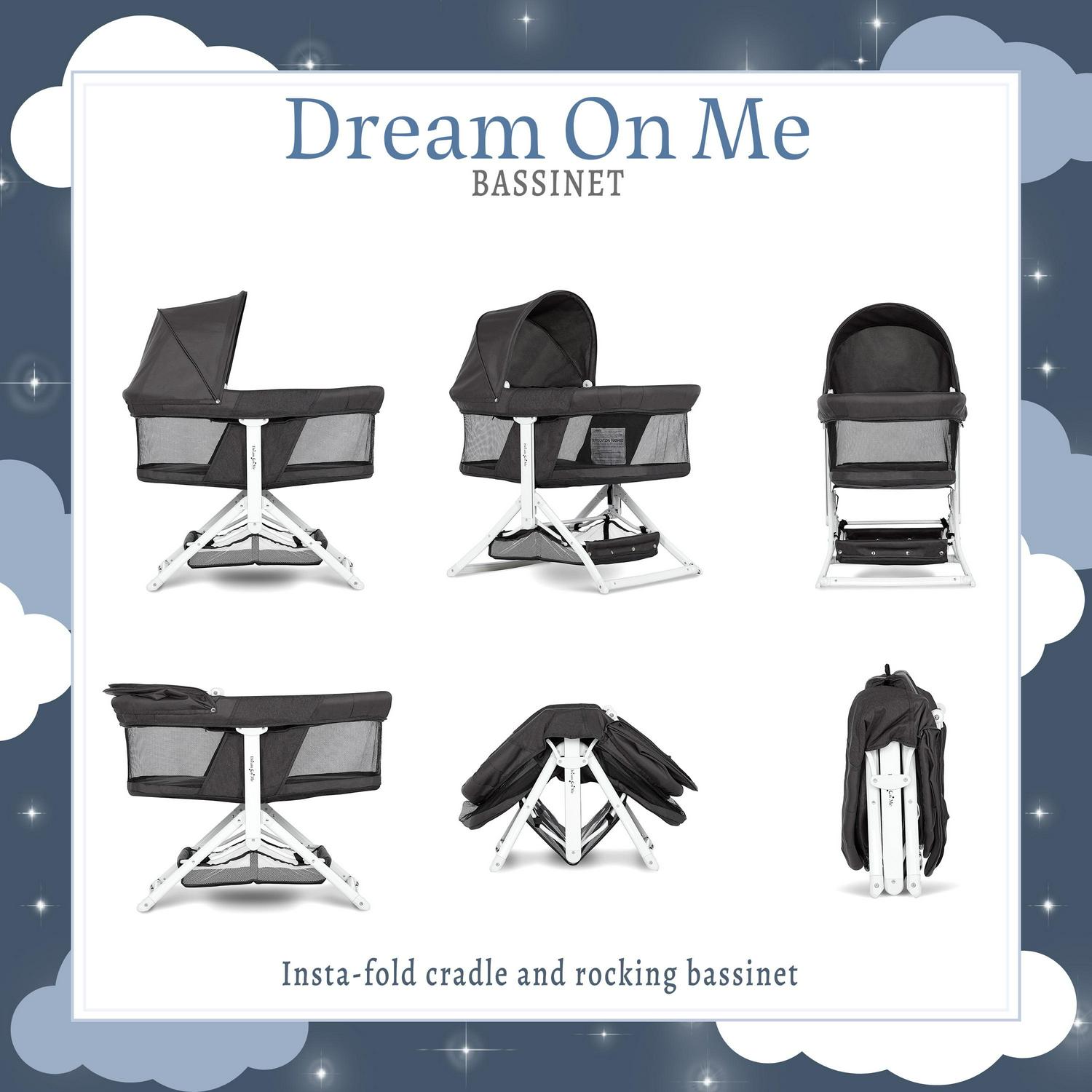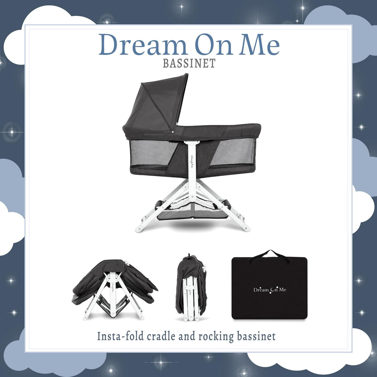 Dream On Me 2-in-1 Convertible Insta Fold Bassinet and Cradle, Lightweight and Portable, Black