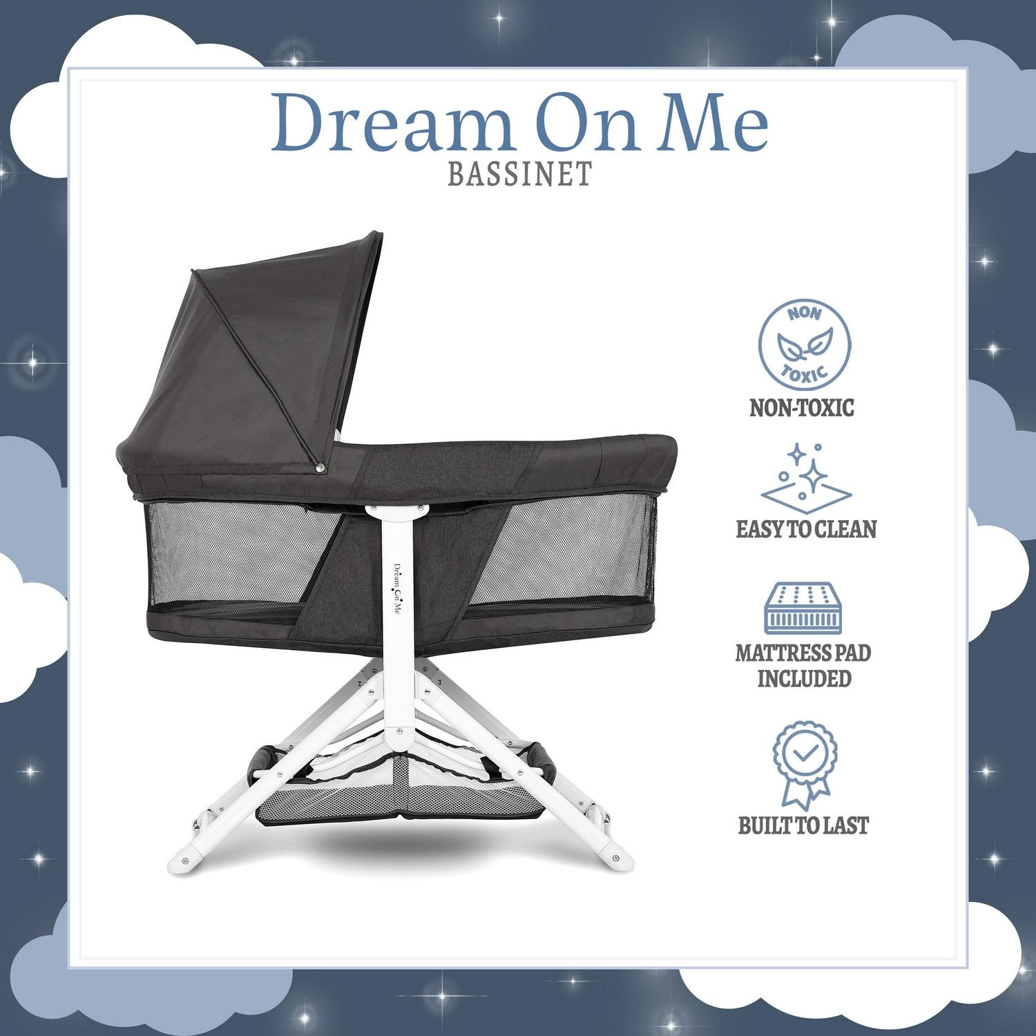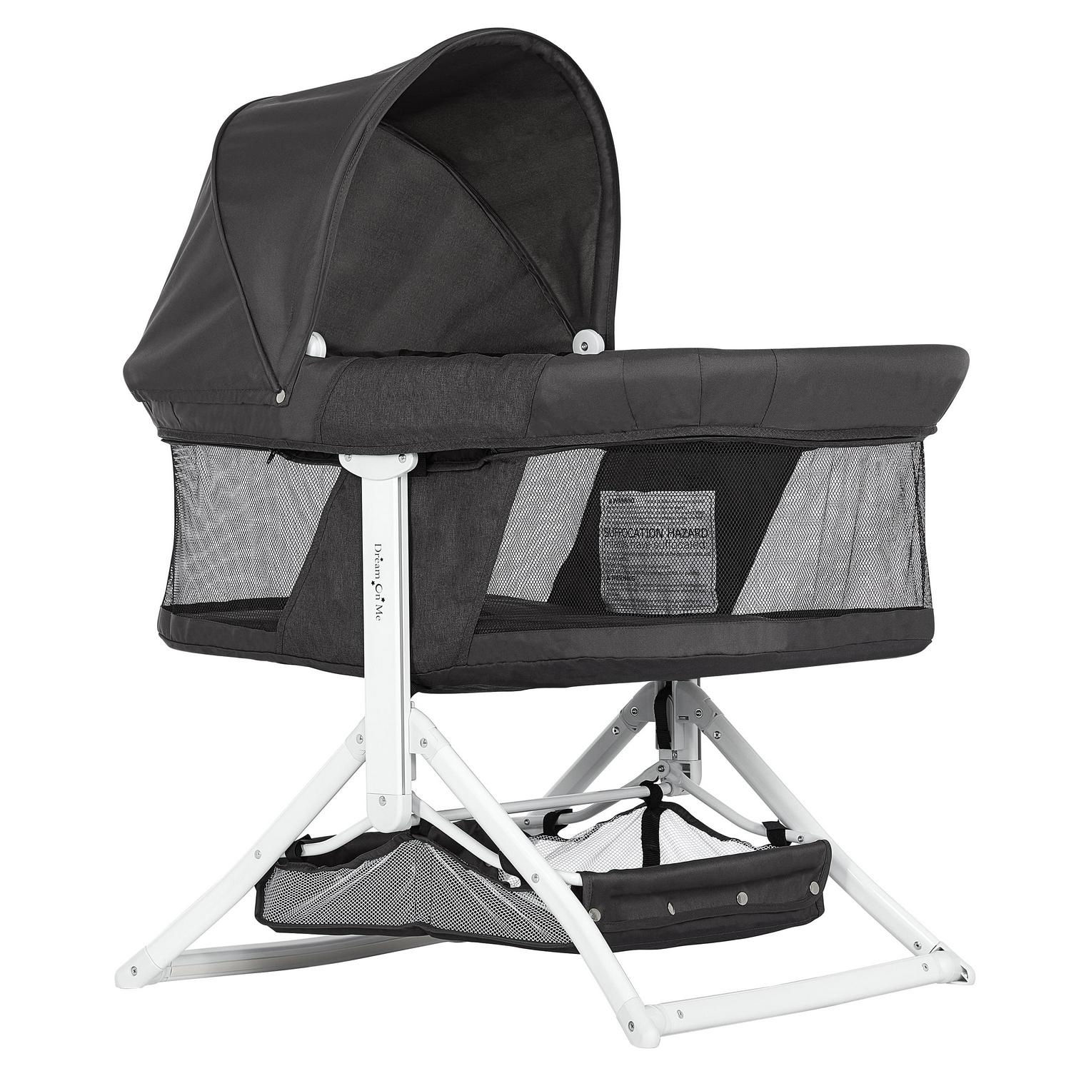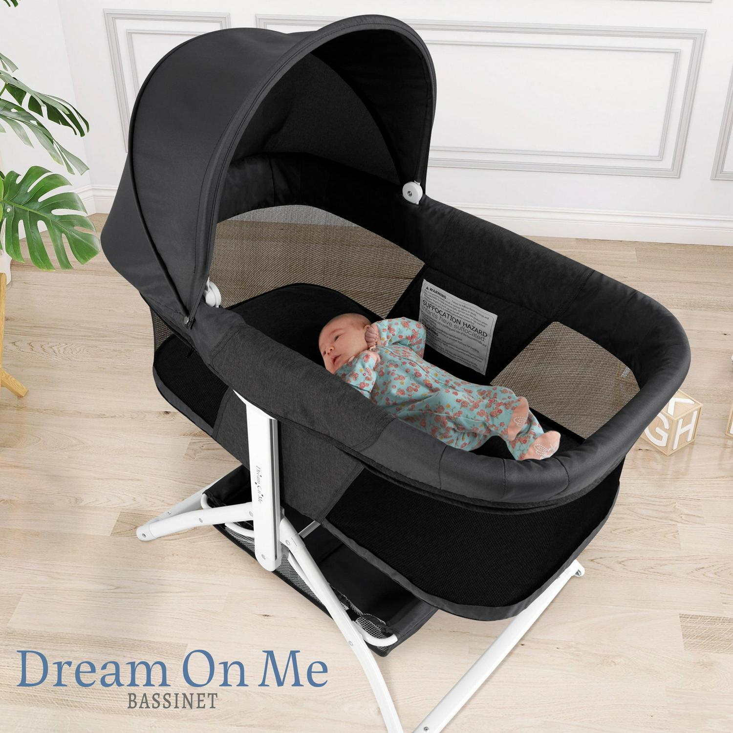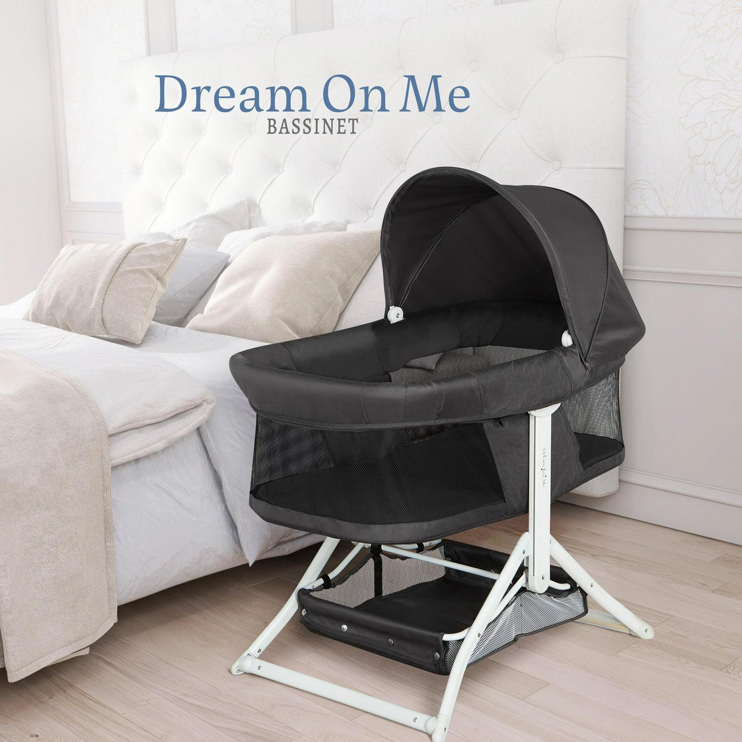 Dream On Me 2-in-1 Convertible Insta Fold Bassinet and Cradle, Lightweight and Portable, Black