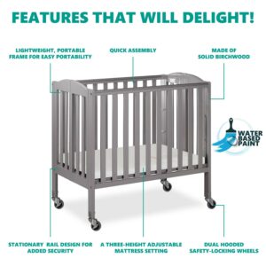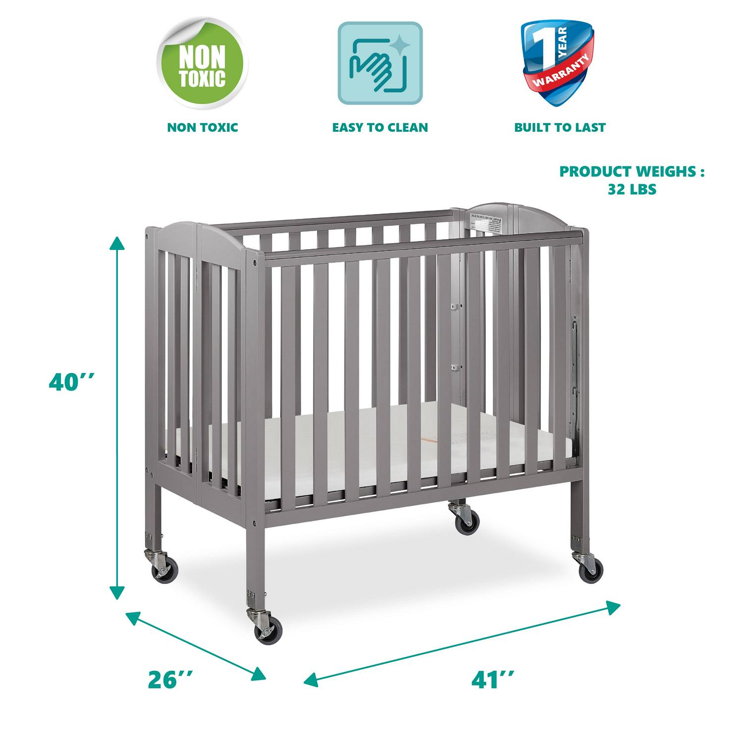Dream On Me 3-in-1 Folding Portable Mini Crib, Grey