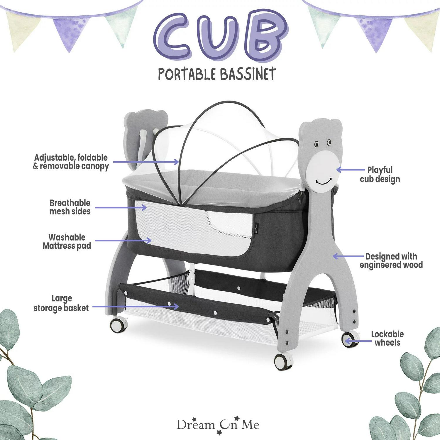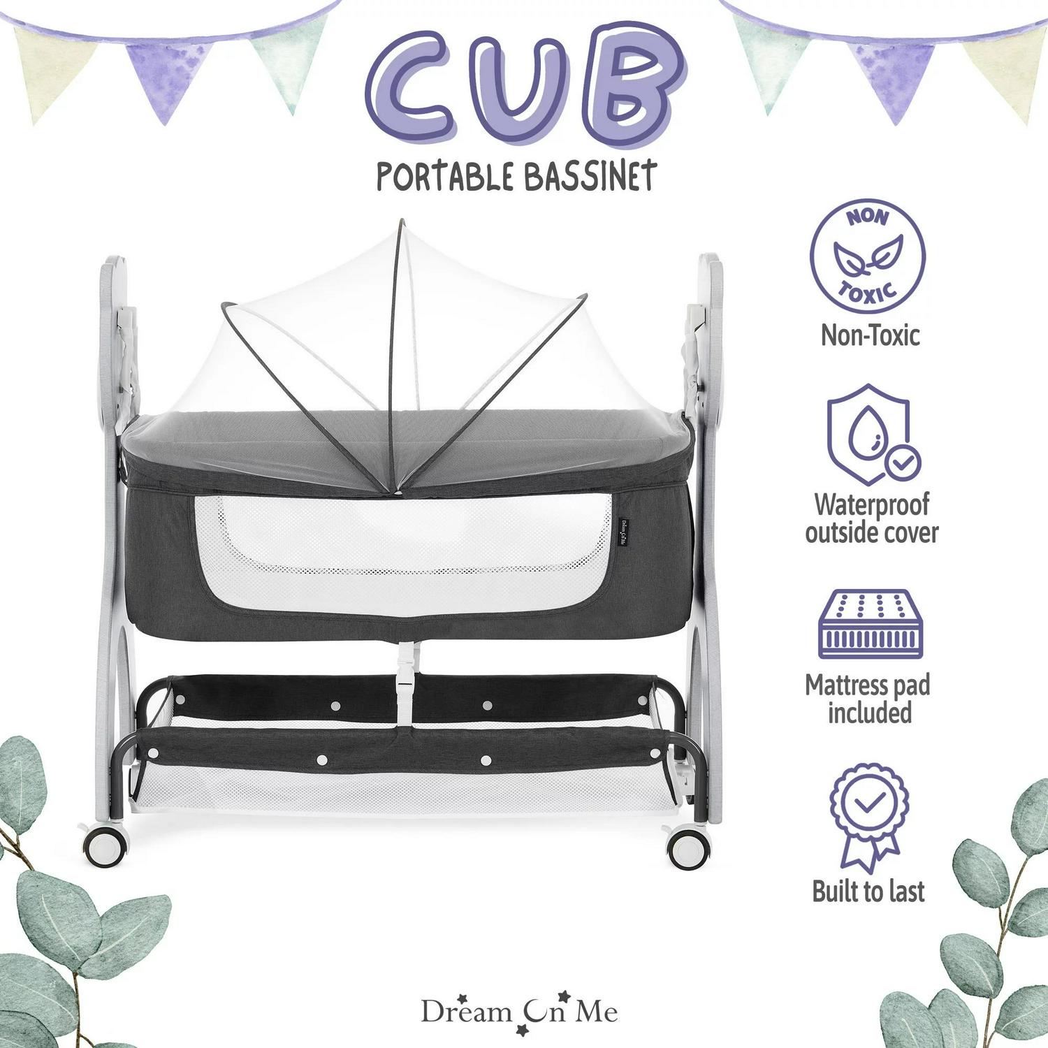 Dream on Me 392-DG Cub Portable Bassinet in Dark Grey, Multi-Use Baby Bassinet with Locking Wheels