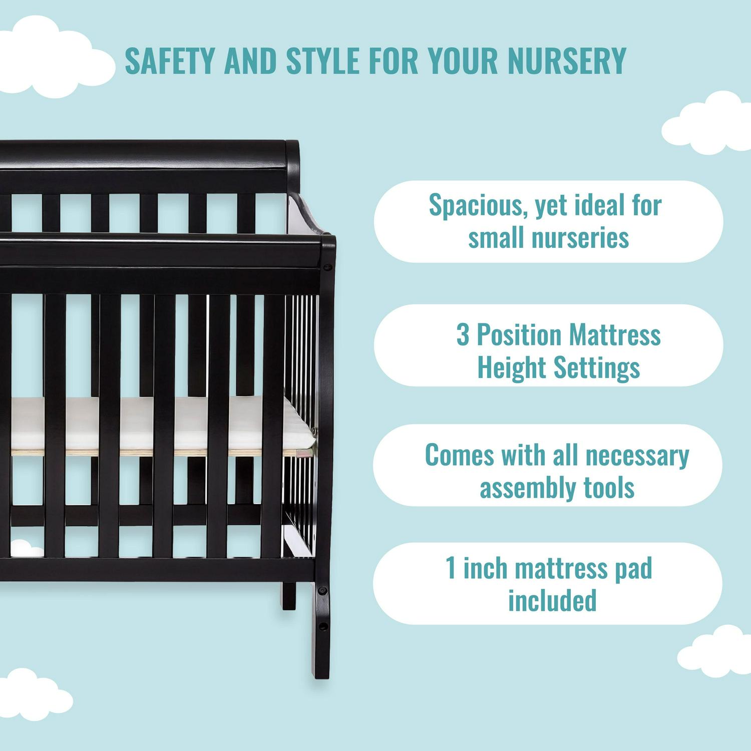 Dream On Me Aden 4-in-1 Convertible Mini Crib, Black: