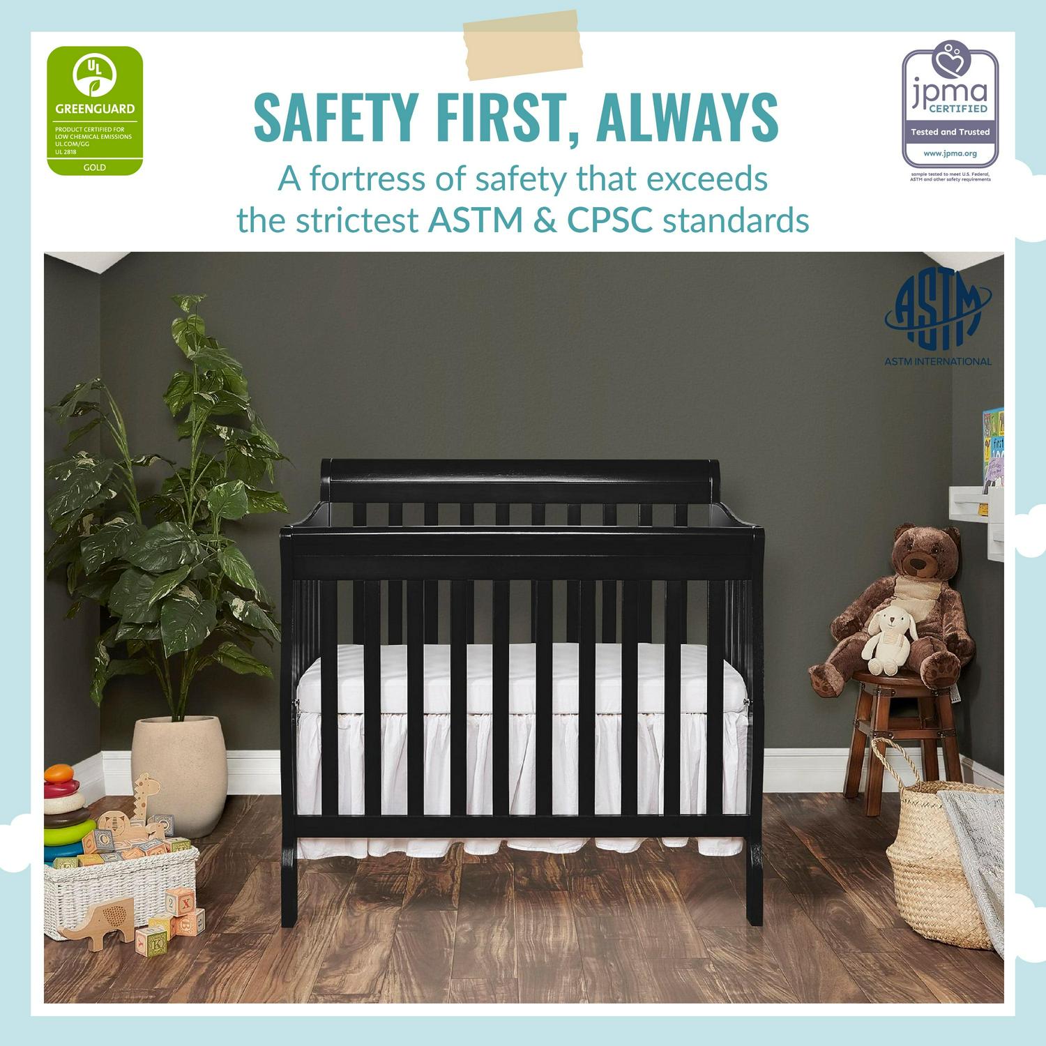 Dream On Me Aden 4-in-1 Convertible Mini Crib In Black, Greenguard Gold Certified