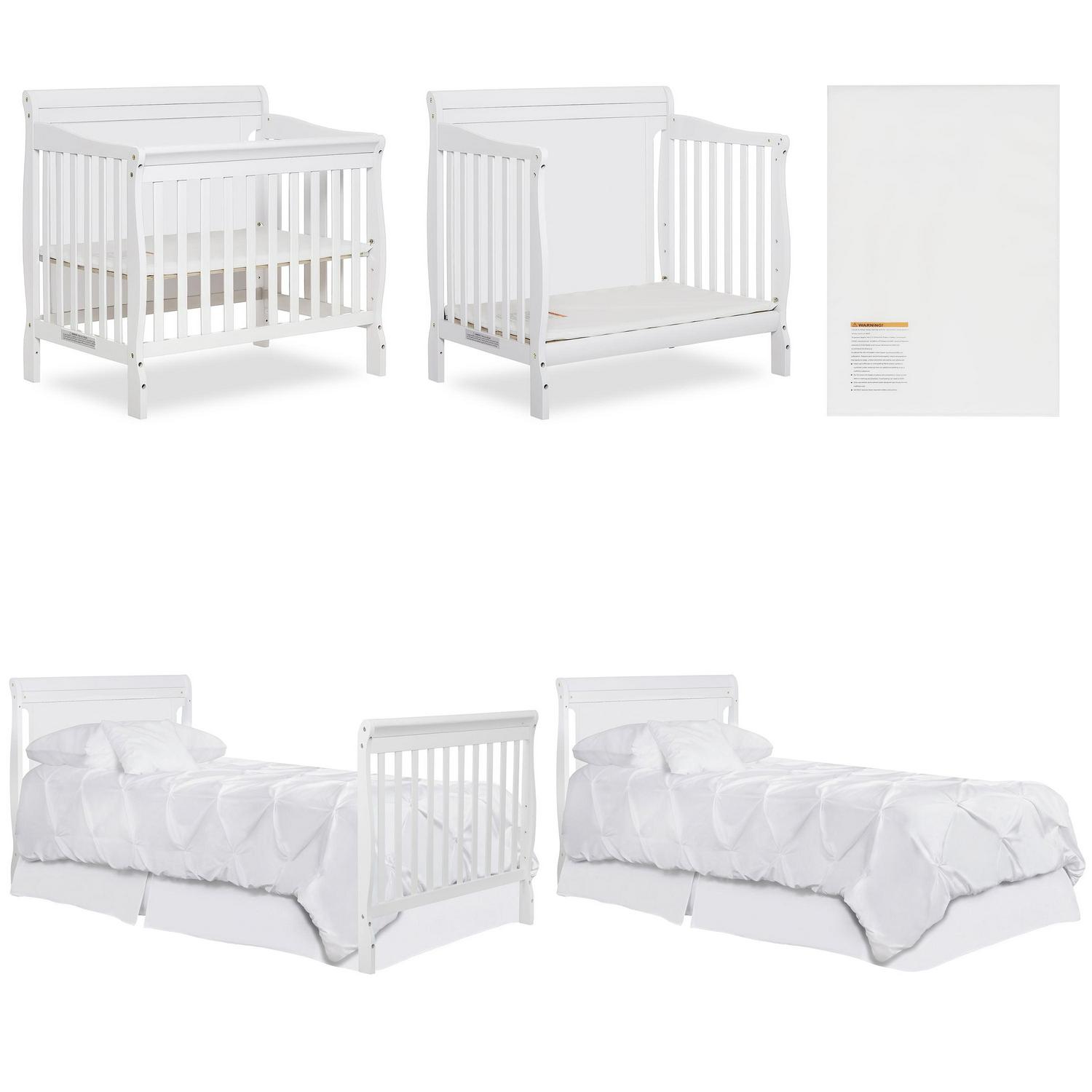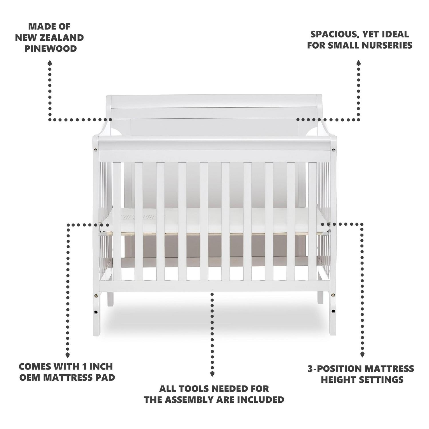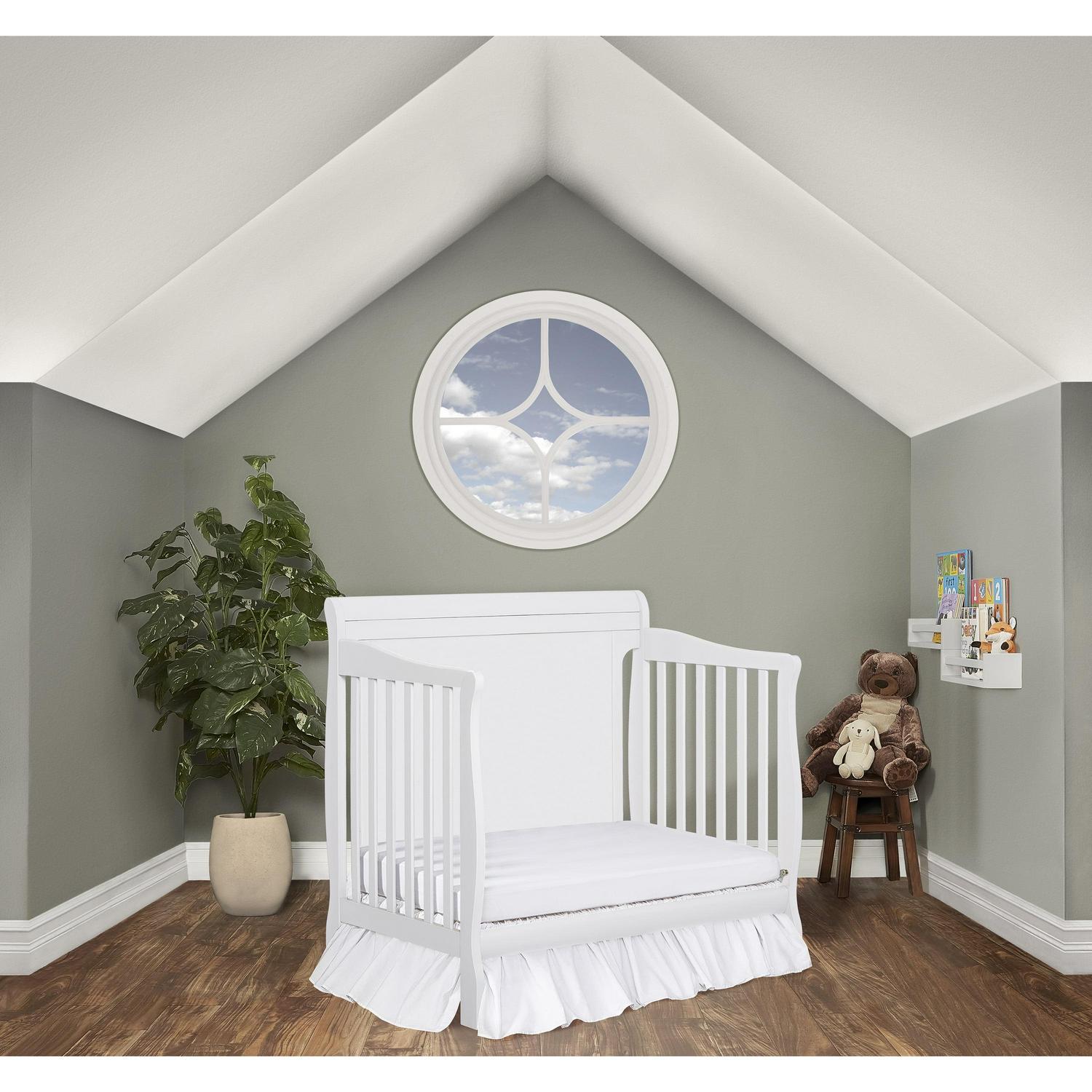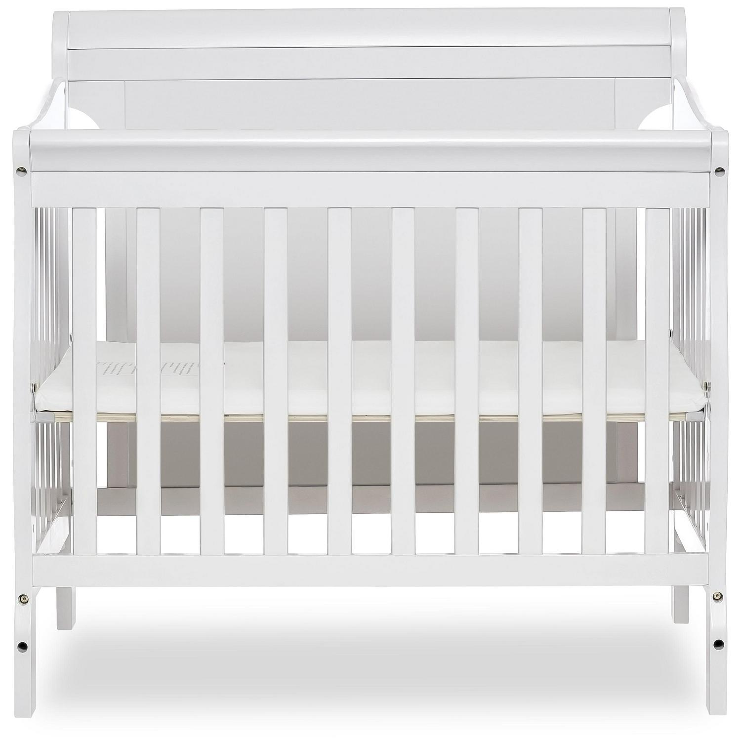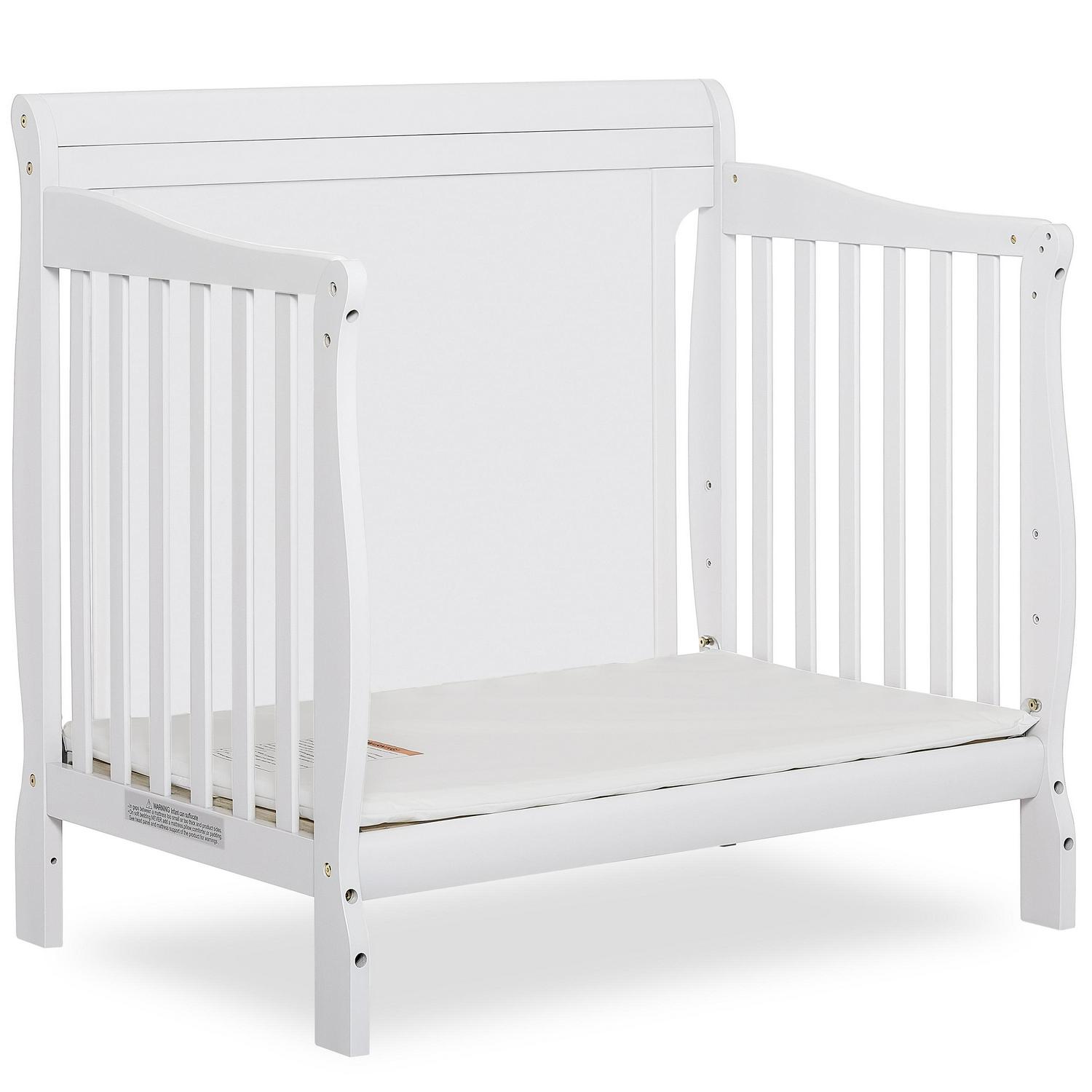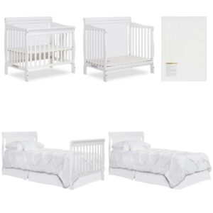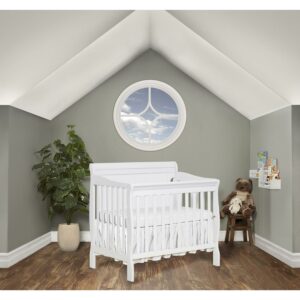 Dream On Me Aden Full Panel Convertible 4-in-1 Mini Crib In White, Greeguard Gold Certified