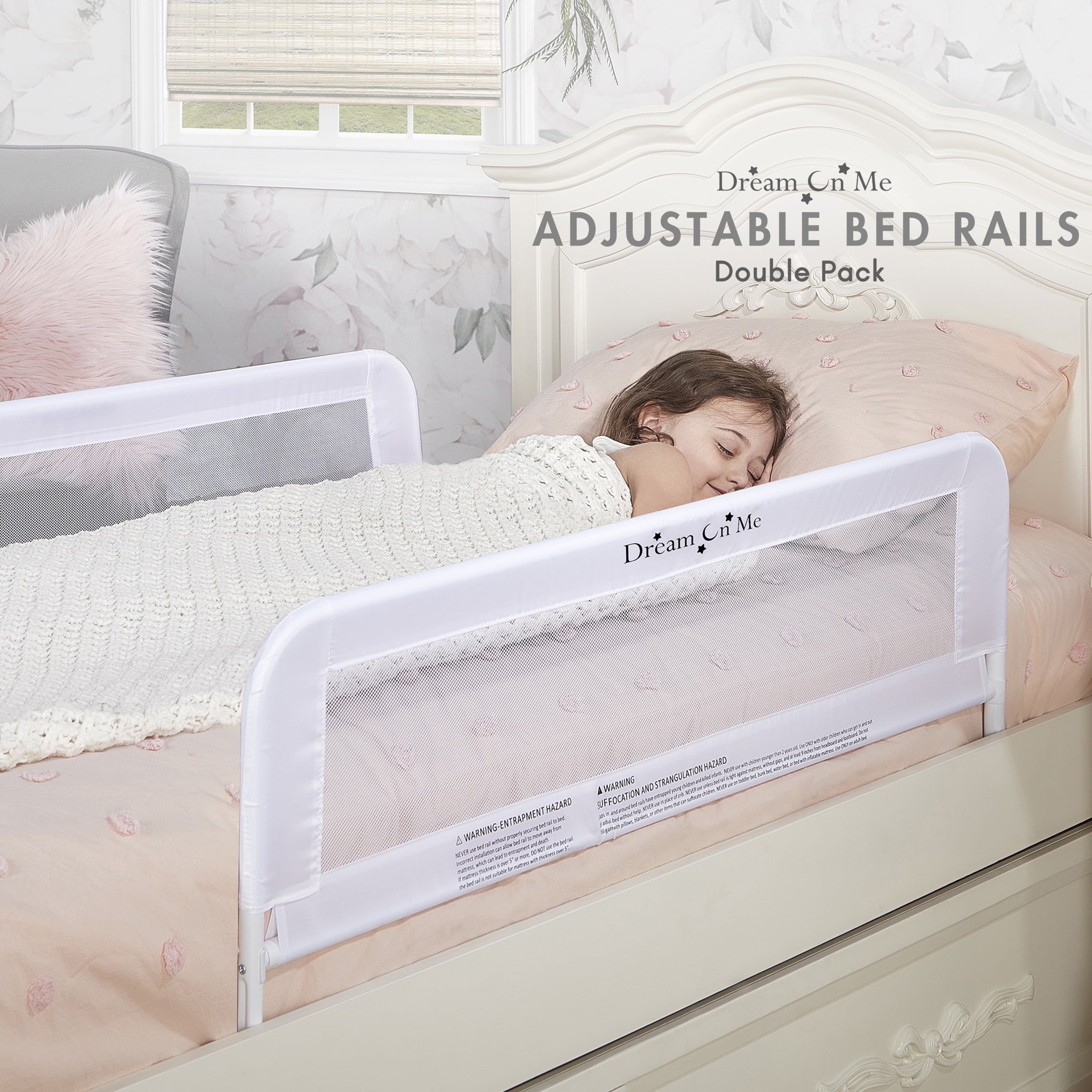 Dream On Me Adjustable Mesh Bed Rail in White, Two Height Levels, Breathable & Durable Fabric, Lightweight and Portable Bed Rail for Toddlers