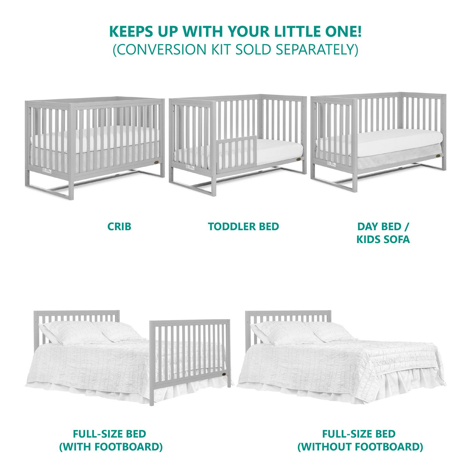 – 5-IN-1 CONVERTIBILITY: The Arlo easily converts from a crib into a toddler bed (conversion kit sold separately) and daybed.