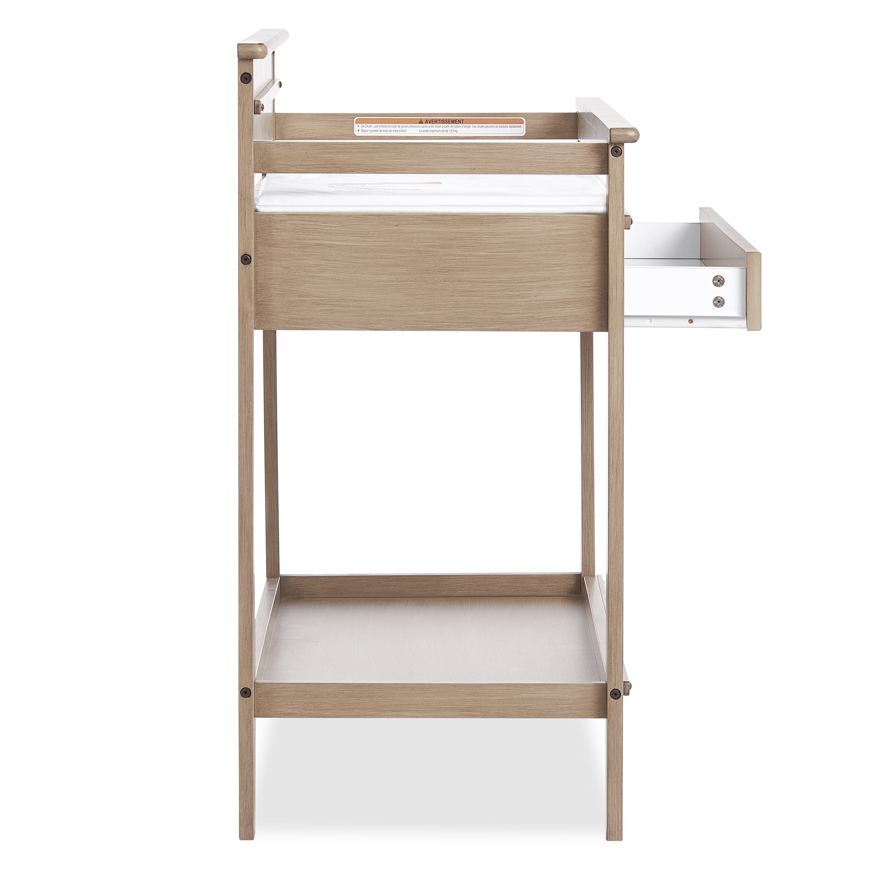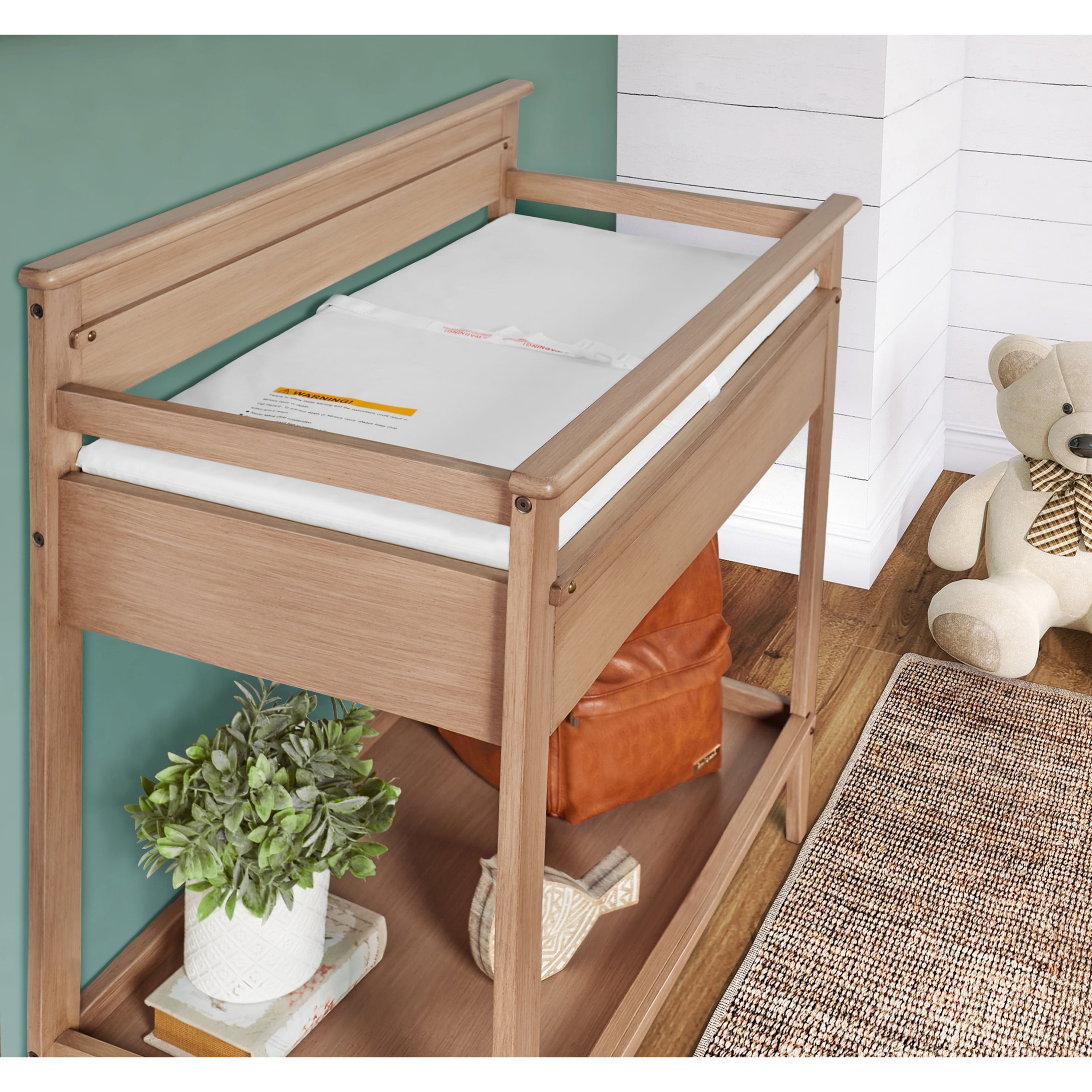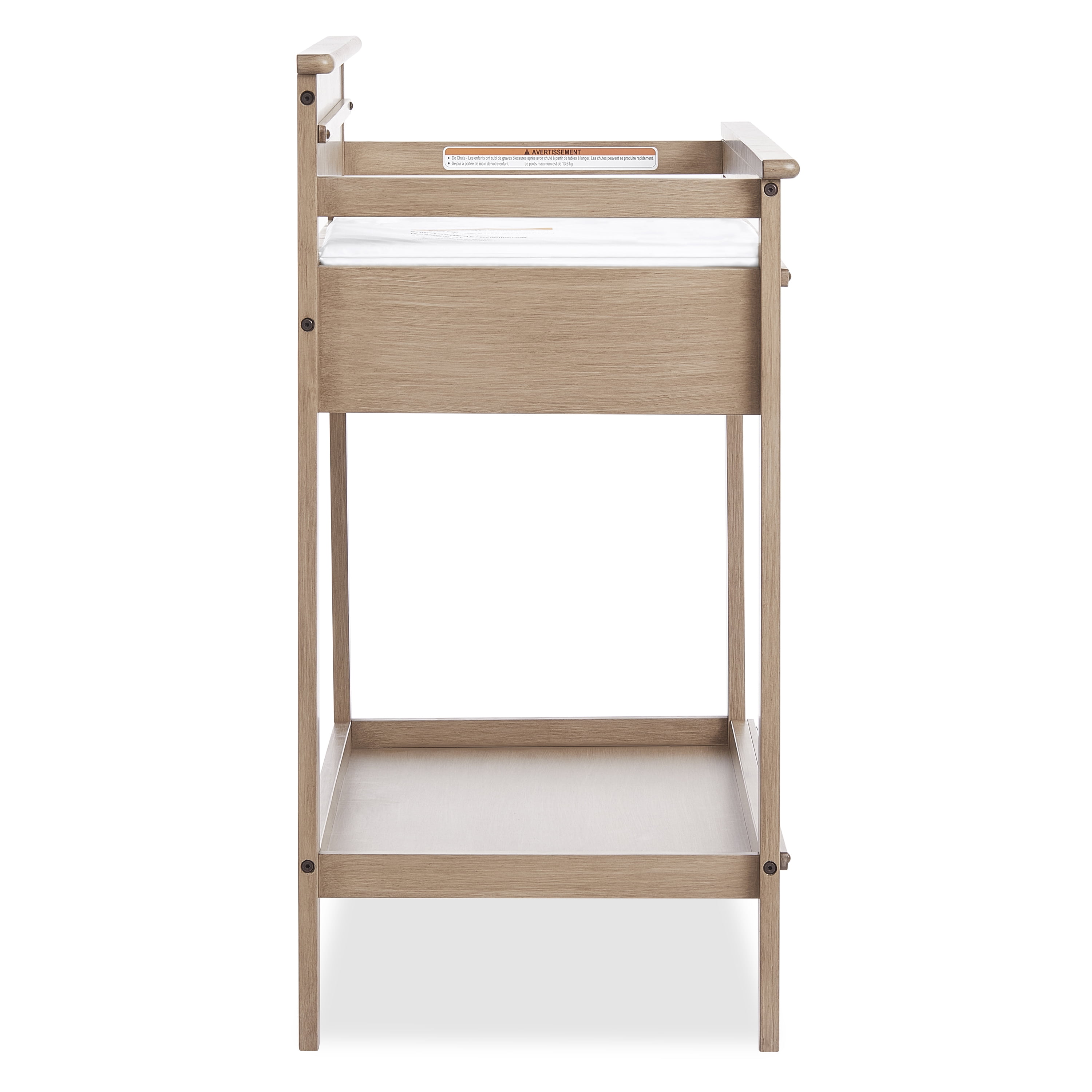 Keep your changing essentials organized with 2 open shelves for easy storage and access to all of your diapers, wipes, and creams. The Dream On Me Bayfield Changing Table is JPMA & Greenguard Gold certified Comes with a secure restraint harness for your little one and meets/exceeds ASTM & CPSC standards Made of sustainable New Zealand pinewood Easy-to-assemble changing table comes with a 1” thick, water-resistant mattress pad and is easy to spot or wipe clean. This solid changing table comes in 2 charming, non-toxic finishes – Glazed Brush White & Sand Dunes Product dimensions are 38.4 L x 19.7W x 39.5H, with a weight of 44 Lbs