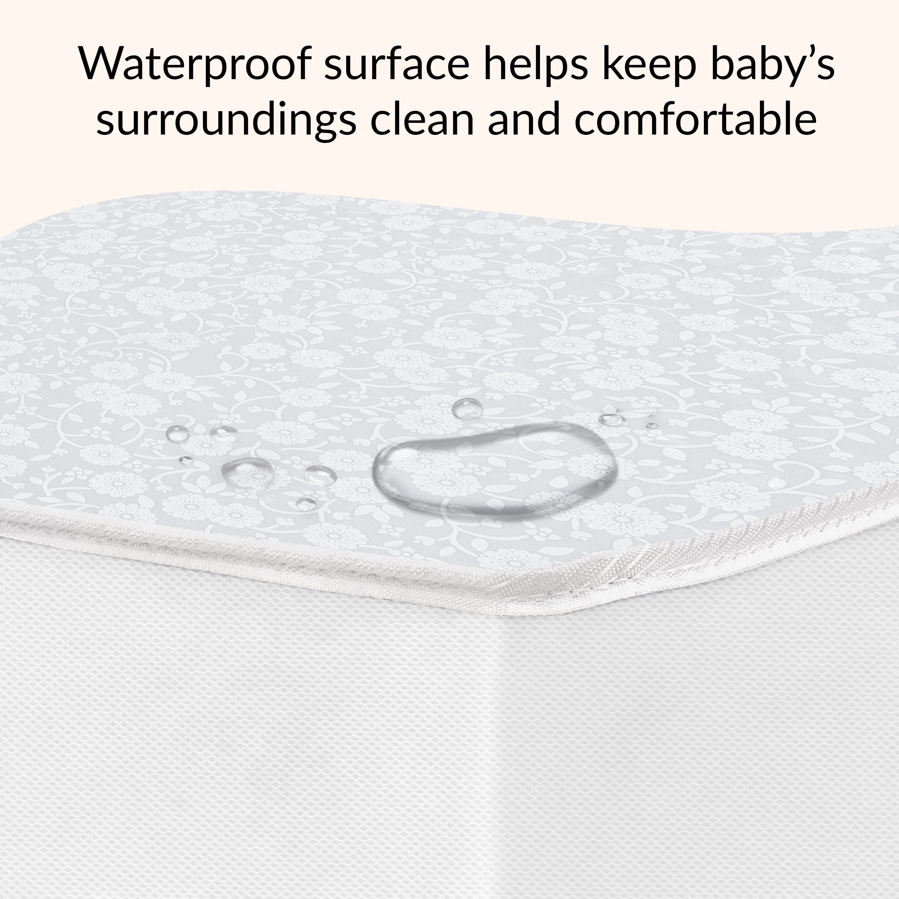 Breathable Mattress cover Promotes airflow Laboratory tested for air/water vapor permeability 2 Hypo-allergenic layers offer cushioned comfort for infants and toddler Reinforced- waterproof cover and binding resist liquids and stains Wipe clean with mild soap and warm water Safety Advice: Please ensure Mattress covers or fitted sheets are not too tight or loose over a crib mattress to practices safe sleeping. Passes all Flammability tests (16 CFR 1632 /1633) and also pass phthalate, lead and toxicity tests GREENGUARD Gold Certified for a healthy indoor environment for your baby JPMA certified to meet or exceed all safety standards set by the CPSC and ASTM Reversible design allows mothers to choice Breathable white side or the printed side
