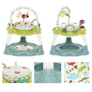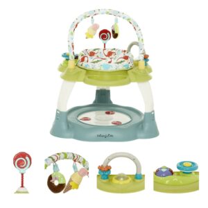 – The enhanced bounce and spin helps children develop core leg muscles, while the hanging toys encourage reaching, stretching and sitting up, coupled with a tray mirror that helps promote self-awareness. Features an easy, push button 3 stage height adjustment to allow the product to grow with your baby as well as removable toys and a machine washable pad making cleaning simple and quick