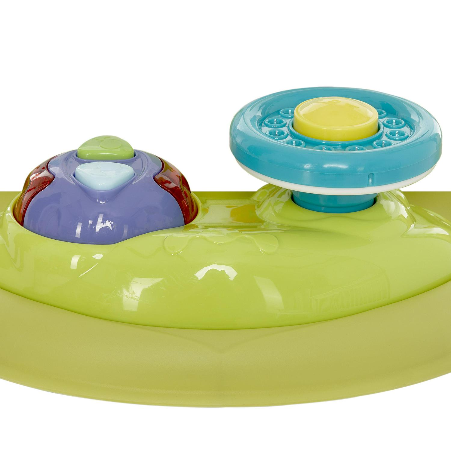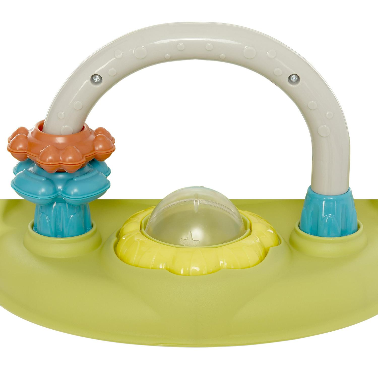 – A safer alternative to walkers; provides a safe environment for baby Interactive, age-appropriate toys. This activity center features tons of activities that help infants and toddlers from 4 months to walking age in key early child development areas like core leg strength, reaching and stretching, and spine and neck development.