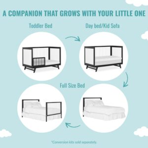 – CONVERTIBILITY OPTIONS: Convert it from a crib to a toddler bed, a day bed, and then a full-size bed (full-size bed frame and bed rails sold separately). It features a convenient 3-height mattress setting to grow with your baby.