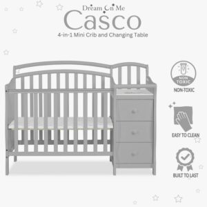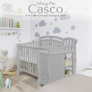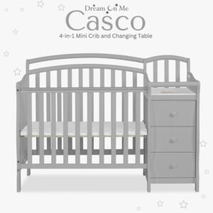Dream On Me Casco 4-in-1 Mini Crib and Dressing Table, Pebble Grey