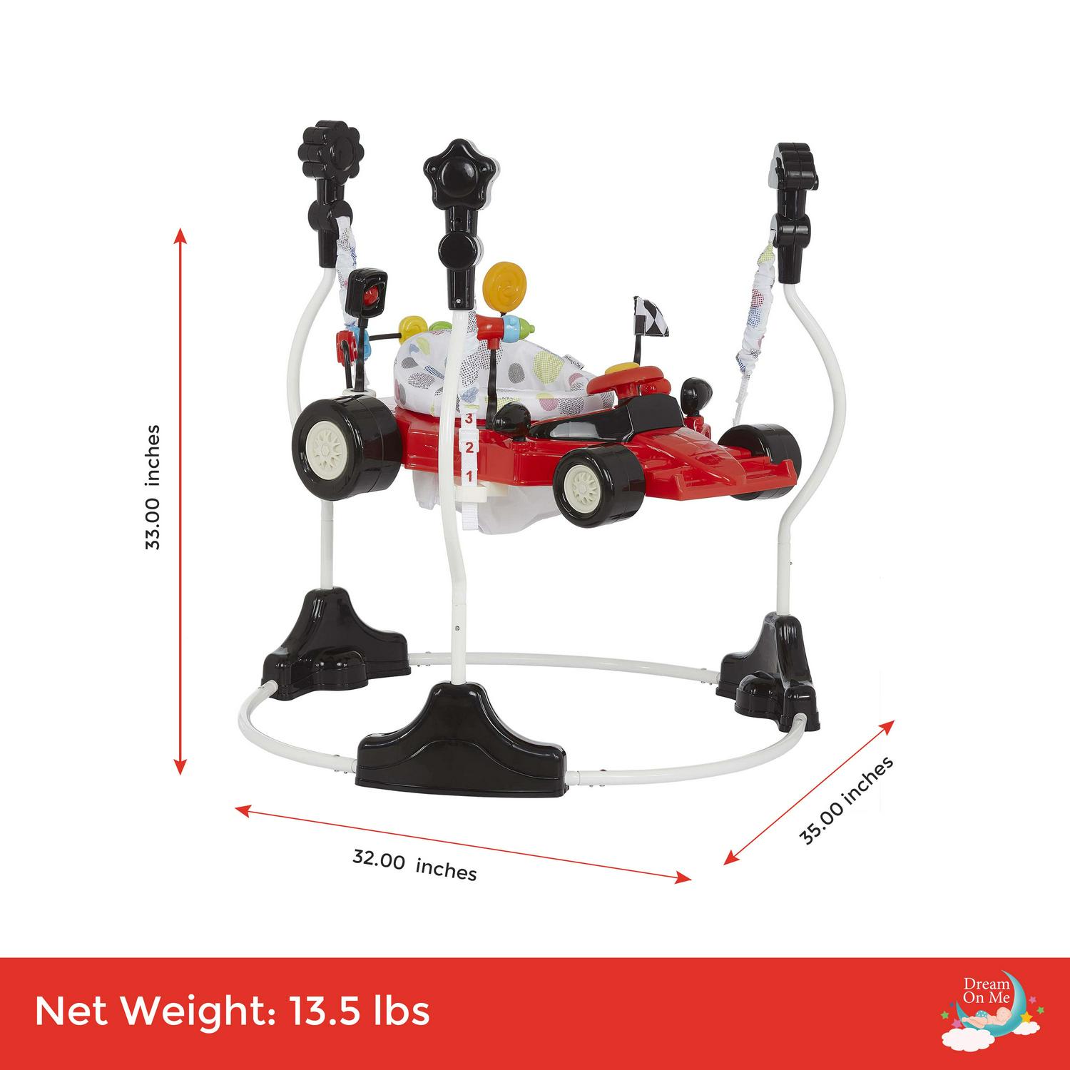 Get your happy on with Dream On Me Champ activity center. Champ is the perfect first car for your little one. It encourages active play and boosts mind stimulation in a fun and joyous way. Fun at all angles, the Champ includes a 360-degree rotating seat, so there will always be something to play with, look at, or listen to. Your baby can jump for joy at all the excitement as the stationary Champ allows for a safe, just the right amount of bounce at 3 adjustable positions for growing legs. All in all, Champ provides entertainment that stimulates your child’s early age development while mommy can relax or complete daily chores. Recommended for children six months and up.