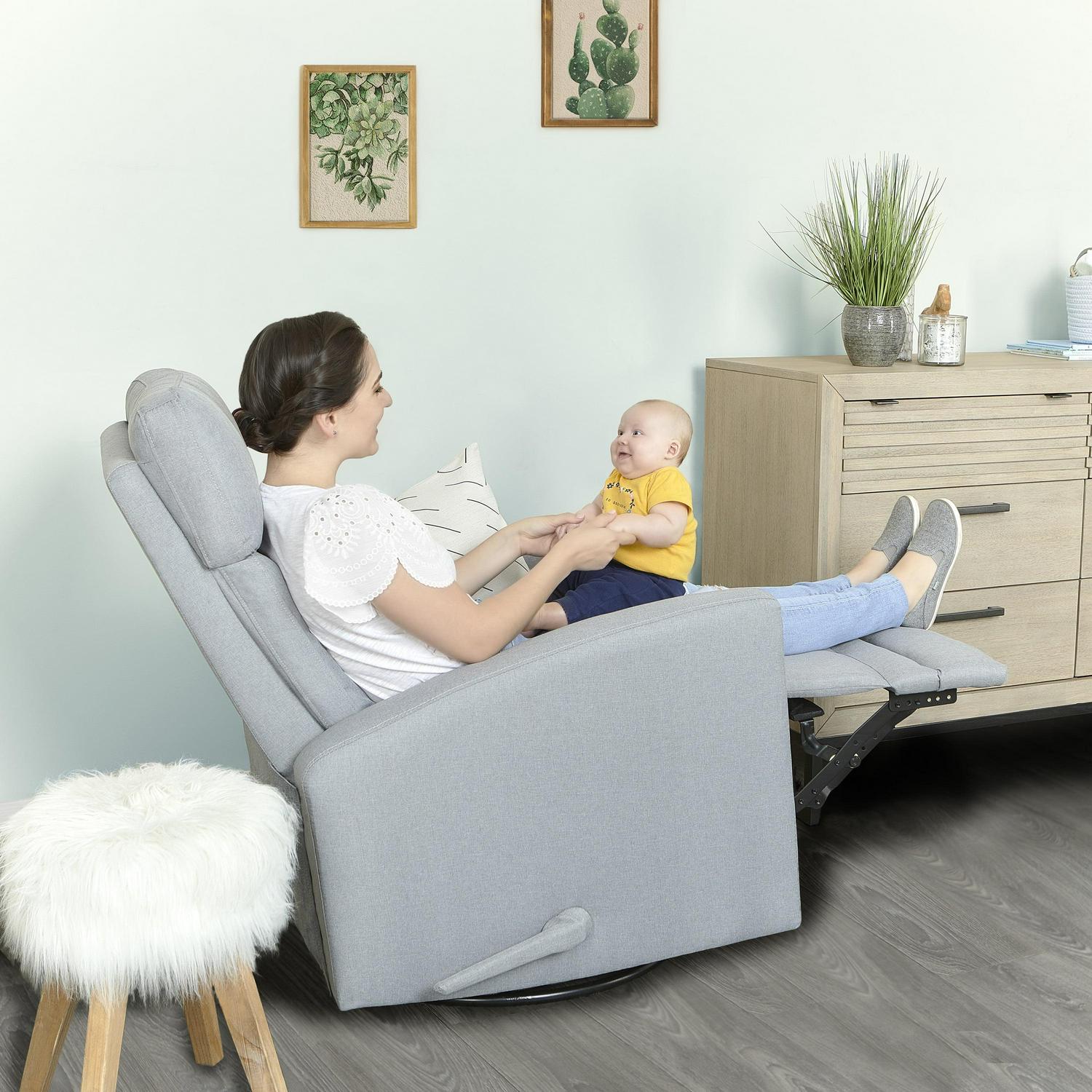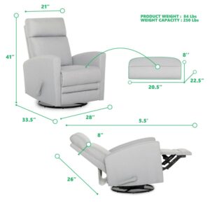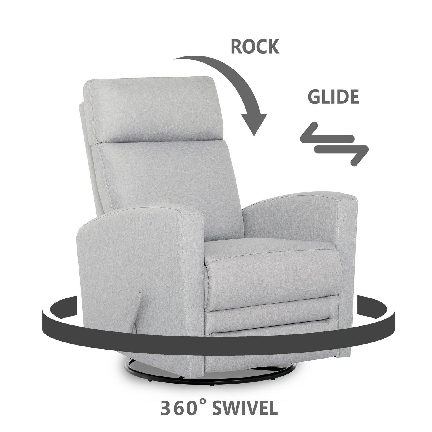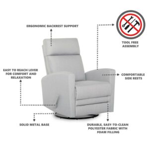 Dream On Me Chatham Swivel Gliding Recliner in Grey, FSC Certified, Durable Polyester Fabric