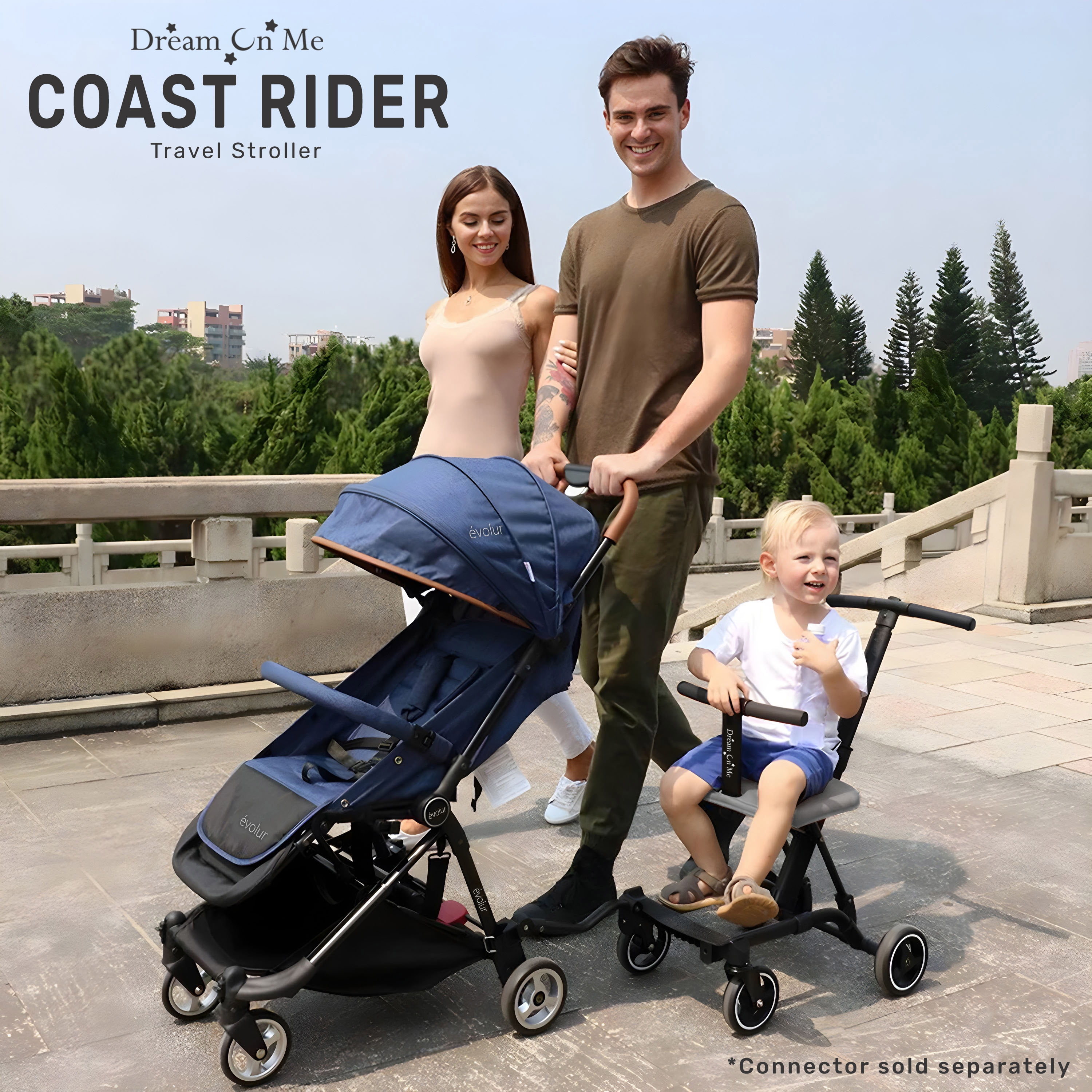 Imagine all of the perks that come with having a traditional stroller without the added bulk! The Dream On Me Universal Coast Rider/Stroller is the perfect item for parents on the move! This modern style stroller folds compactly, making it a breeze to travel with your little passenger anywhere, anytime! Allow the stroller to adapt to you and your child’s needs for their personal excursion. This wonderful addition comes with a variety of conversions and features including a removable seat back, safety harness with adjustable handles and push bars. Available in four different colors, The Coast meets or exceeds all ASTM and CPSC standards. Disclaimer: Never leave your child unattended in the Stroller/Rider. Five-point safety harness should be kept on at all times when a baby/child is in the stroller/Rider. Never hang a shopping bag, purse, diaper bag or any other bag to the handle of the Stroller/Rider. Additional weight on the handle could tip the stroller or a baby/child could be entangled by a strap causing suffocation or injury. Please follow all safety protocols while using this product.