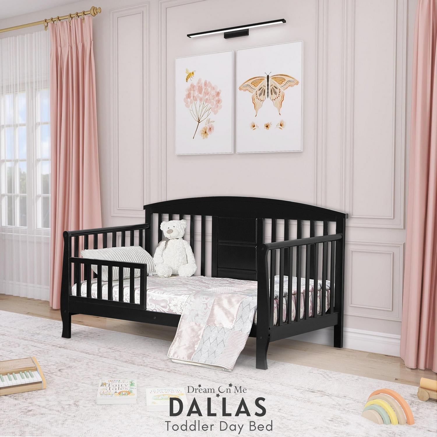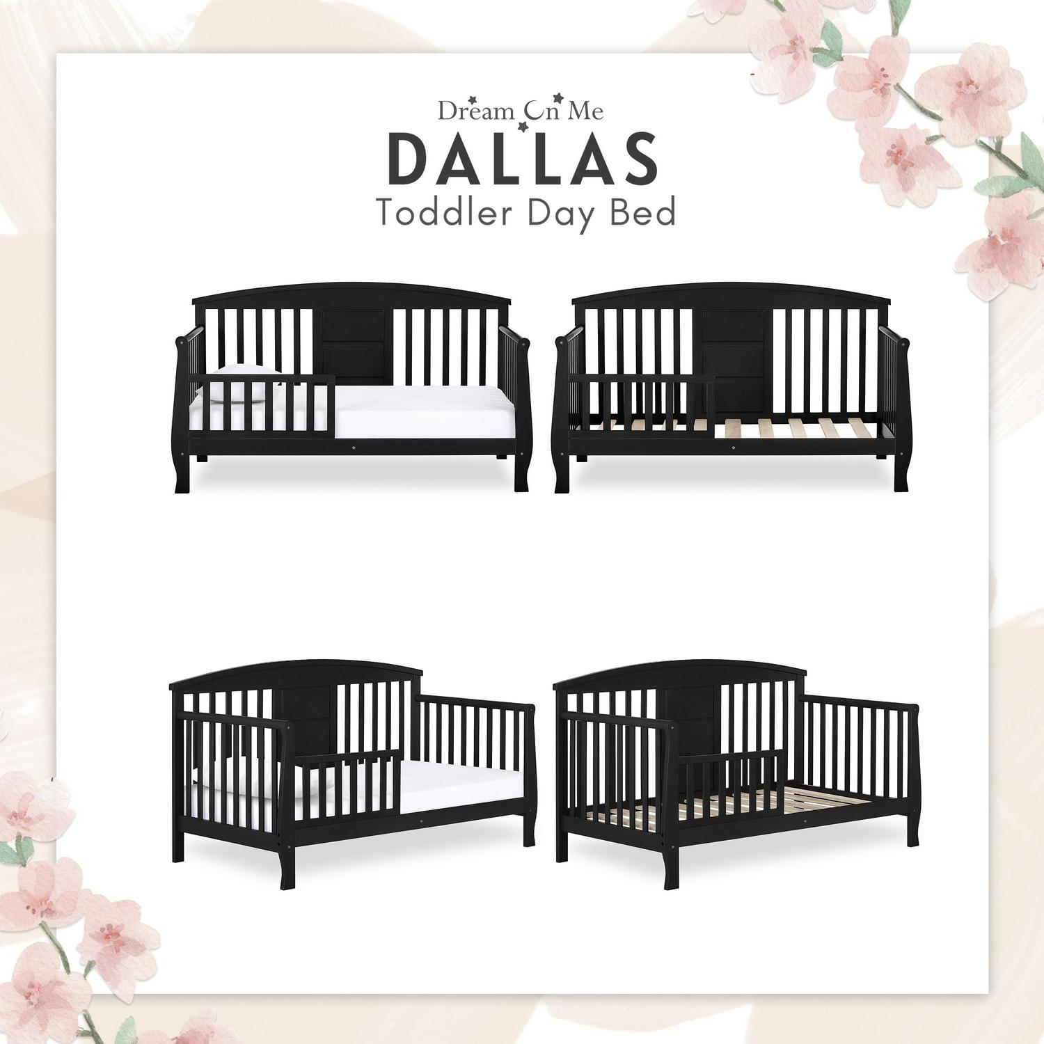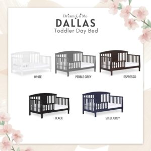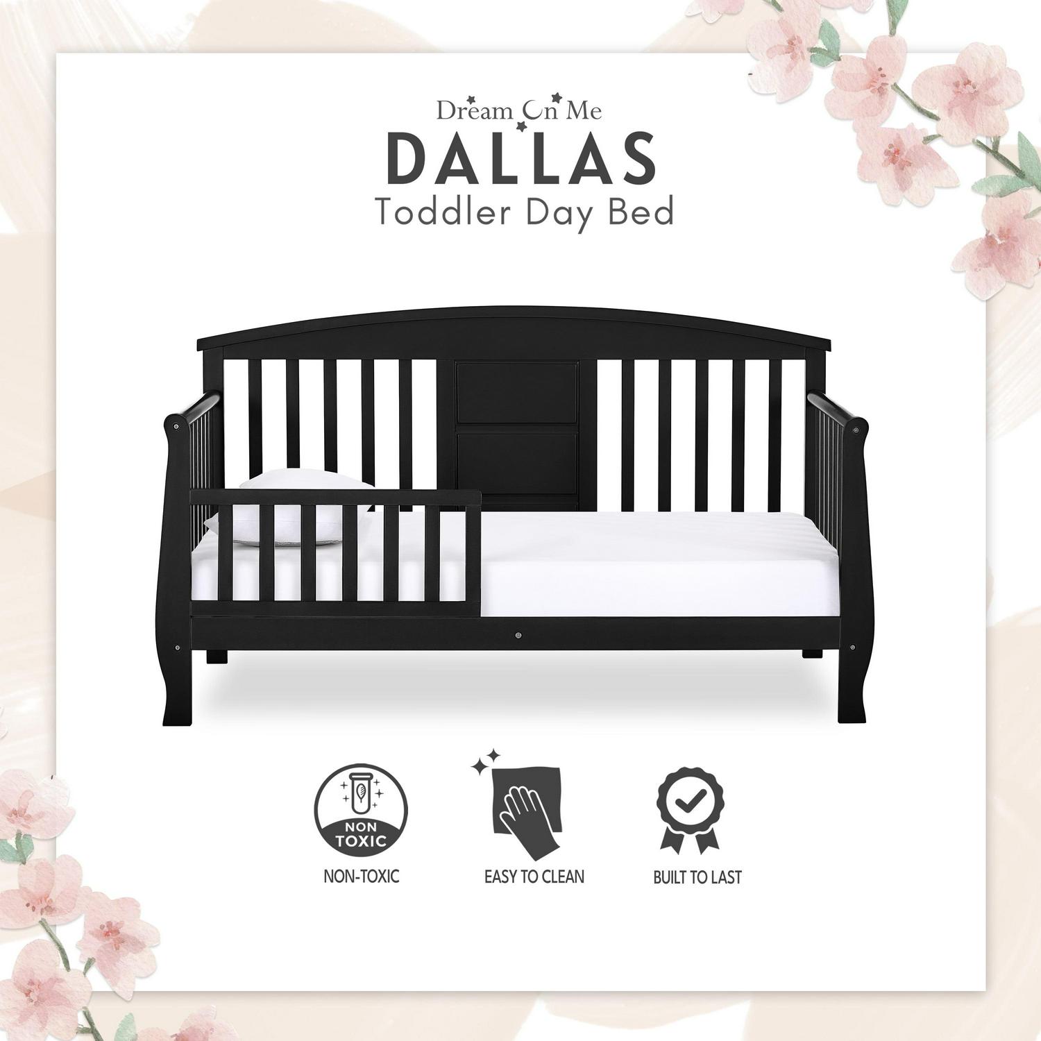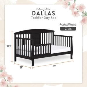 Dream On Me Dallas Toddler Day Bed day offers a modern style with its quarter headboard and low to the floor platform for your toddler’s convenience, this toddler bed is ideal for a contemporary home setting. This toddler bed features a solid wood contraction with strength and durability; including a removable safety guard rail to prevent accidental falls while sleeping. The perfect transition for toddlers who have outgrown their cribs but are still too small for an adult bed. This attractive toddler day bed accommodates Dream On Me, Standard Mattress, sold separately. Recommended for children 18 months to 5 years old or up to 50 lbs. All tools needed for easy assembly are included. Meet the CPSC and ASTM standards.