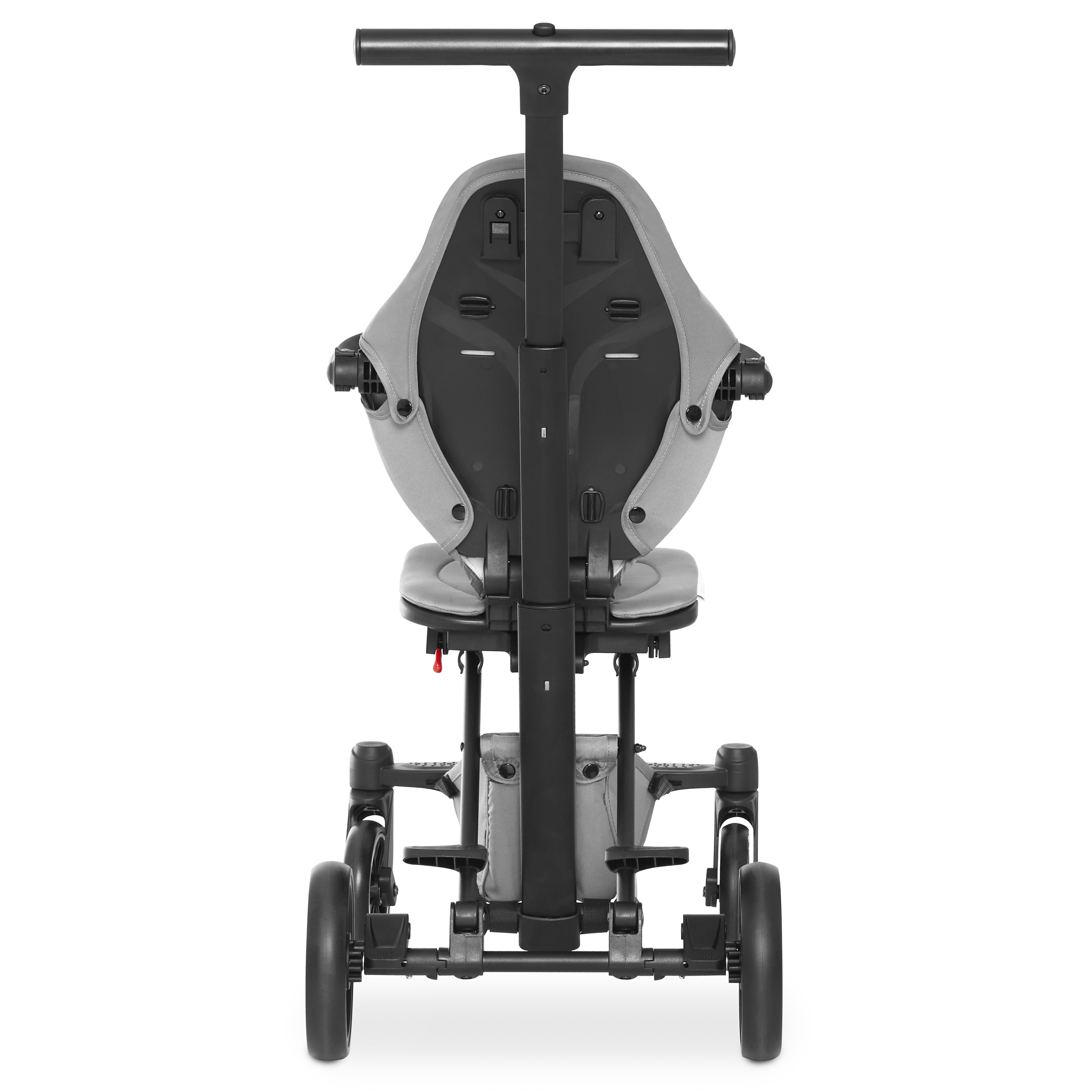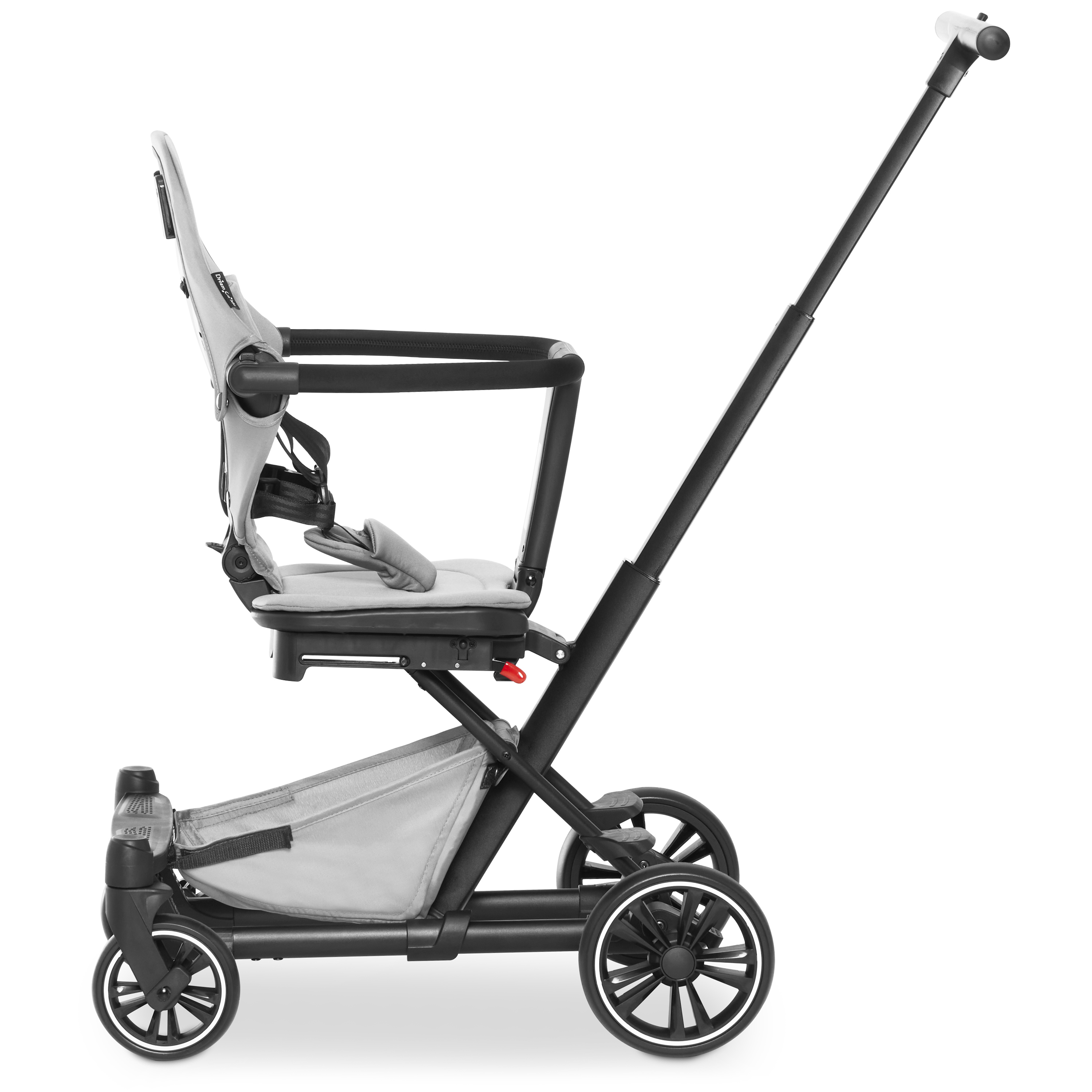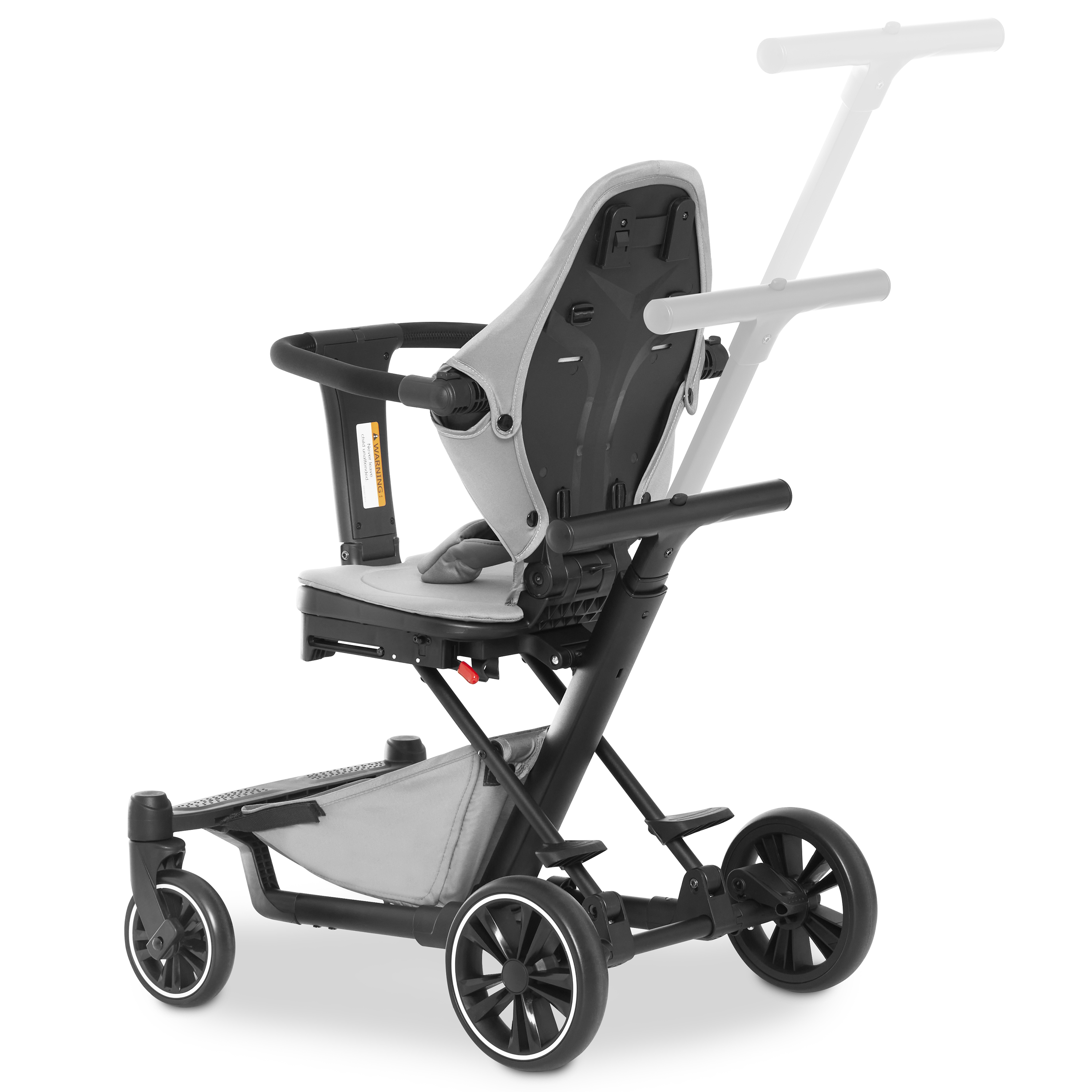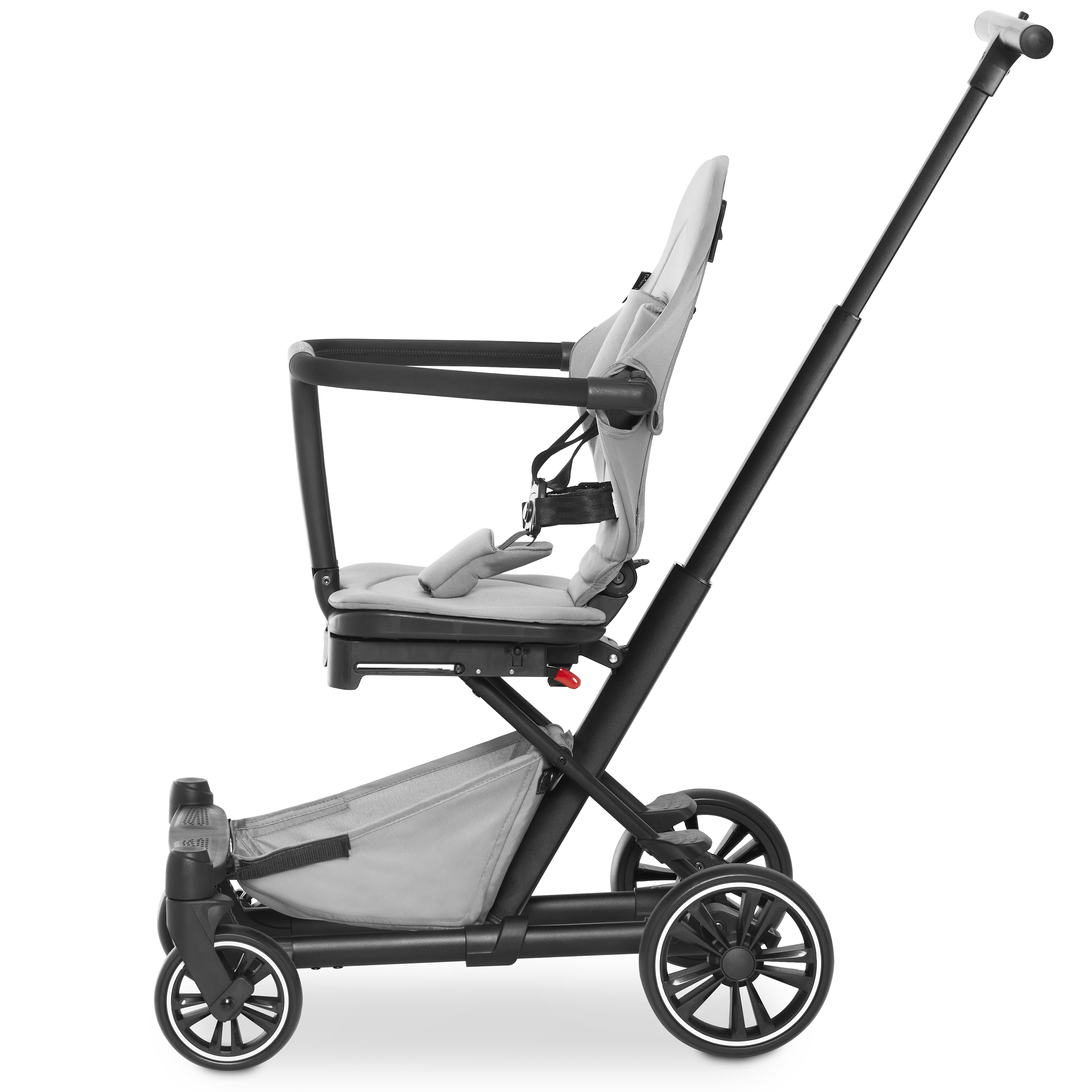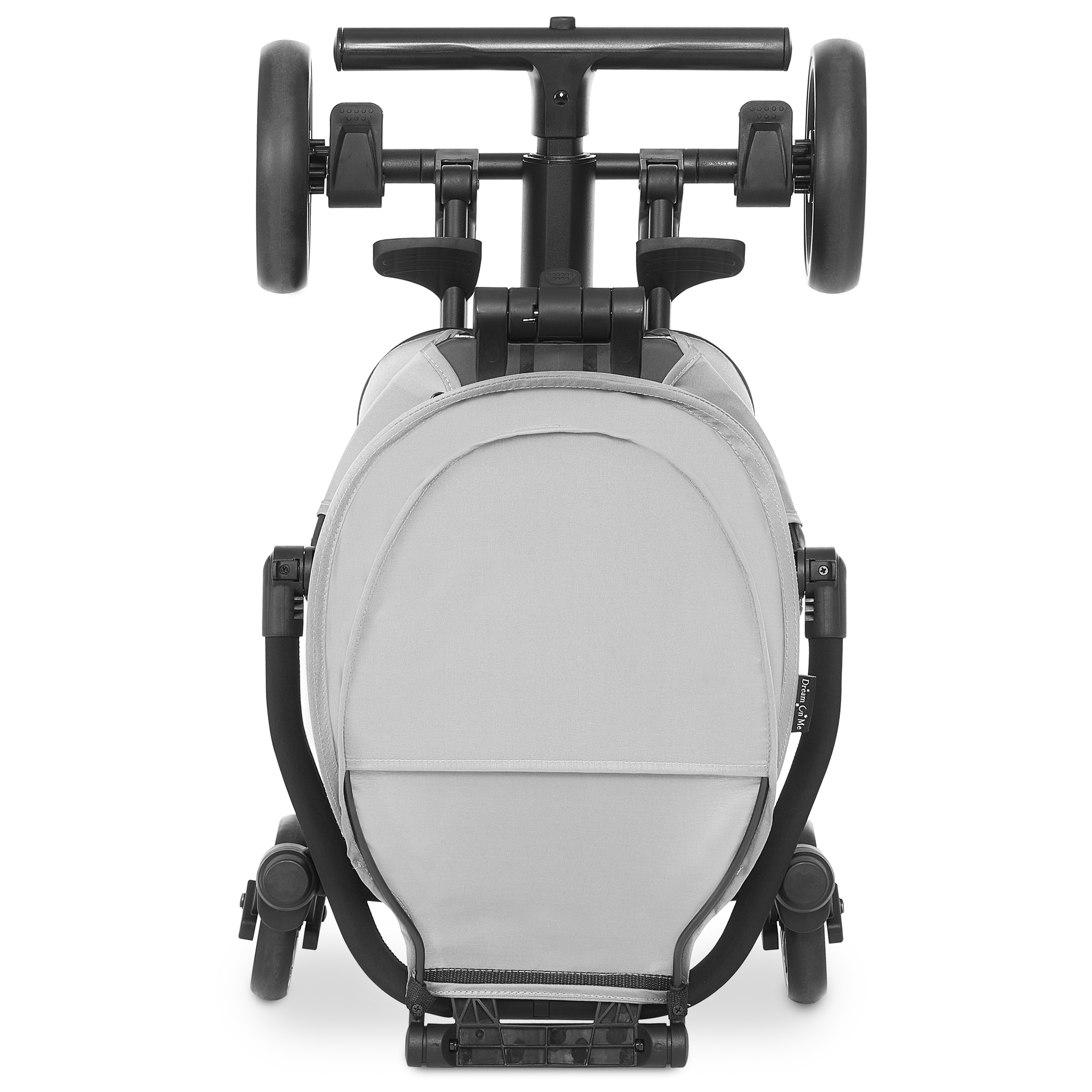 360-angle rotation seat makes it easy for little one to face you or the world. Lightweight and sturdy Aluminum frame. Waterproof Fabric seat cover. Folds inward like a book with just one hand. Soft Ride wheels for less pushing effort and comfortable for child. Can be used as a sit-down scooter. Included canopy to protect from harmful rays. Wipe clean with mild soap and water if needed. Folded dimensions: 28 x 16.5 x 9.5″.