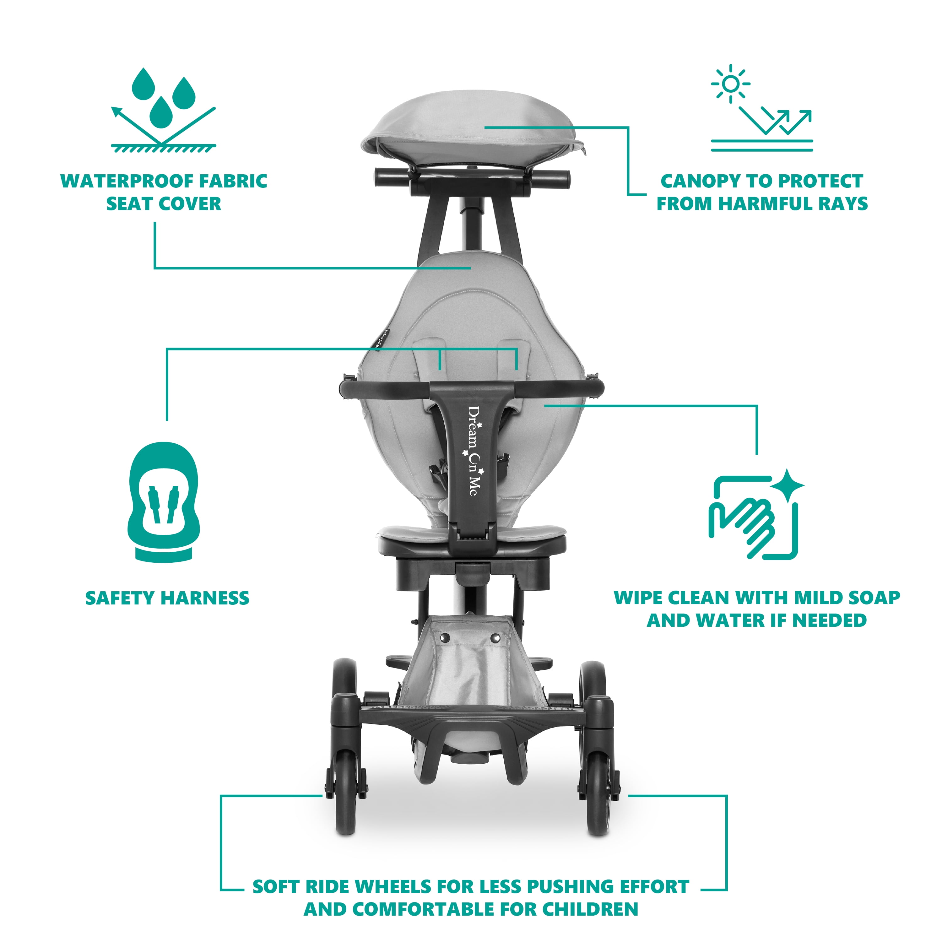 Life is about the places we have been and the memories we make. Don’t let travel stop you experiencing life with your little explorer. Without the added bulk of a traditional stroller, use Dream On Me Drift Rider stroller and bring them along for the adventure! The Dream On Me Drift Rider stroller is the perfect for parents on the move. This modern style stroller folds compactly, making it a breeze to travel with your little passenger anywhere, anytime! Allow Drift to adapt to you and your child’s needs for their personal excursion. This wonderful addition comes with a variety features including a 360 rotating seat, safety harness with adjustable handles and push bars. Drift Rider stroller Canopy helps shield your child from harmful sunrays and other unpleasant weather elements while on the go. Attach instantly with a snap and enjoy the ride in your luxurious stroller rider. Drift Rider stroller can easily be carried with included carrying bag making it travel ready. Made with high quality water proof fabric and available in multiple different colors, it meets or exceeds all ASTM and CPSC standards. This is how we ride.