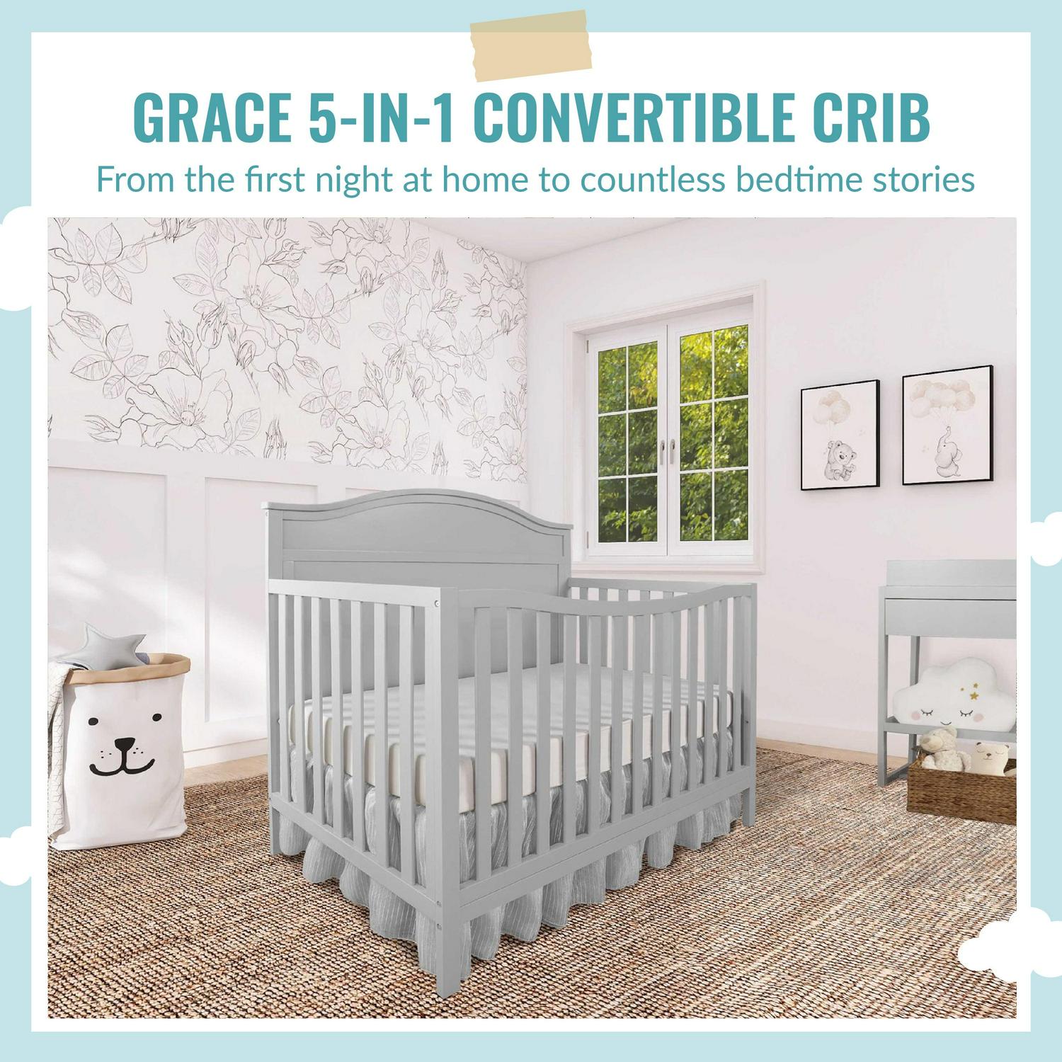 Dream On Me Grace 5-in-1 Convertible Crib, Pebble Grey