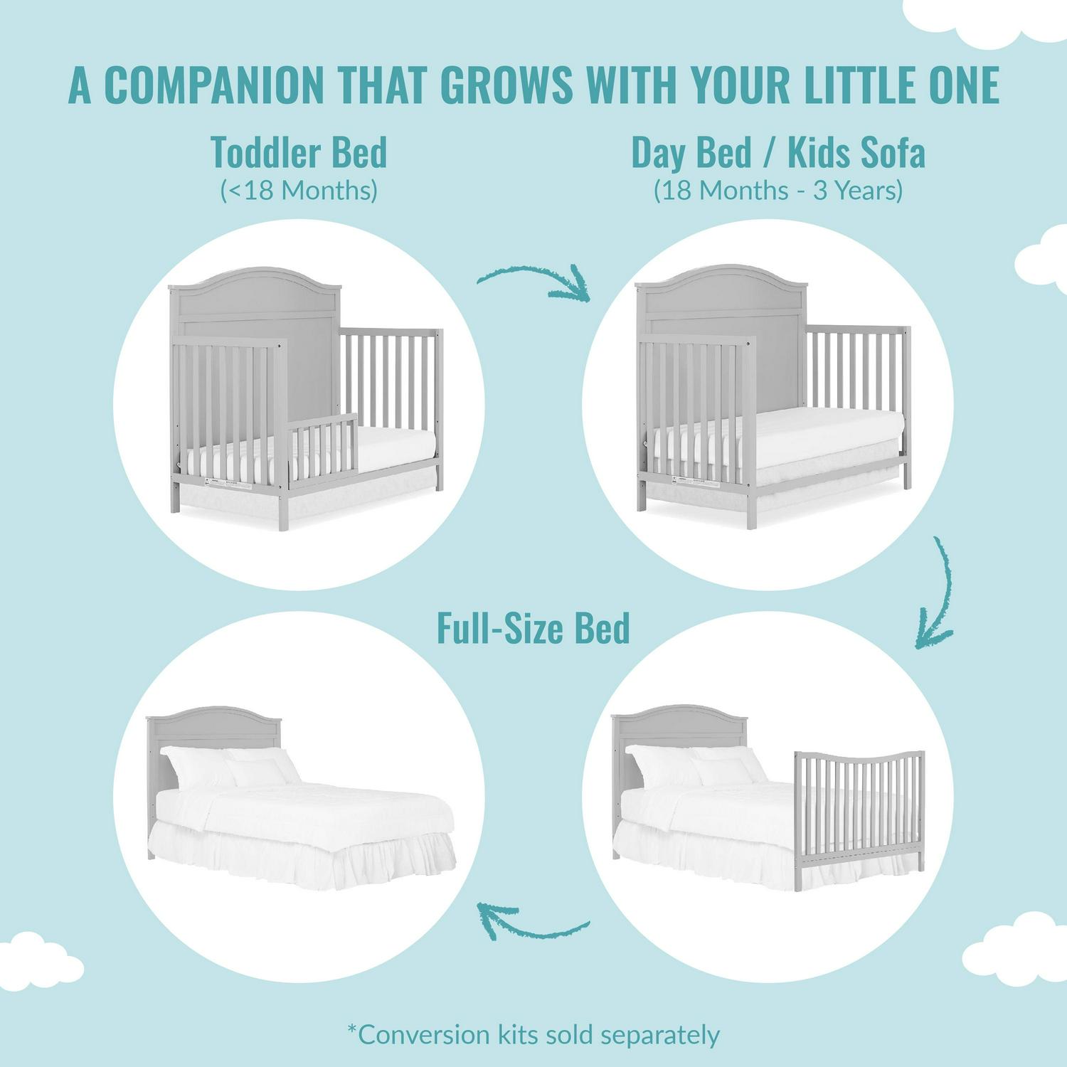 – 5-IN-1 CONVERTIBILITY: Modern and long-lasting, this crib effortlessly converts from a standard-size crib to a toddler bed, daybed & full-size bed (conversion kit sold separately).