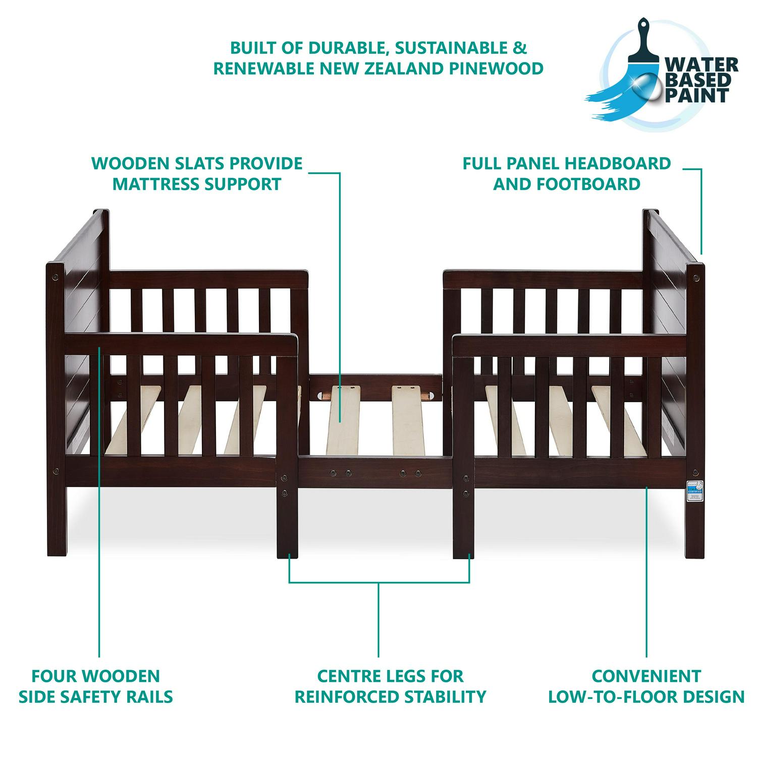 Dream On Me Hudson 3 in 1 Convertible Toddler Bed, Espresso