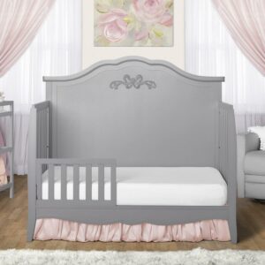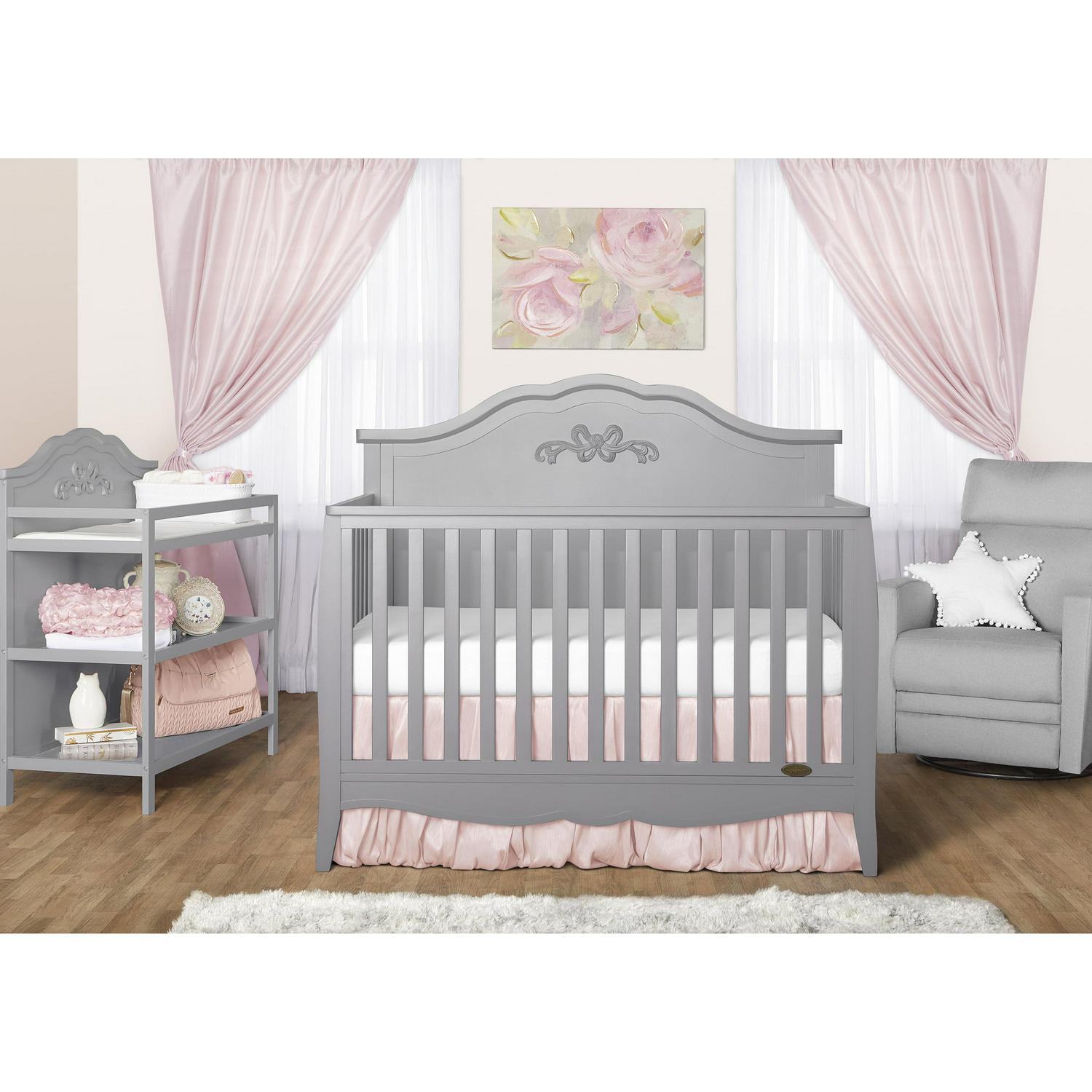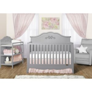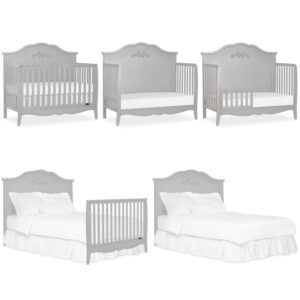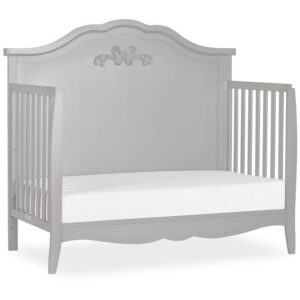 For magical dreams and sweet slumber comes to the ever-so-quaint and charming Dream On Me Jasmine 4-in-1 Convertible Crib. This precious crib grows with your little one as it easily transitions to a daybed, toddler bed, and full-size bed (conversion kit sold separately), making it a life-long investment. Made of solid New Zealand Pinewood, it comes with a metal mattress support for added stability and security. With an easy-to-clean finish and 3 mattress height settings as your baby grows, it s designed for convenience. In addition, this convertible crib prioritizes safety as it is JPMA and Greenguard Gold certified, meeting/exceeding all ASTM & CPSC safety standards. What s more, with the Jasmine Convertible Crib, the magic lies in the details. This beautiful crib boasts intricate carving on the headboard for that added touch of whimsy. Combined with 3 evergreen finishes Blush Pink, White, and Platinum it s a must-have for any new nursery! The product specs are, Dimensions: 54 L x 31 H x 50.5 W”, Weight: 60 lbs.