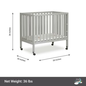Dream On Me Jett Non-Full Size Folding Crib in Pebble Grey, Patented Folding System