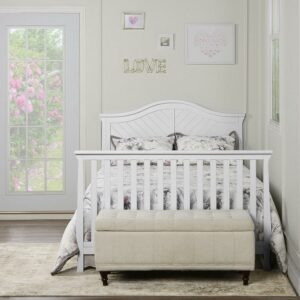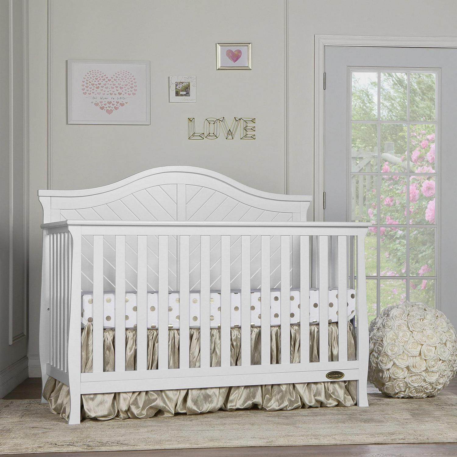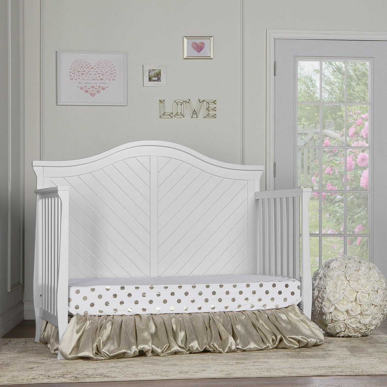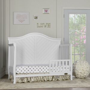 The Dream on Me Kaylin 5-in-1 Convertible Crib will grow right along with your child, from baby to toddler and beyond. This sweet convertible crib is durably constructed from wood and features a bell-shaped, full-panel headboard with timeless inset and groove accents. The crib is convertible to last throughout the years, transforming into a toddler bed and a daybed. What s more, when you add a bed frame, the back panel converts into a full-sized headboard. The mattress platform is also adjustable to four different heights, depending on the age of your child. Charming, yet sophisticated, this convenient convertible crib will remain stylish and functional throughout the years.