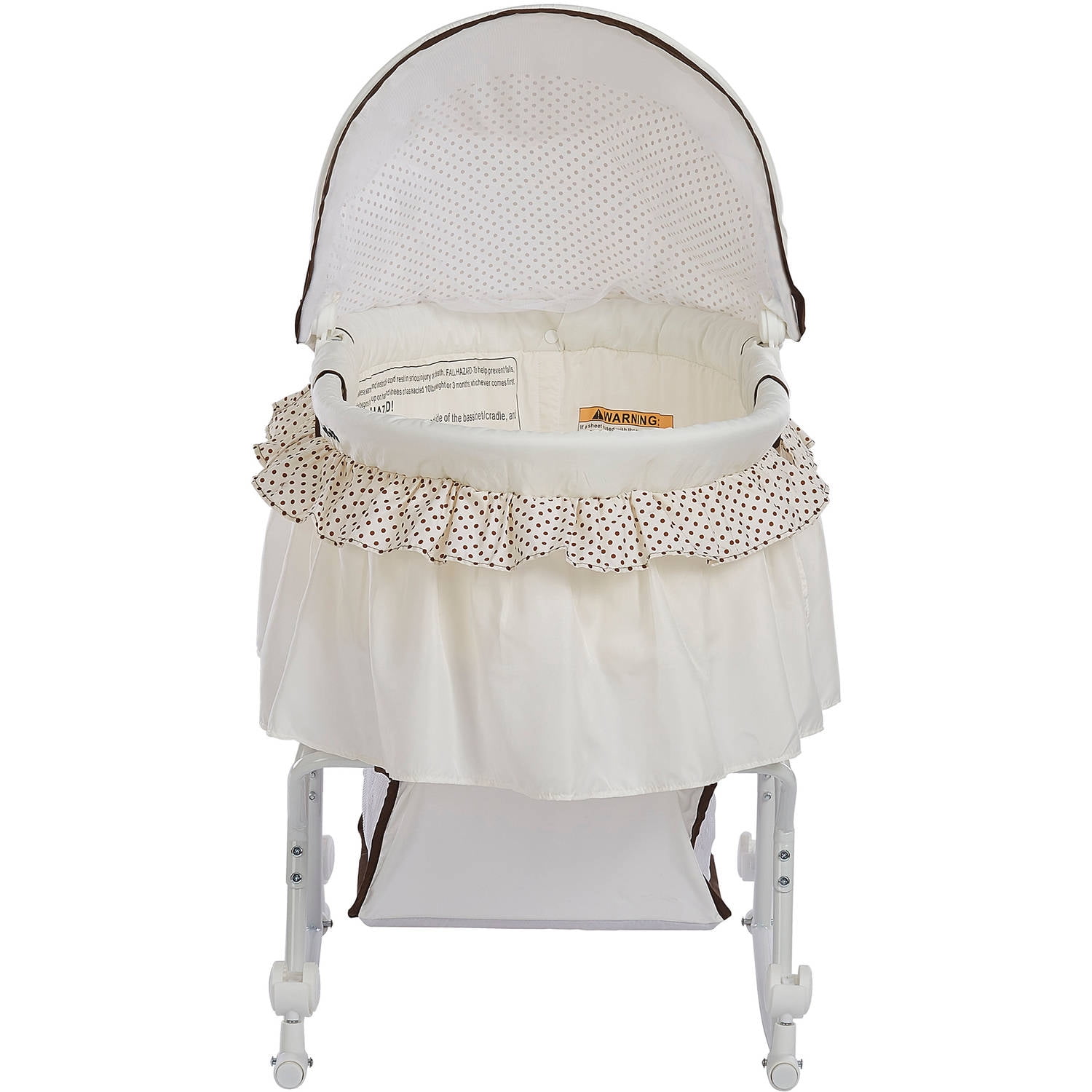 Dream On Me Lacy Portable 2-in-1 Bassinet and Cradle: • Spacious bassinet transforms into a rocking cradle by rotating wheels in upward position • Full canopy/mosquito net. • Large basket for babies’ essentials. • Hooded locking wheels For use from birth until approximately 25 lbs. or until baby can push-up/roll over unassisted • Adult assembly required. • Mattress pad dimensions: 30 x 15 x 1″” • JPMA certified to meet or exceed all safety standards set by the CPSC and ASTM. • Meets the CPSC and ASTM standard and ASTM F2194″ • Keep the soft objects and bedding away from infants and do not use in bassinets/ bedside sleepers because they can inadvertently lead to suffocation. Furthermore, bedding has been associated with sudden infant death syndrome. Questions about product recalls? Items that are a part of a recall are removed from the site, and are no longer available for purchase. These items include items only, not those of Marketplace sellers. Customers who have purchased a recalled item will be notified by email or by letter sent to the address given at the time of purchase. For complete recall information, go to Recalls.