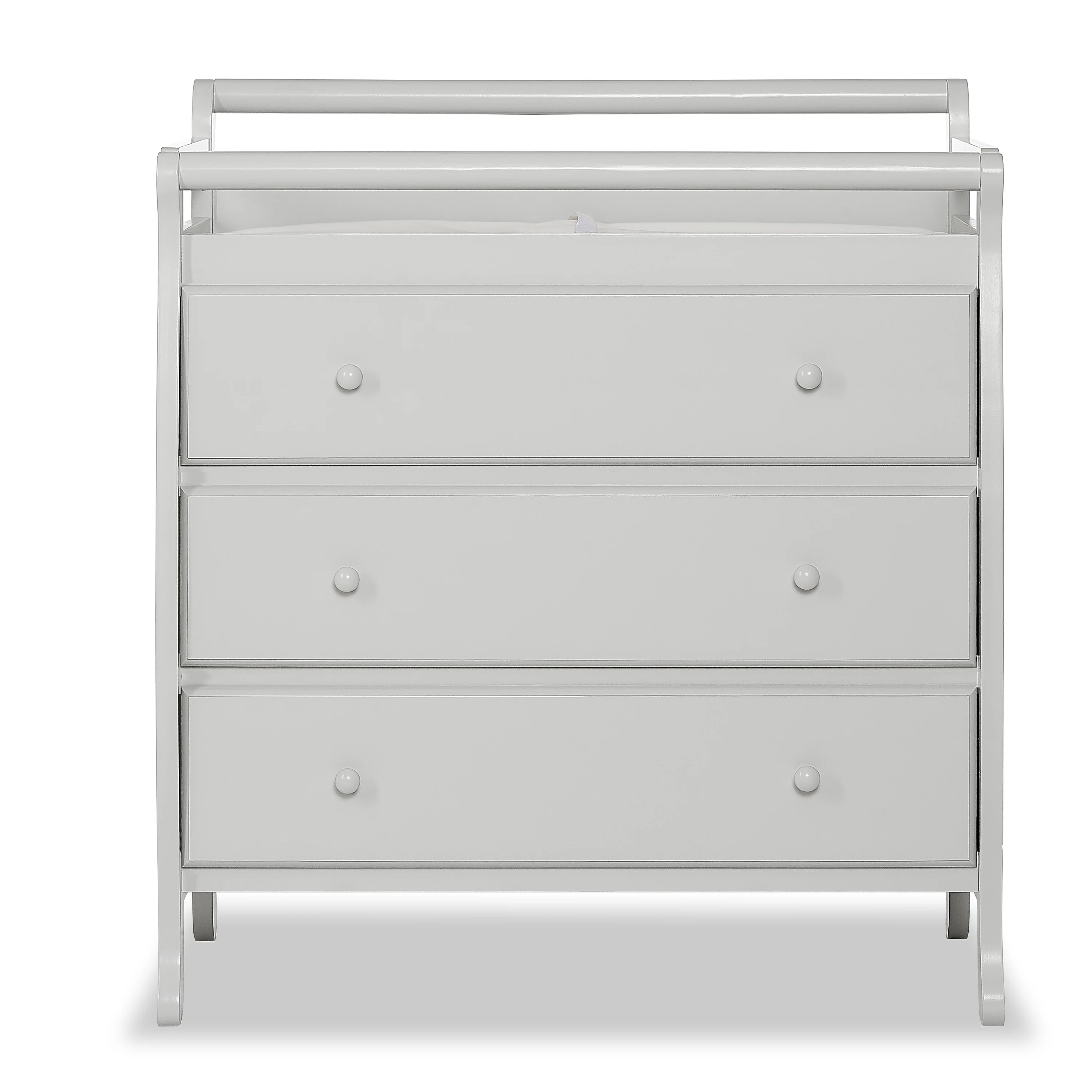 The Dream on Me – Liberty Collection 3-Drawer Changing Table is perfect for your baby’s nursery. It features a sturdy hardwood construction in an elegant sleigh design, and comes with a comfortable mattress pad and safety straps to help keep baby secure. Three spacious, roomy drawers provide plenty of storage space for baby’s blankets, clothing, diapers, changing supplies and more. It’s the perfect 3-drawer changing table for any living environment.