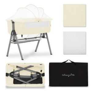 Dream On Me Lotus Bassinet and Bedside Sleeper in Ivory, Lightweight, Carry Bag Included