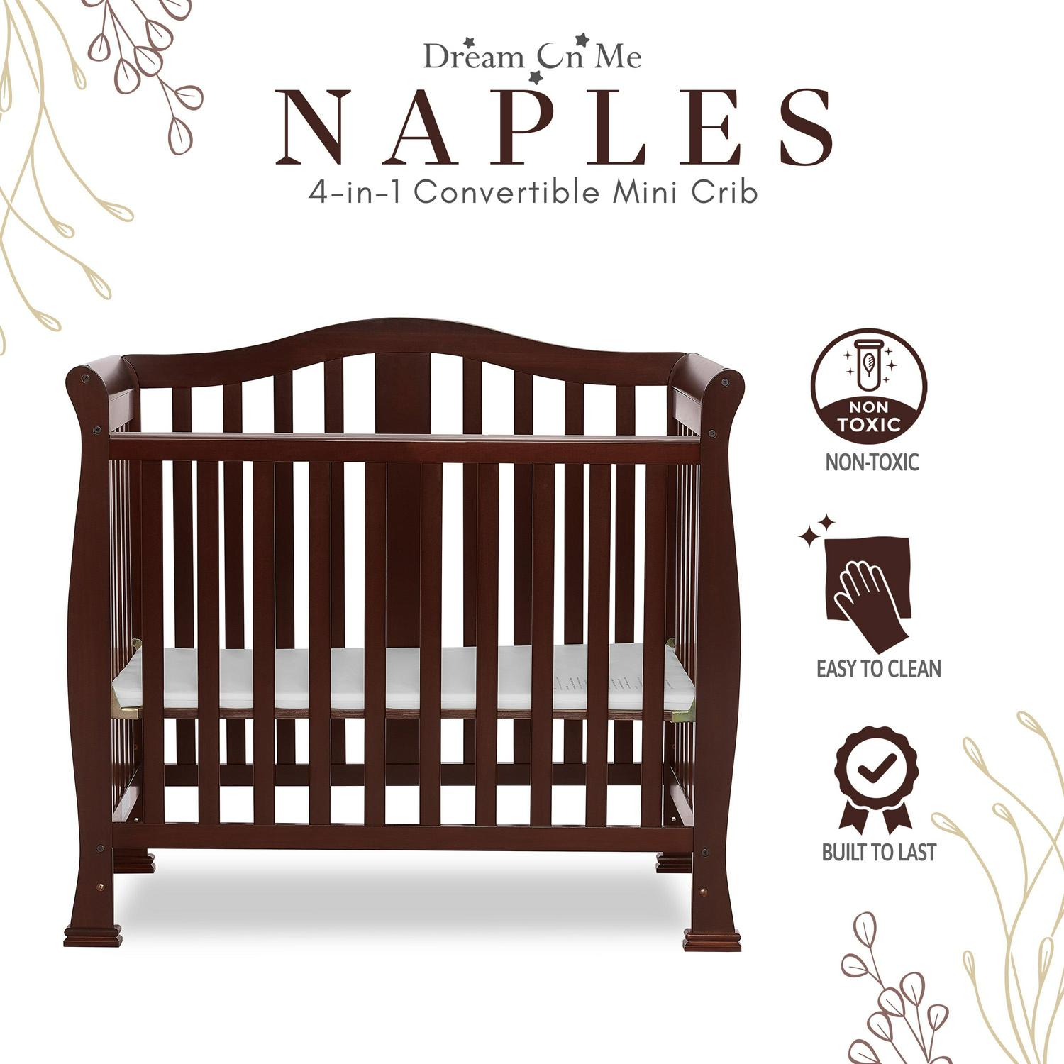 Dream On Me Naples 4-in-1 Convertible Mini Crib, Espresso