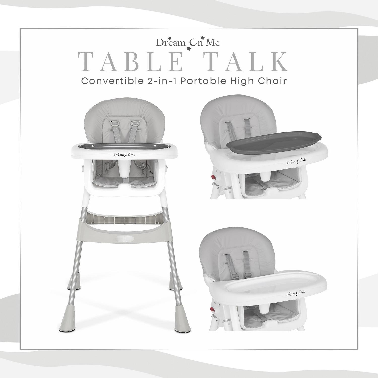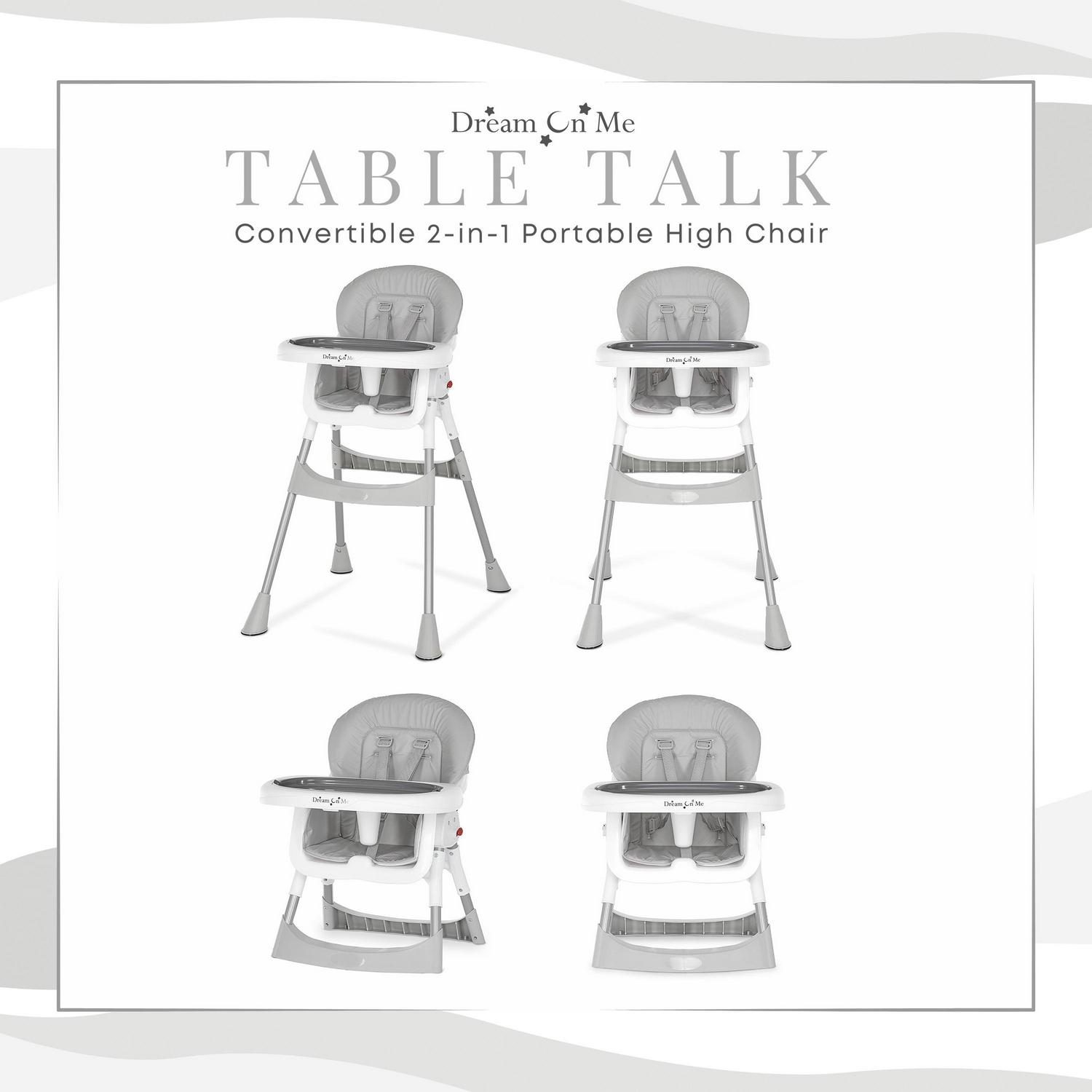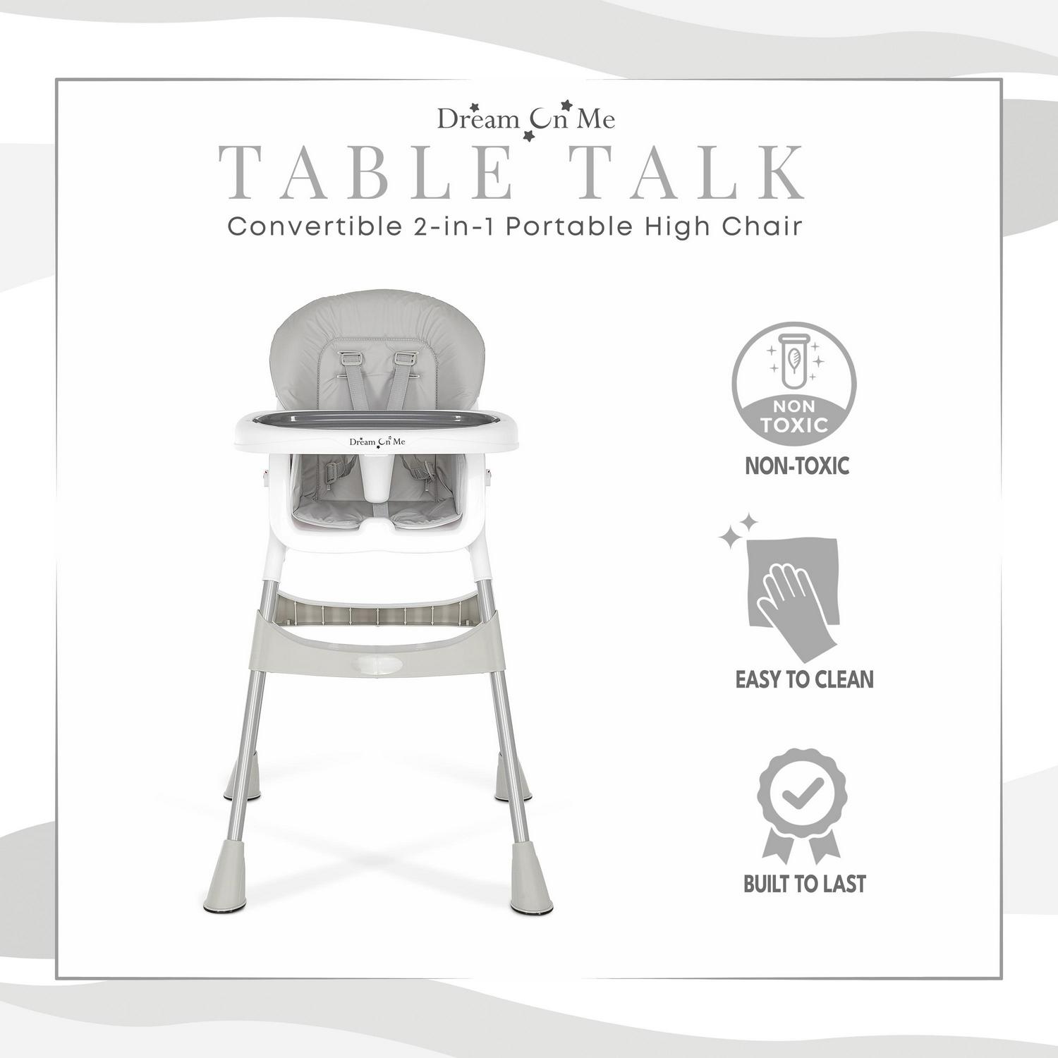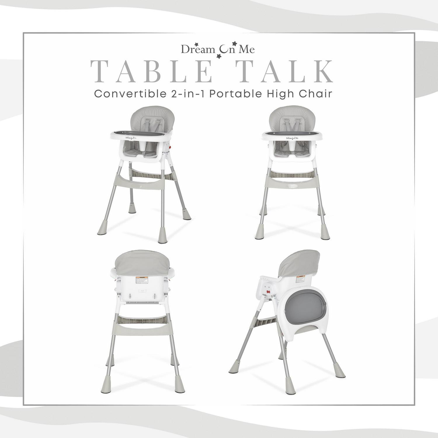 Dream On Me Portable 2-In-1 Table Talk High Chair, Gray